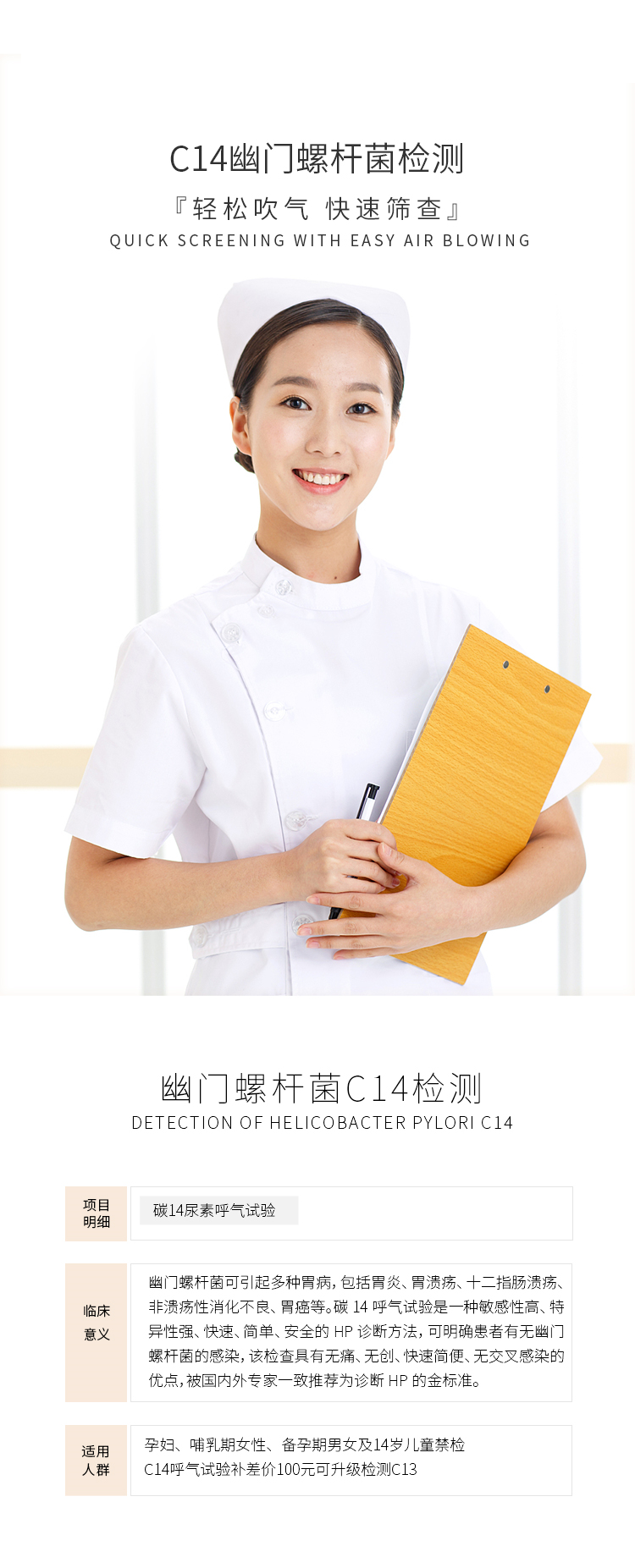 特别提醒:C14呼气试验, 哺乳期/备孕期禁检.