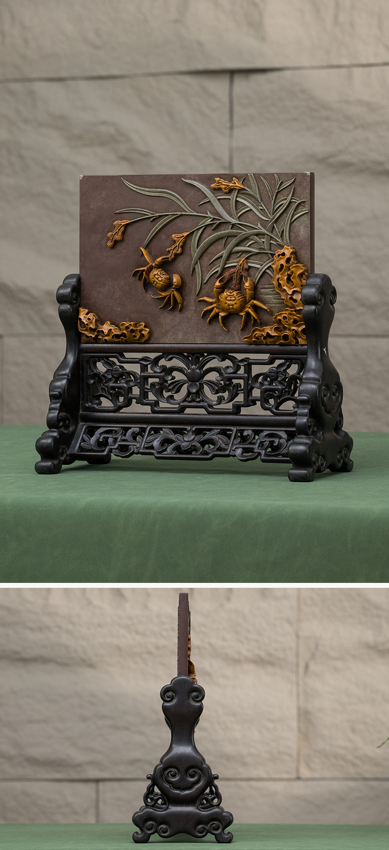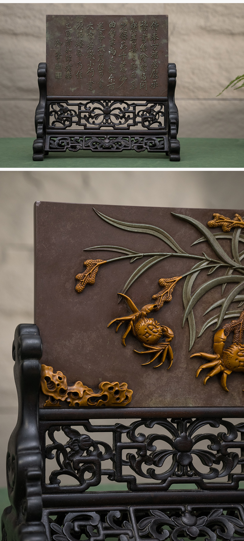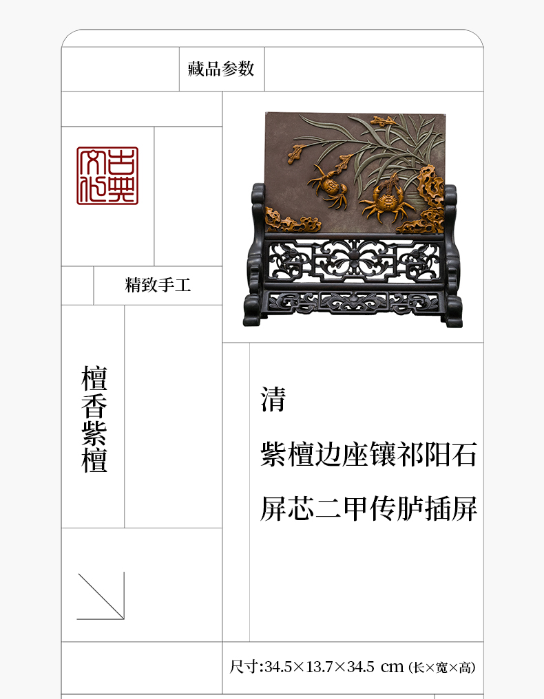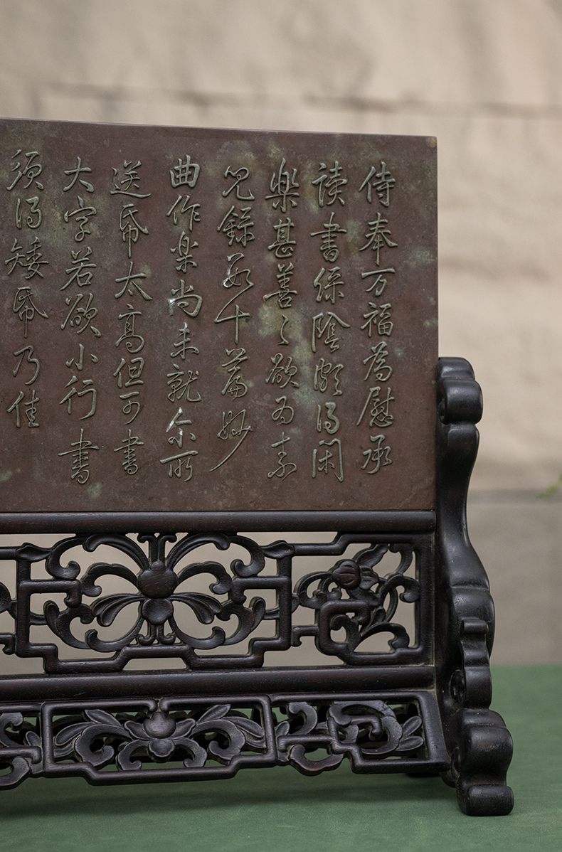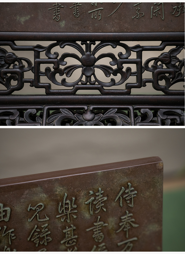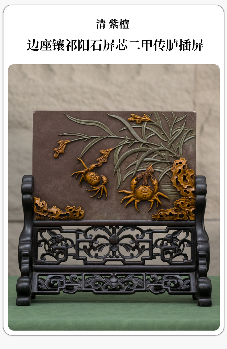 清 紫檀边座镶祁阳石屏芯二甲传胪插屏