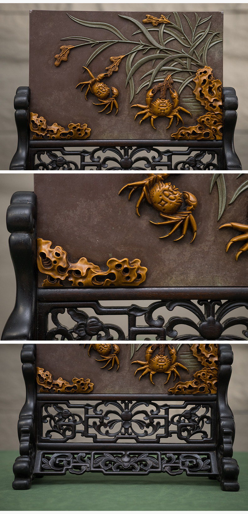 清中期 红木高浮雕人物故事三围屏禅椅