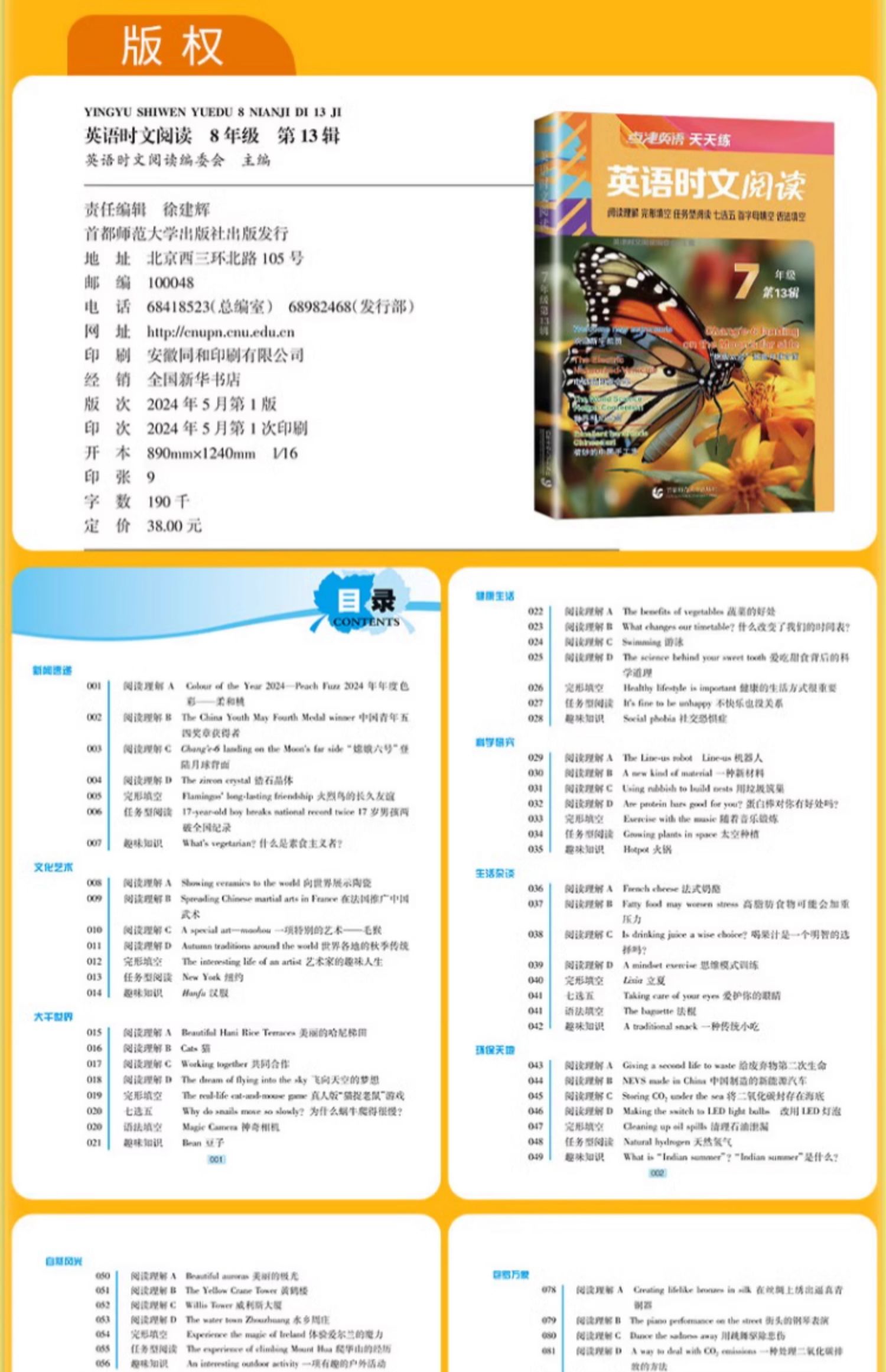 2024秋季 点津英语天天练英语时文阅读789年级第13辑阅读理解完形填空任务型阅读语法填空