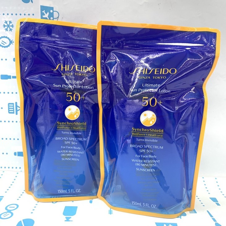 资生堂蓝胖子防晒#150ml袋装👍防晒界的大哥大😎!资生堂的黑科技wet force在它身体上体现得淋漓尽致,遇水愈强!遇热愈强!防摩擦强!SPF50+,PA++++的高倍防晒系数☀,专门针对户外活动,真正的晒不黑晒不怕!使用感清爽,不泛白不搓泥,用前摇一摇🙌,带一点点润色效果,也可当妆前乳使用哦,轻盈不粘腻,去海边带上它就放心浪吧🌊!