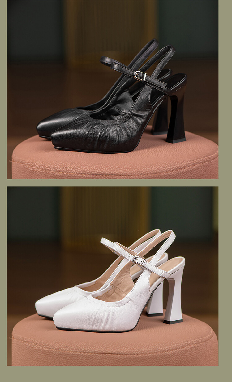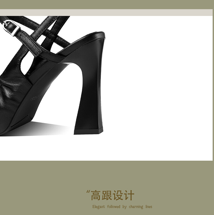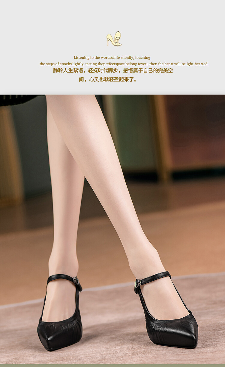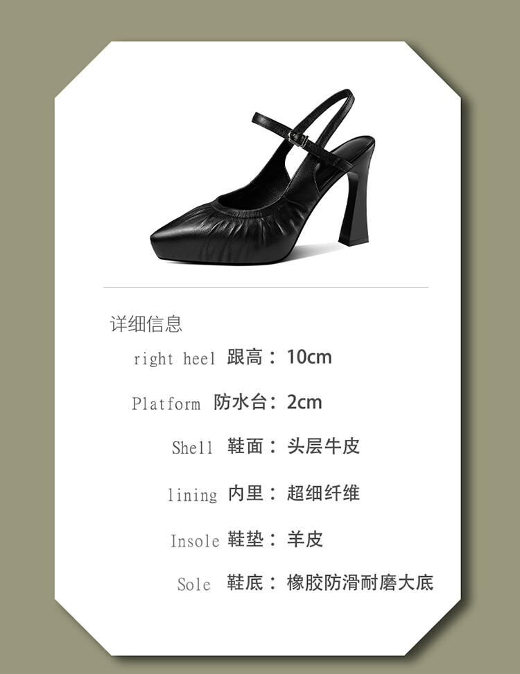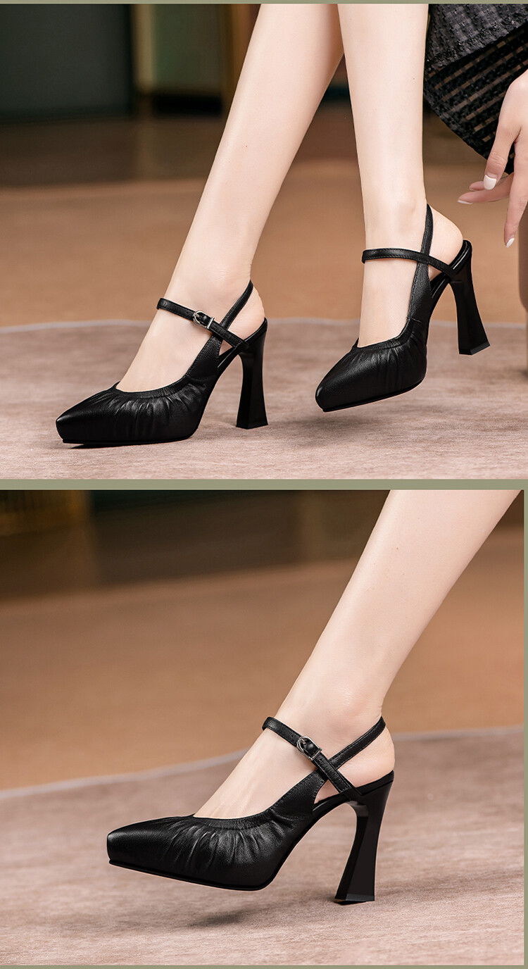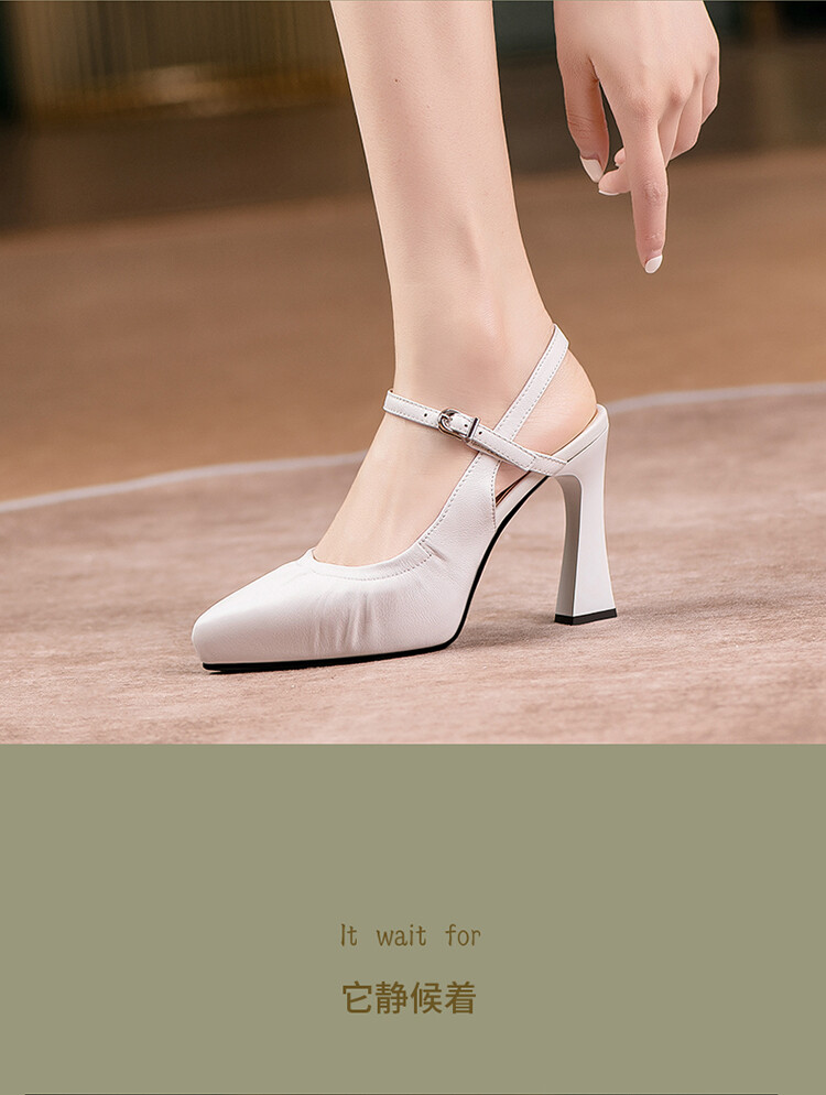 粗跟尖头凉鞋,防水台一字扣带高跟鞋 JQR-22-11