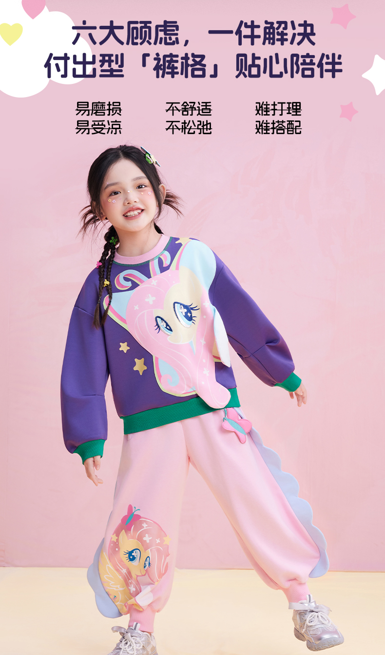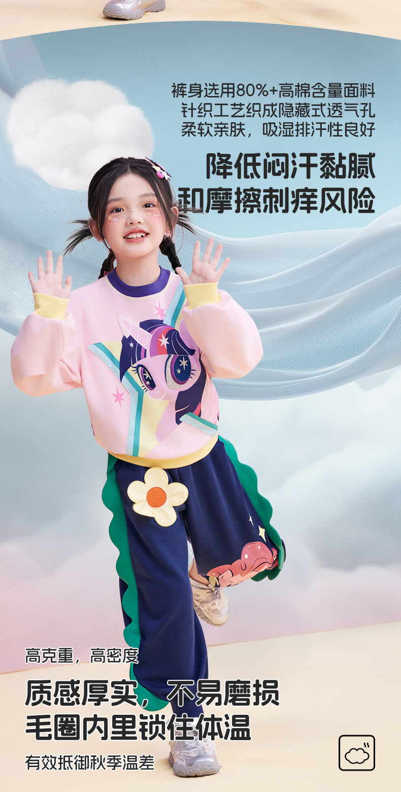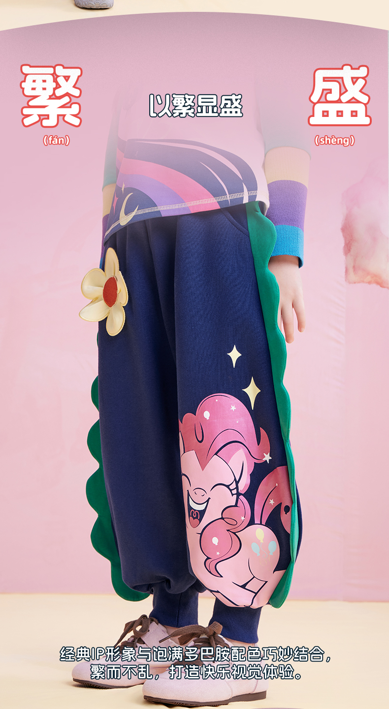 【年衣】童装25秋季新款女童可爱卡通休闲裤长裤小马宝莉花边卫裤