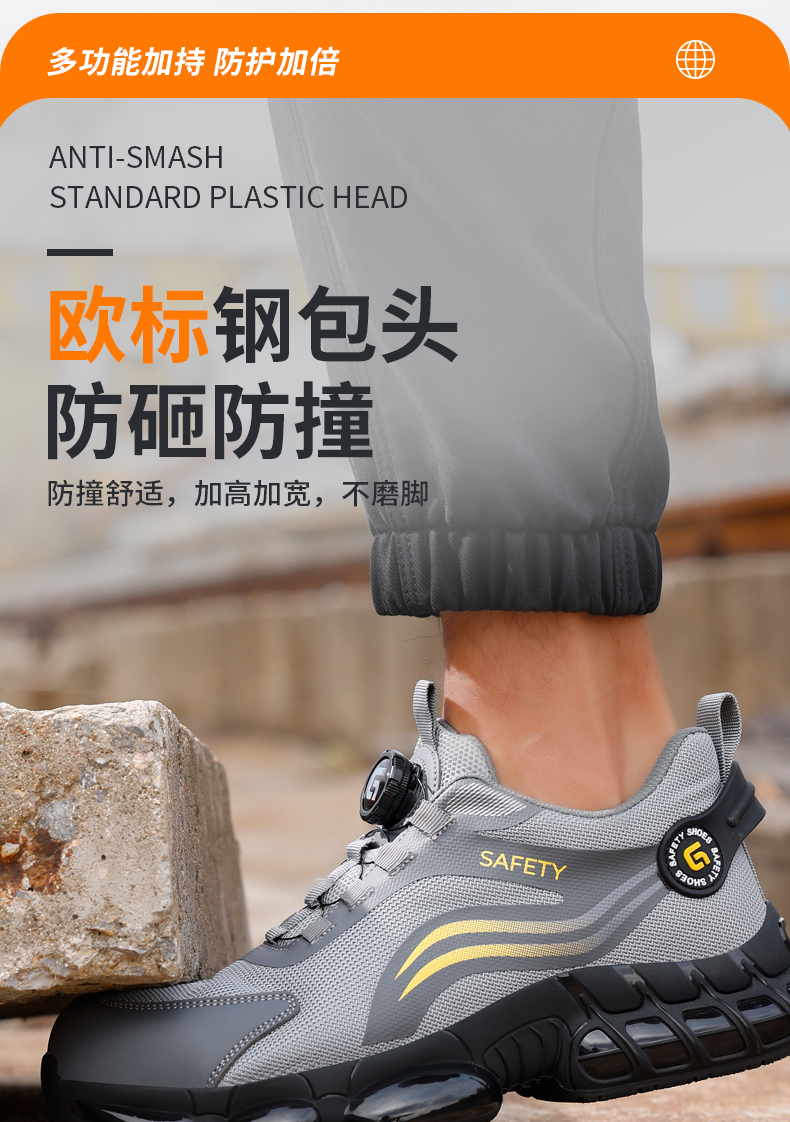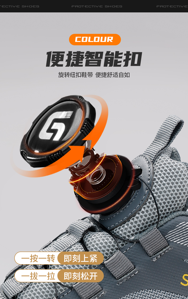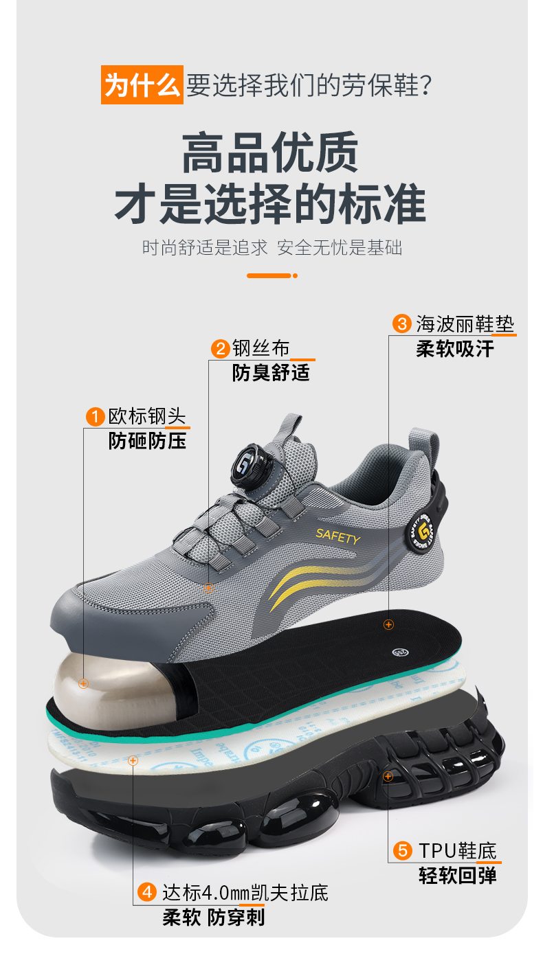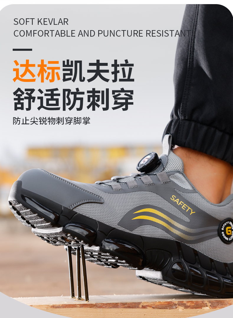 新品防砸防刺安全鞋加厚4.0凯夫拉钢包头劳保鞋工作鞋TPU款旋转纽扣穿脱方便