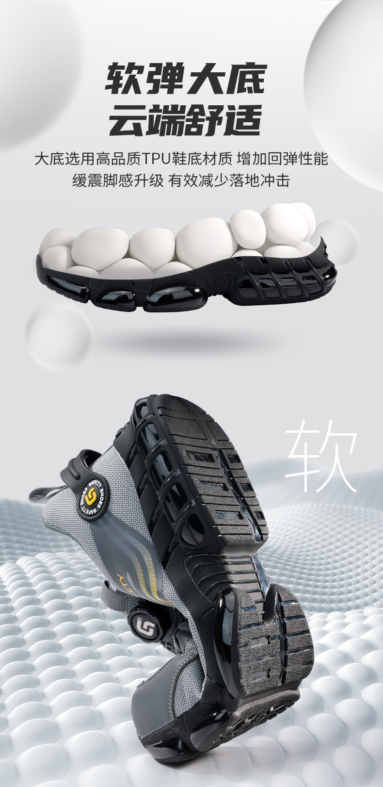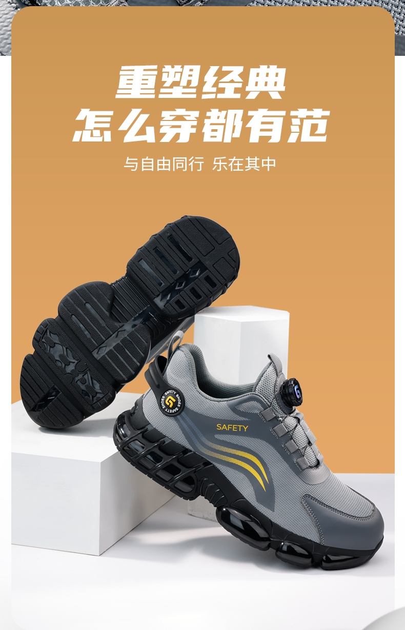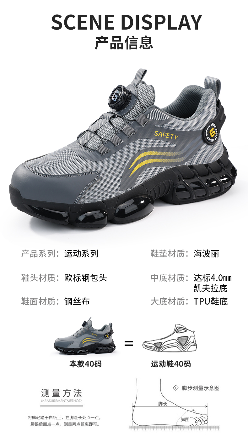 新品防砸防刺安全鞋加厚4.0凯夫拉钢包头劳保鞋工作鞋TPU款旋转纽扣穿脱方便