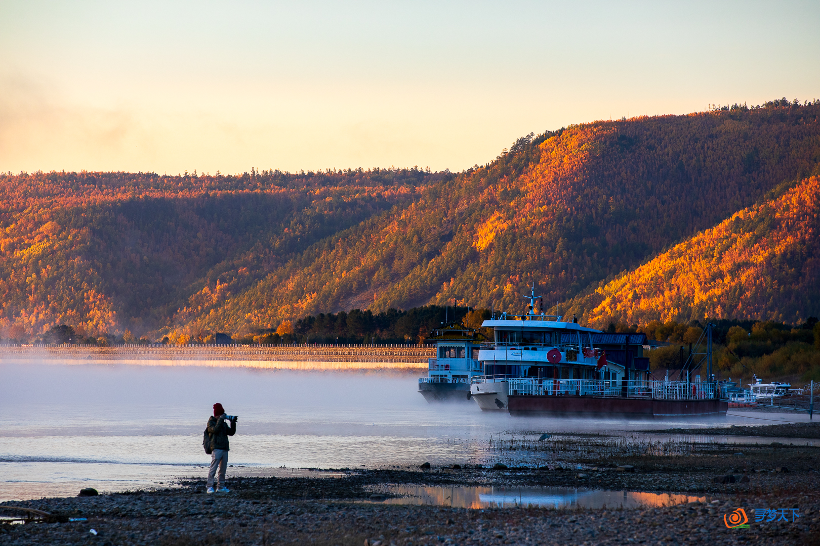 行程安排: 前往中国画山拍摄,在呼玛河边寻找最佳拍摄点。抵达塔河,傍晚时分,夕阳的余晖洒在河面上,波光粼粼,远处的山峦在光影中若隐若现,构成一幅宁静而壮美的画面,是拍摄日落的理想之地。