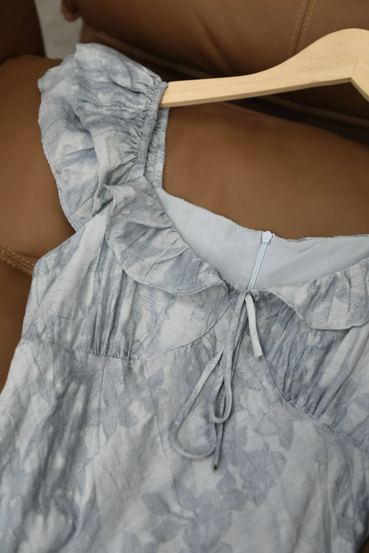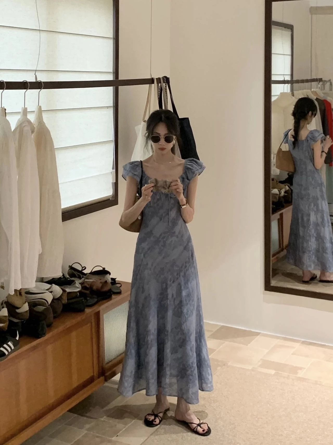 蓝调花境⚠️DI*OR同源面料⚠️立体花卉提花连衣裙!意大利进口天丝面料❗️把莫奈花园穿在身上!出片率chao高!