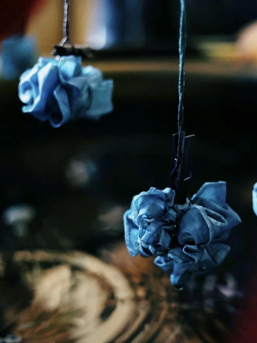 玫瑰与鸢尾在深海蓝绸上苏醒