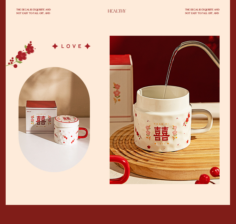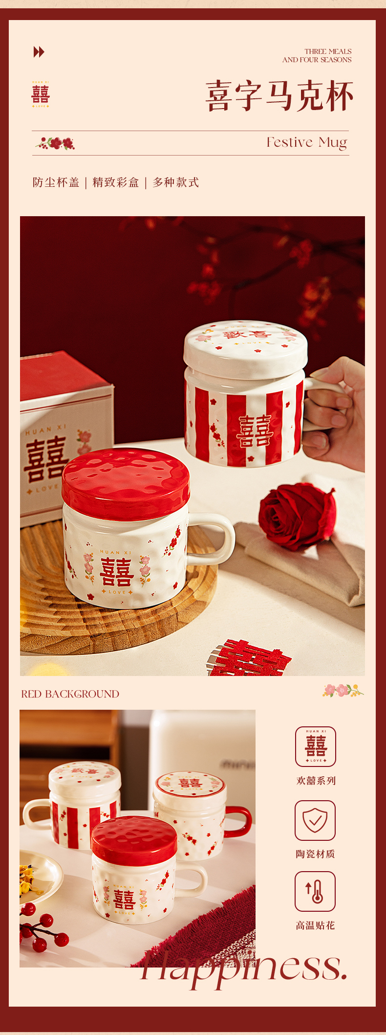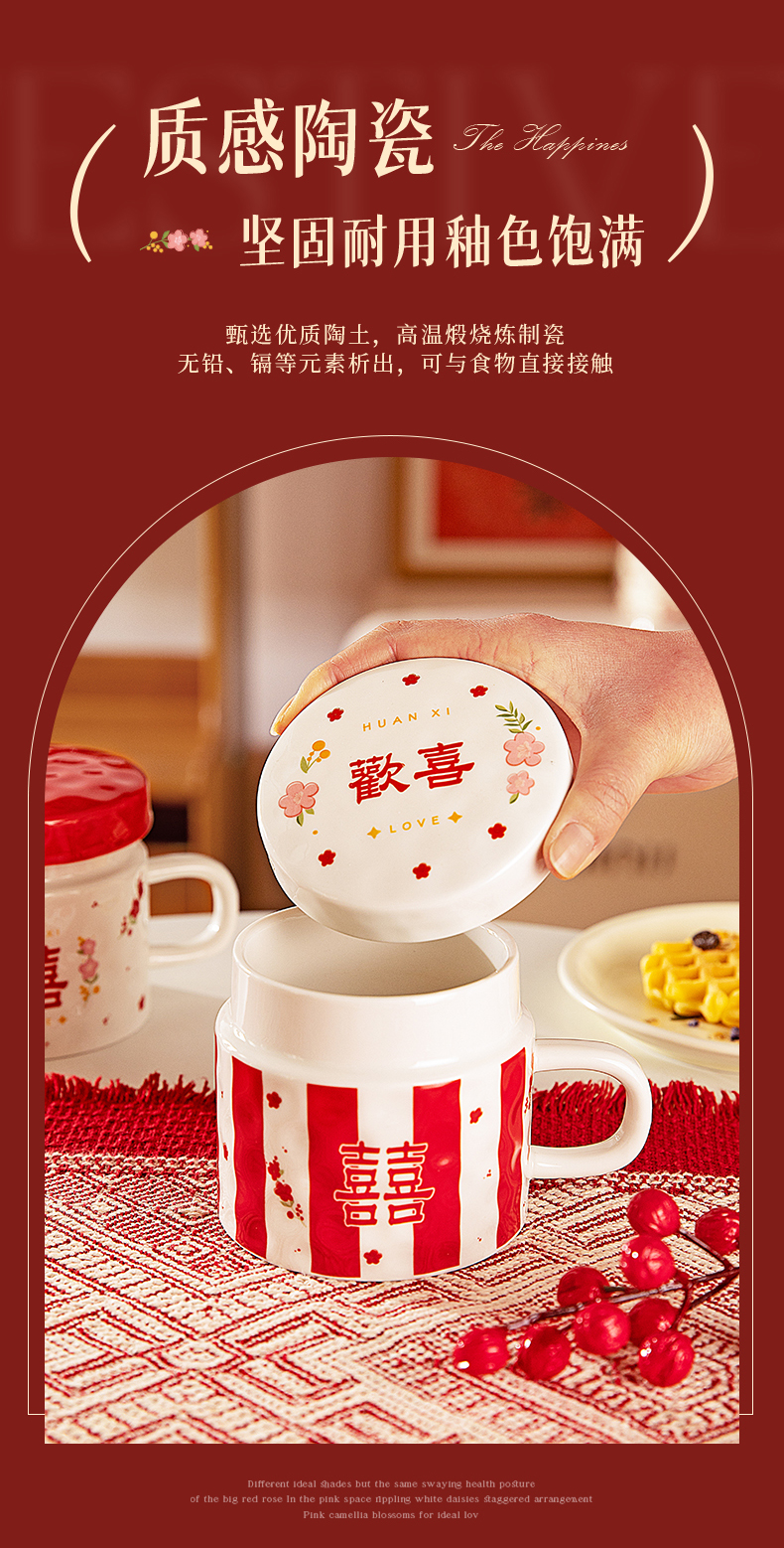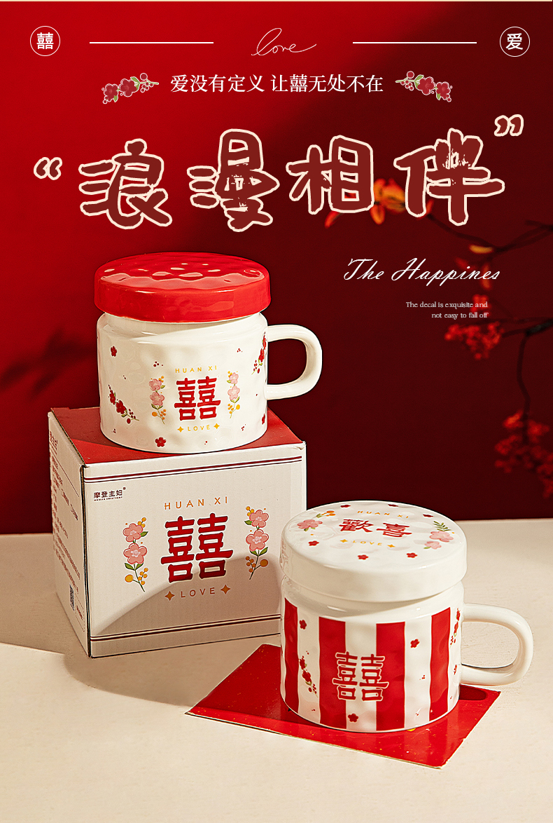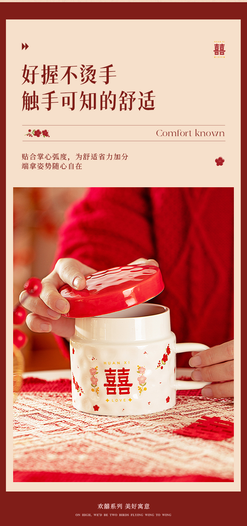 摩登主妇红色杯子带盖新年礼物结婚陪嫁陶瓷水杯家用高颜值马克杯