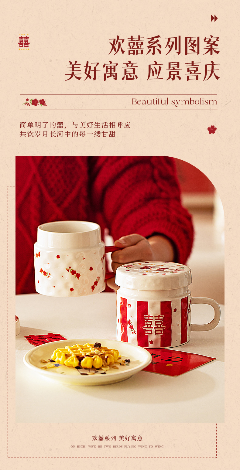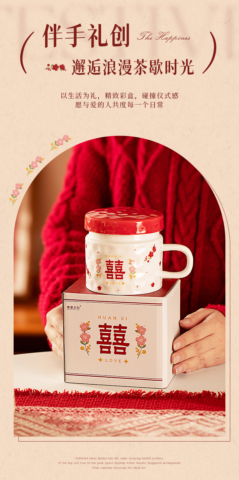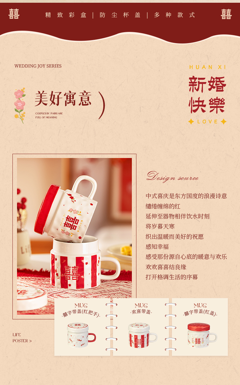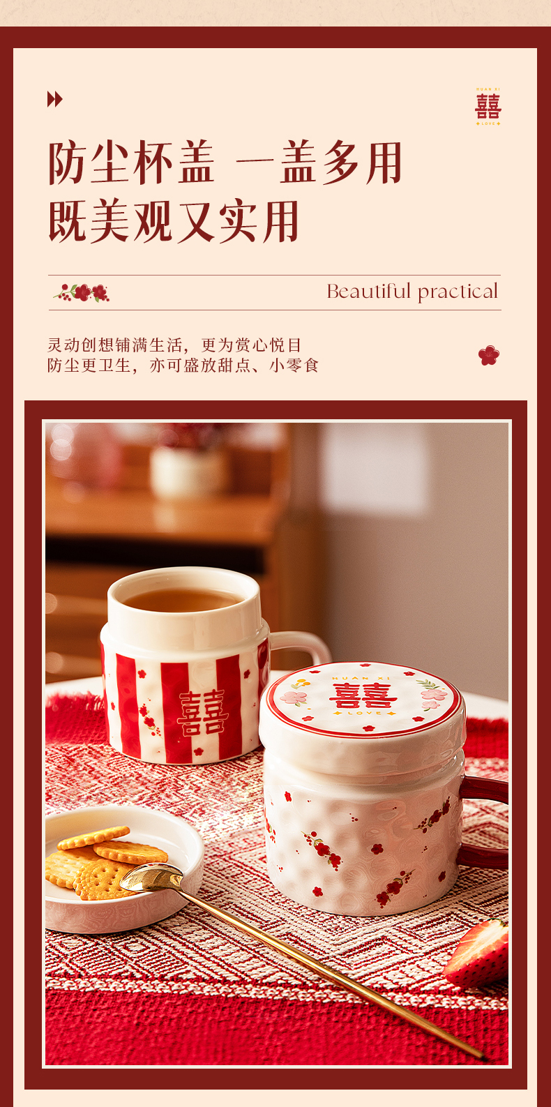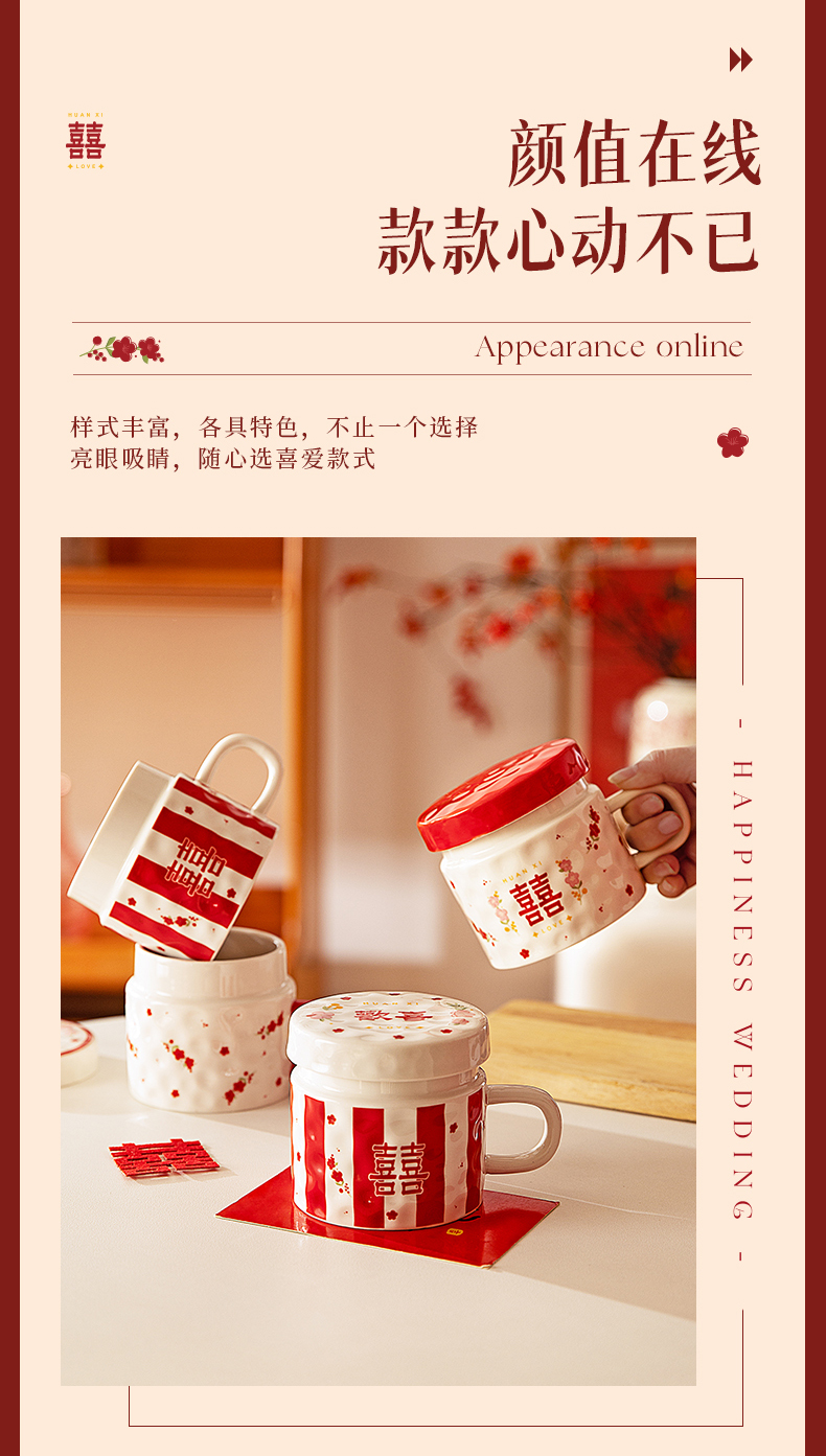摩登主妇红色杯子带盖新年礼物结婚陪嫁陶瓷水杯家用高颜值马克杯