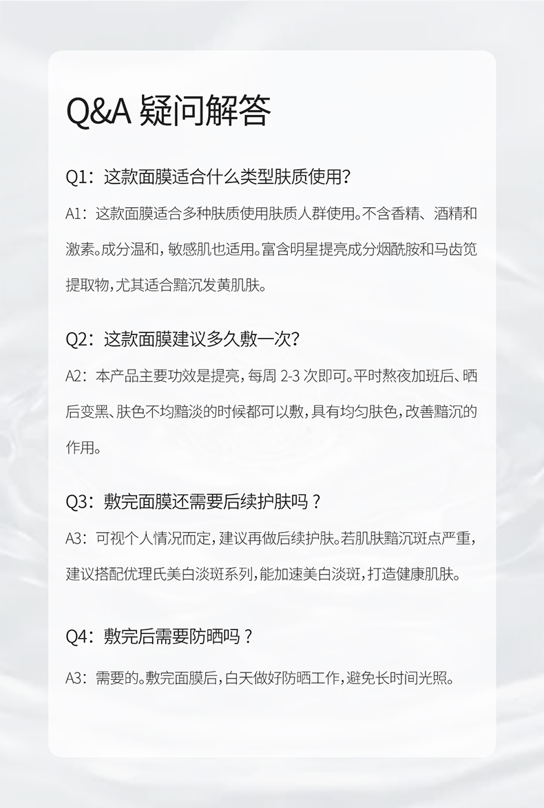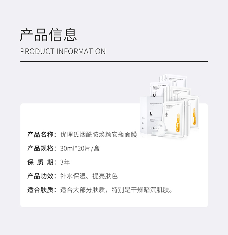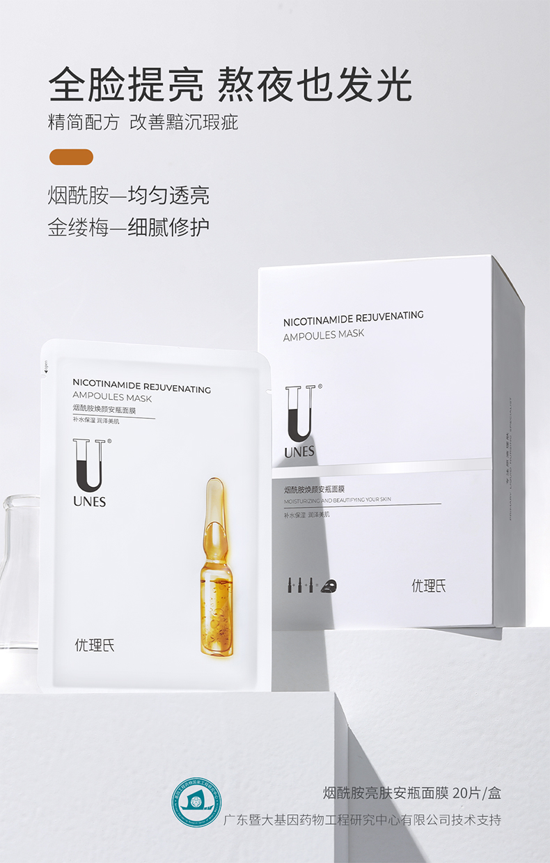 优理氏烟酰胺亮肤安瓶面膜10片装 针对暗沉肌 抗氧提亮 淡痘淡斑 锁水保湿 舒缓面膜-FX
