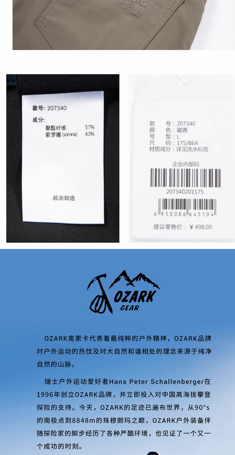 OZARK奥索卡休闲裤官方正品新款宽松休闲直筒户外徒步长裤子男207340