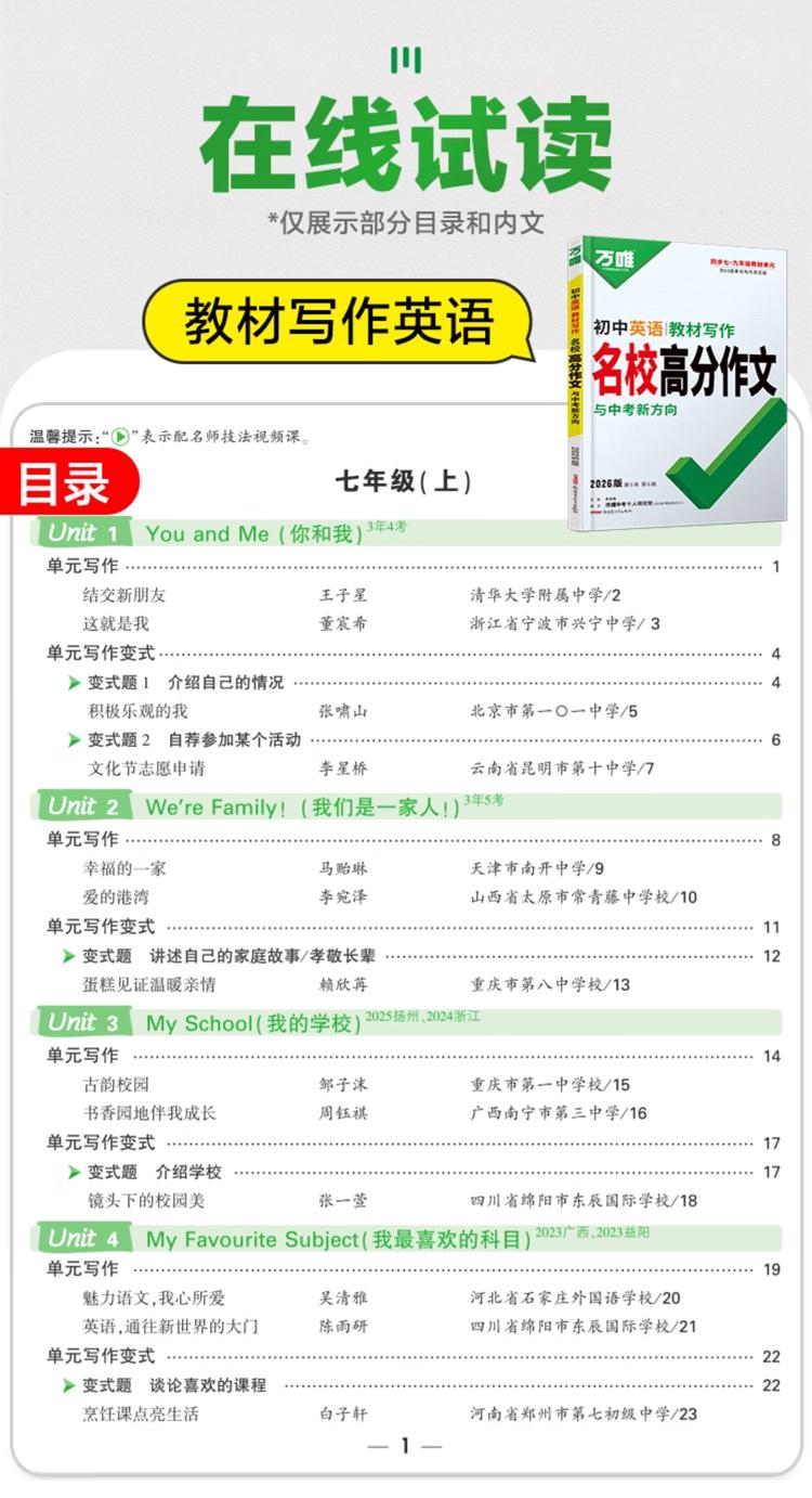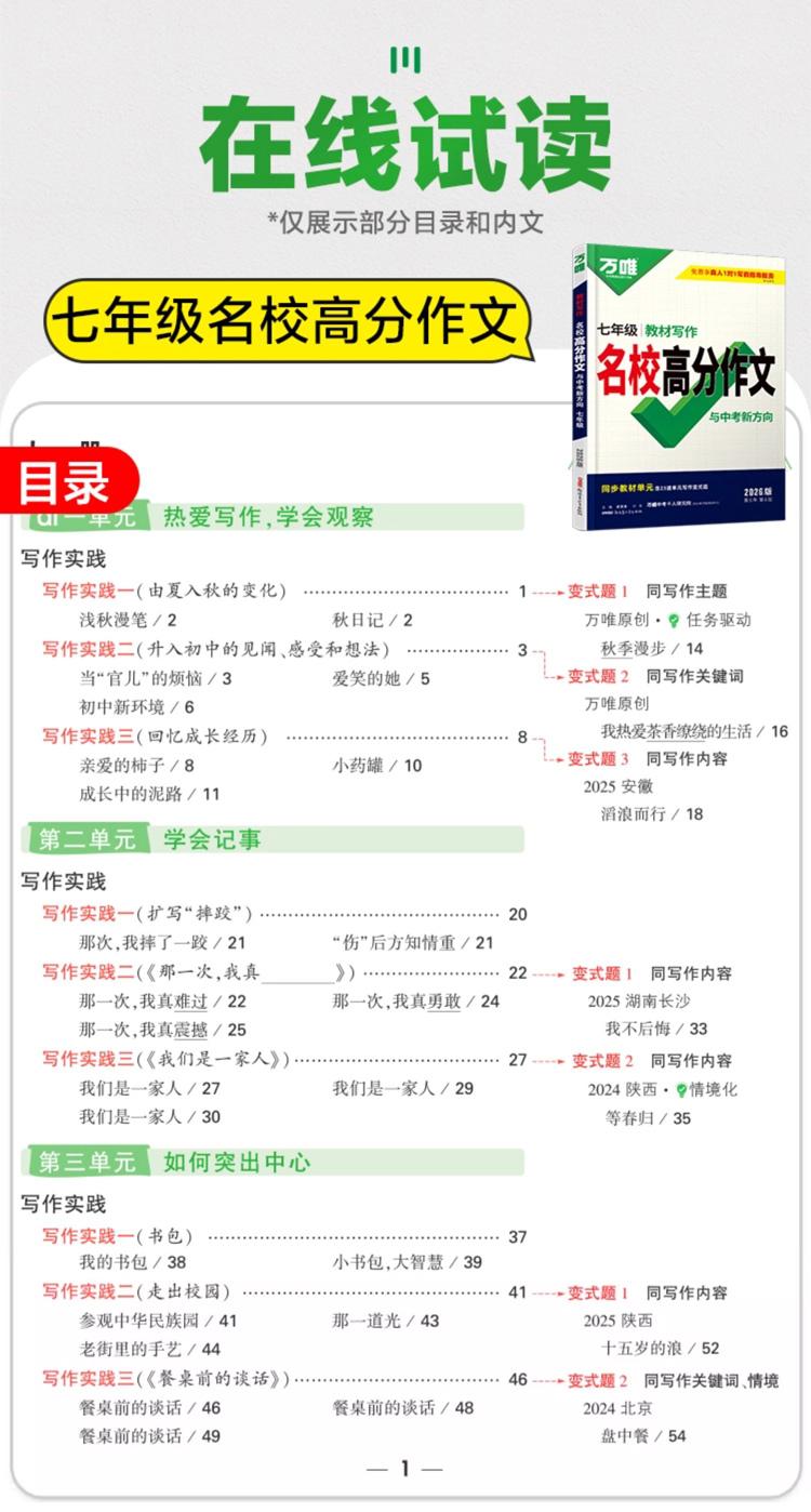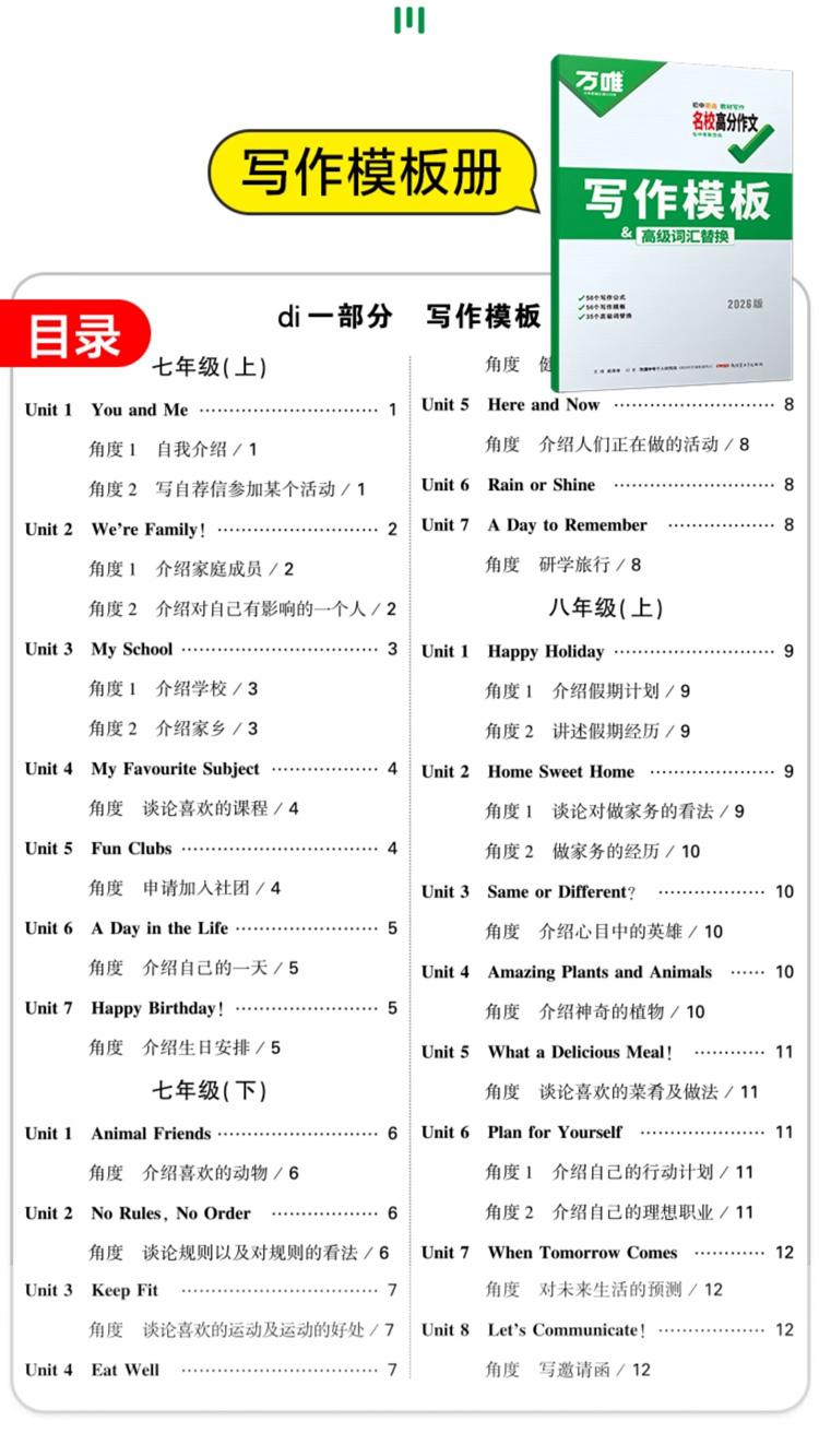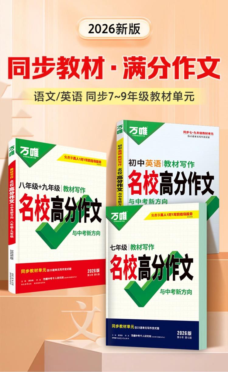 2026万唯教材写作名校高分作文名校模考高分作文语文英语七八中考同步作文