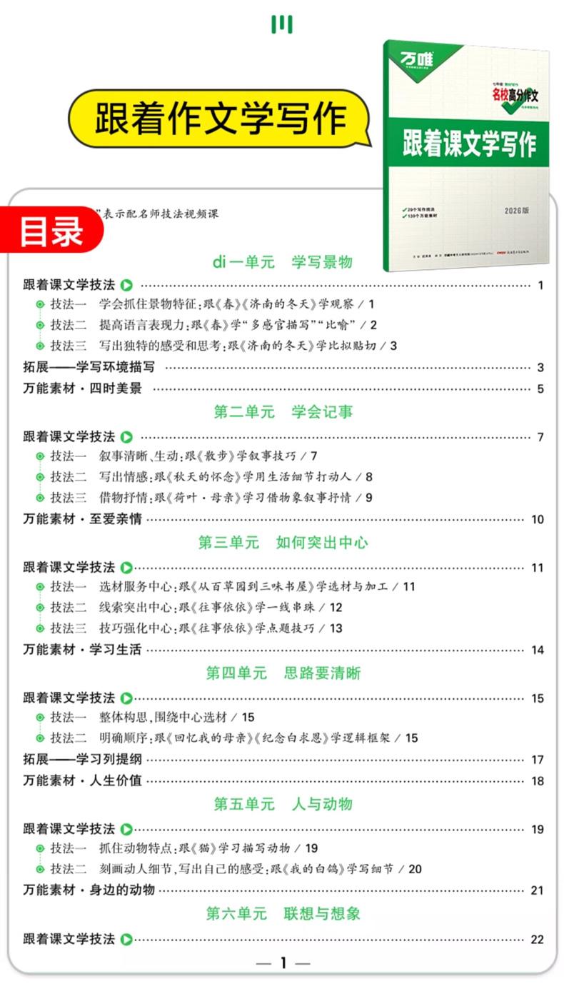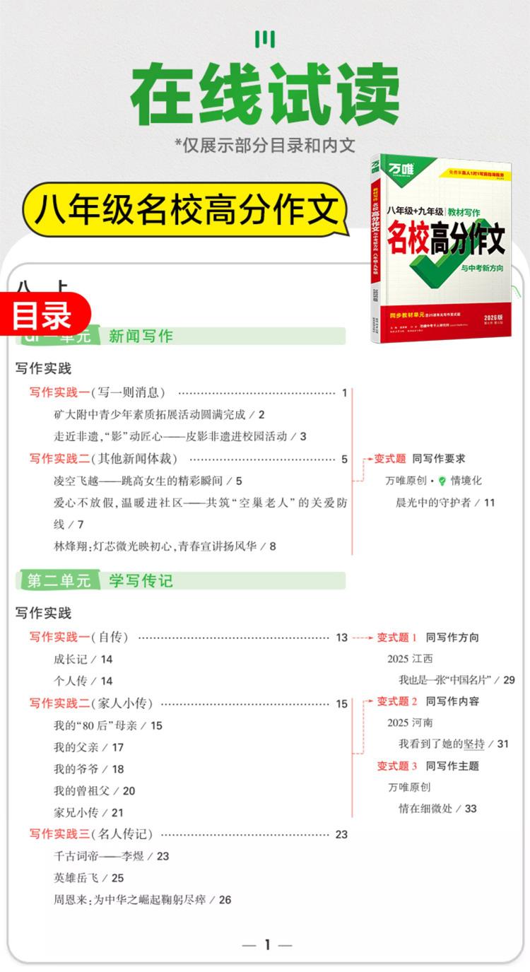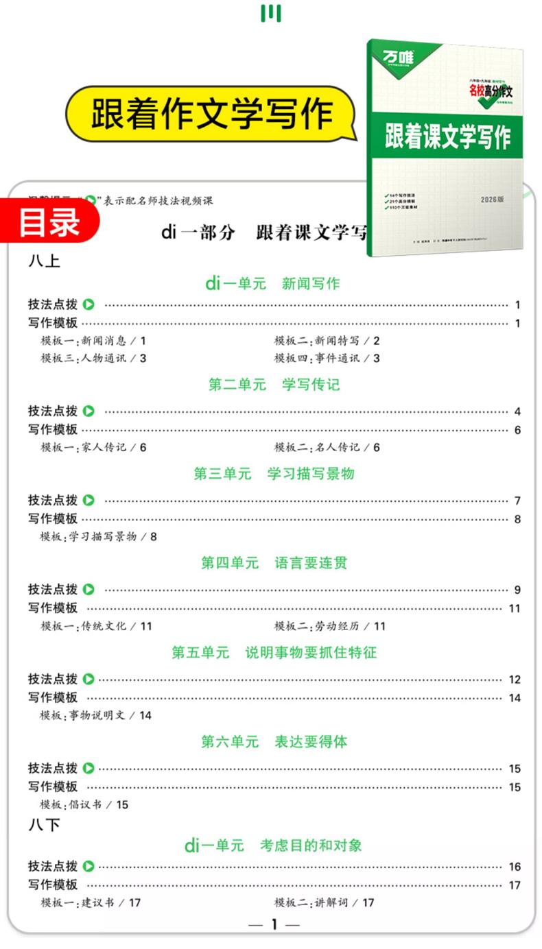 2026万唯教材写作名校高分作文名校模考高分作文语文英语七八中考同步作文