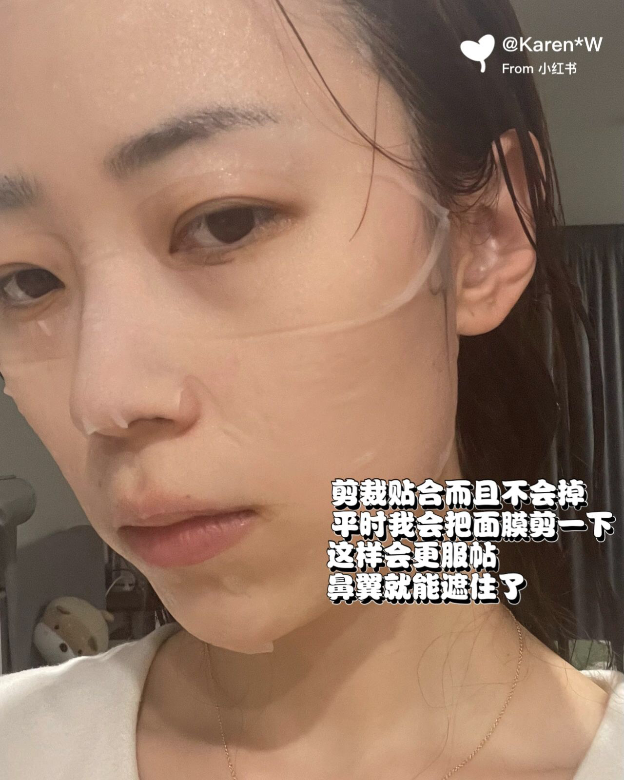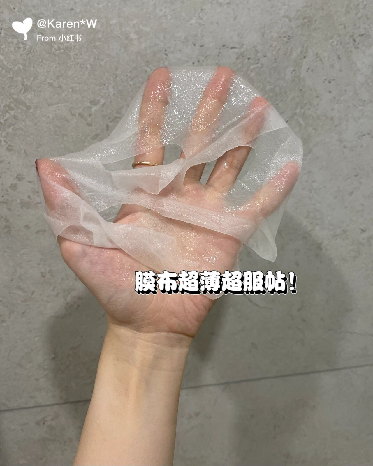 膜布也太薄太舒服了!软软滑滑的,重点是超级服贴。而且剪裁也很贴合脸型,加上膜布柔软,真的可以完全贴合面部,敷起来就很舒服,蹦迪都不会掉哈哈
