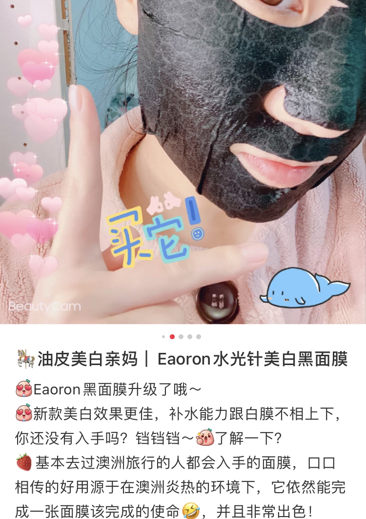 因为进入冬天了,除了保湿,我还希望能滋润一点的质感,综合性价比较高的应该是他了,澳洲eaoron水光针极速亮白黑面膜。