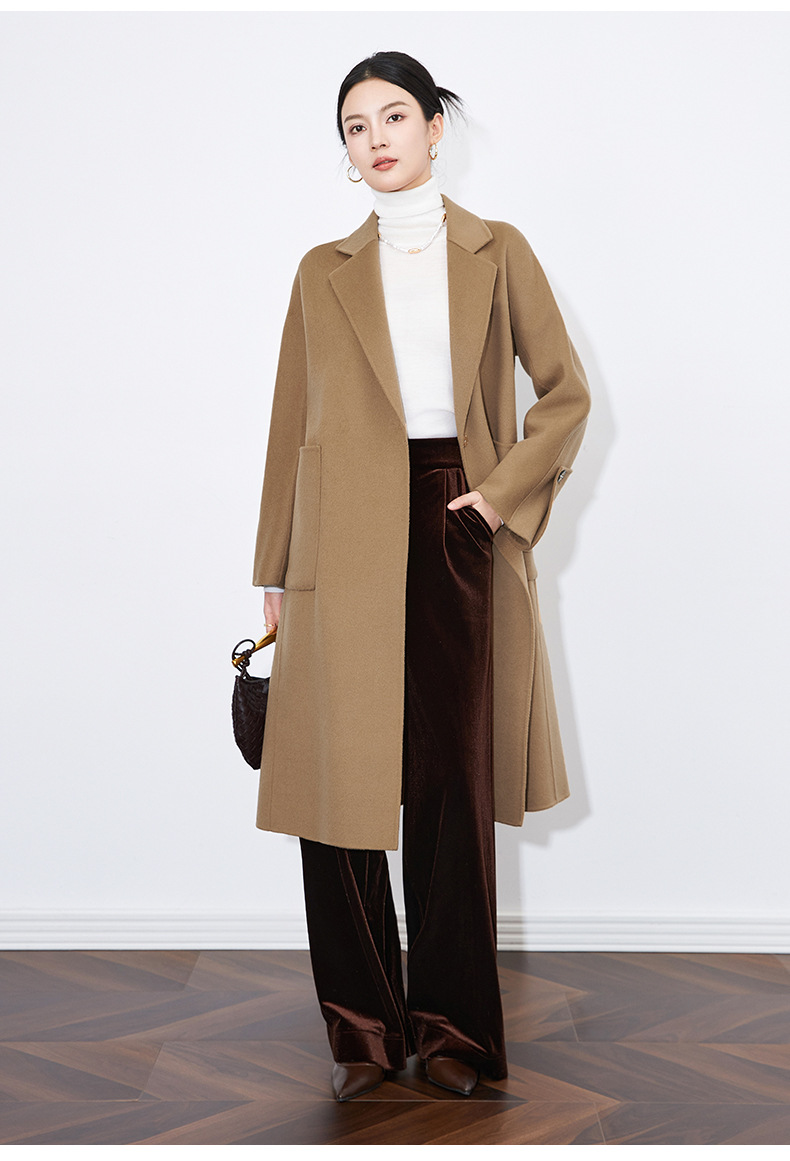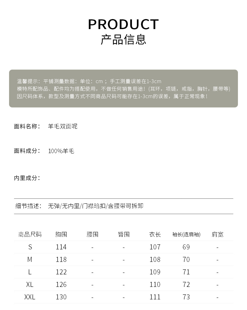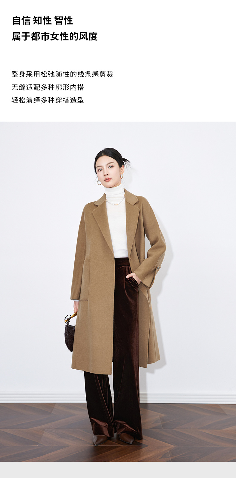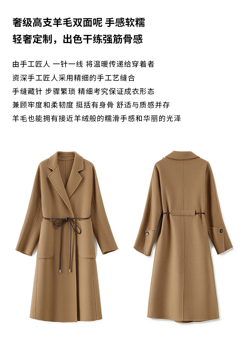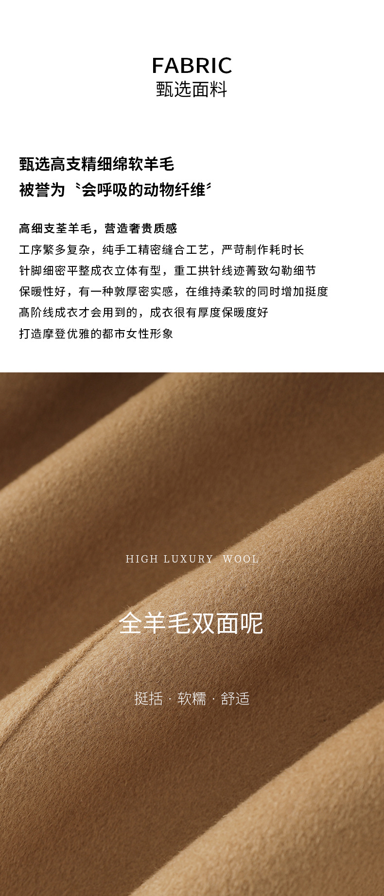 【高货wl】全新升级【铂金会员809/天猫1099/差价290】(12822) 洛诗琳秋冬双面呢中长款高级感气质美拉德100%羊毛呢大衣