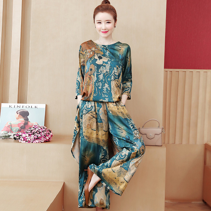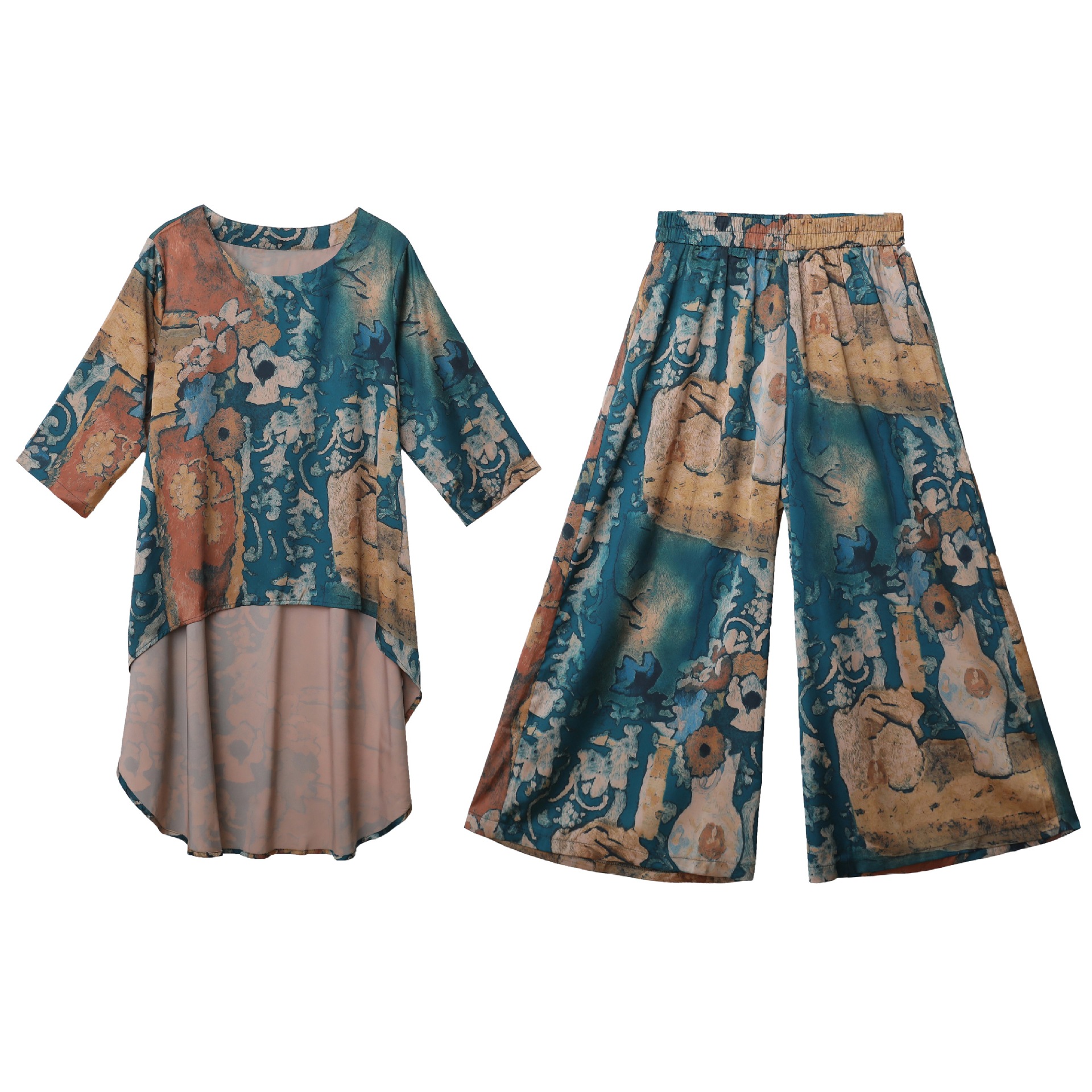 YHSS-jm137-8555新款民族风休闲阔腿裤两件套