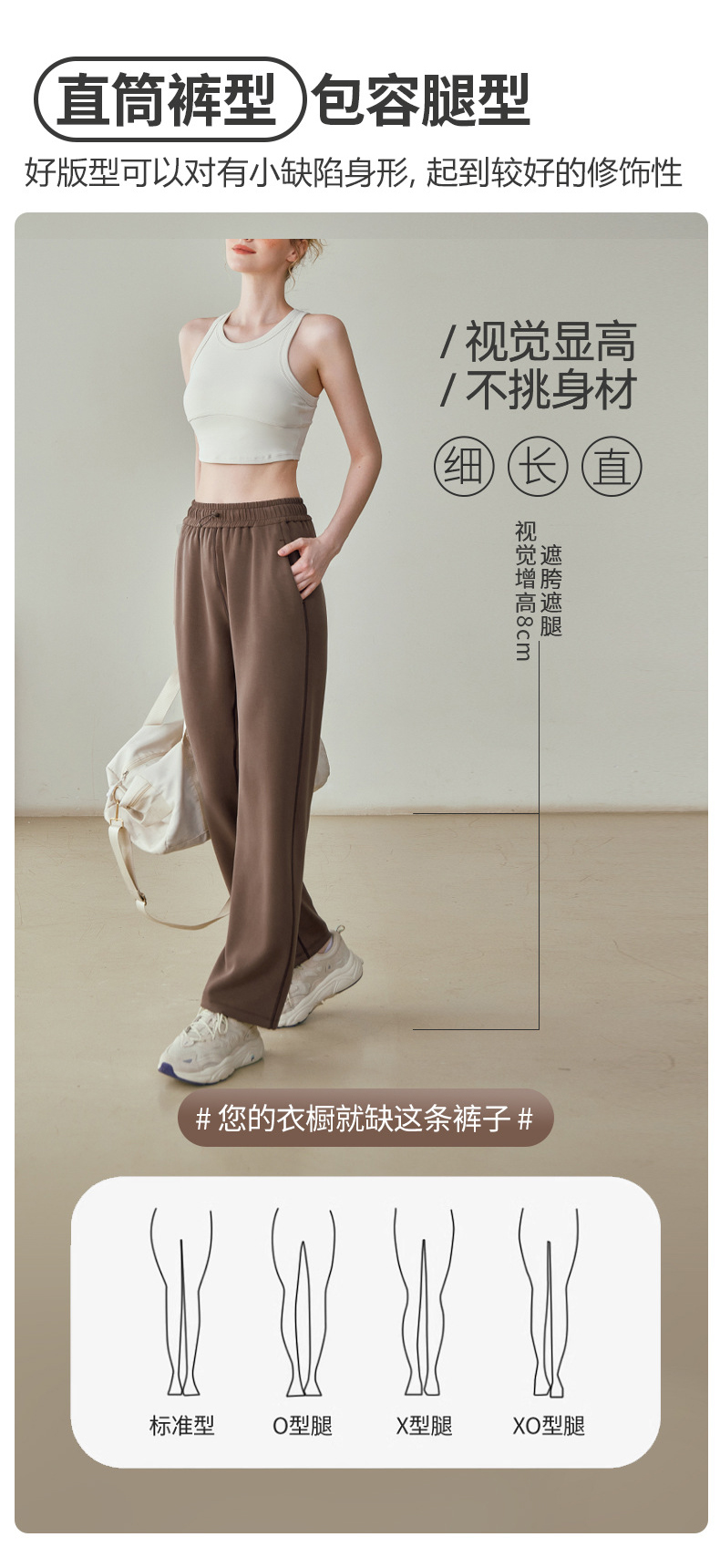 跃牌【健舞健美】系列 运动裤女新款宽松休闲高腰显瘦松紧垂感直筒裤6962