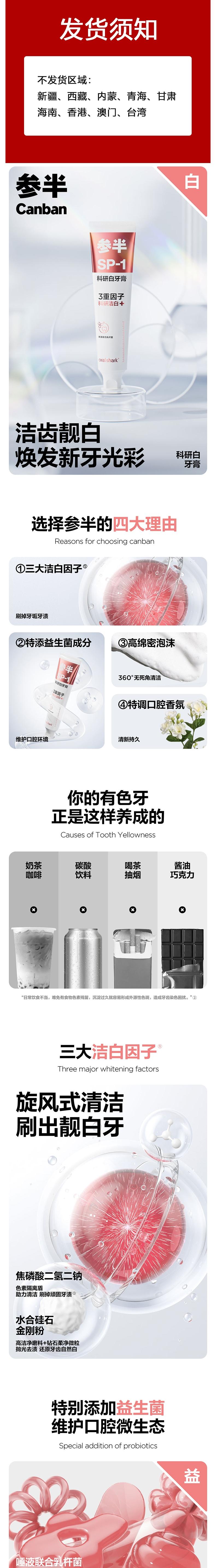 参半 高山茉莉味科研白牙膏180g 70356167334