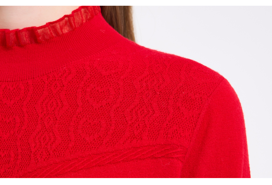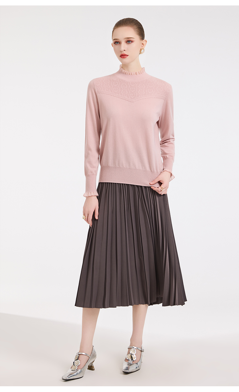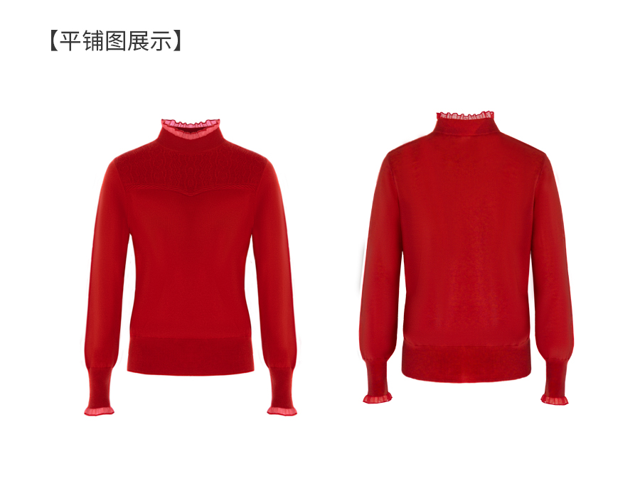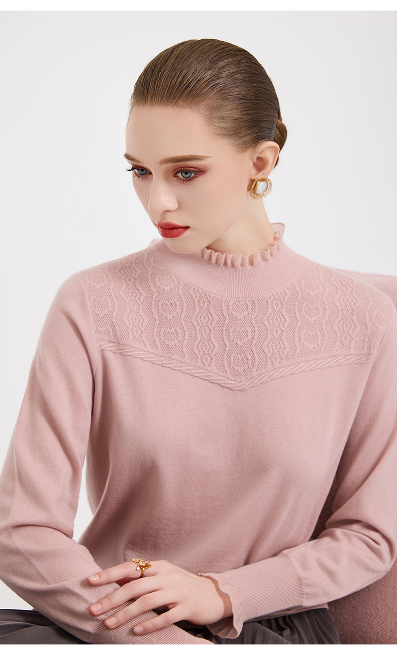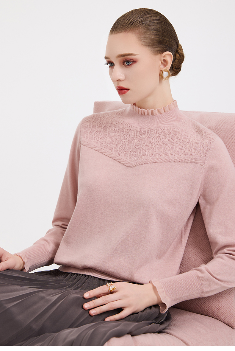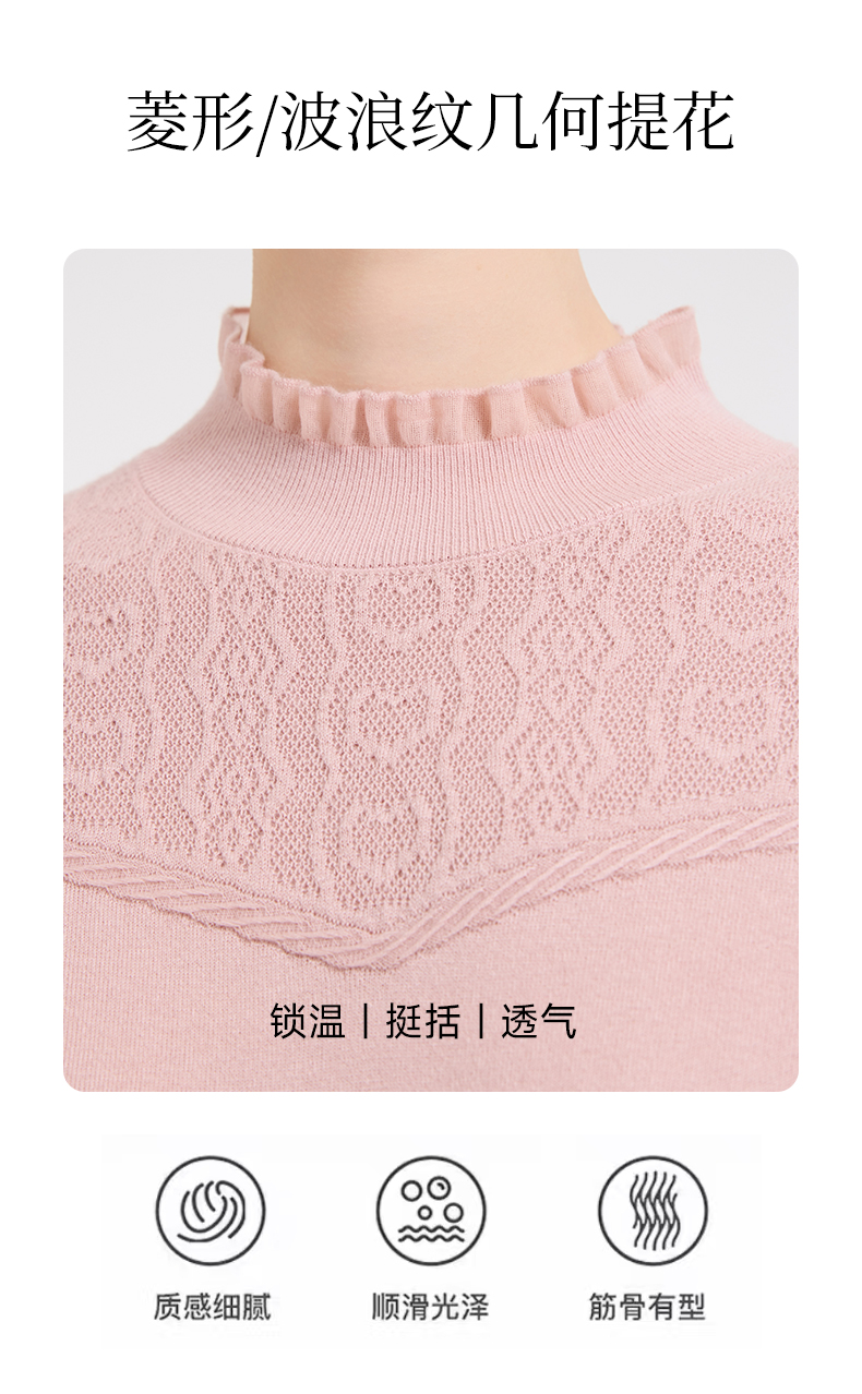 【5色可选】乔万尼木耳边勾花拼接半高领羊毛保暖打底衫毛衫ED4M827