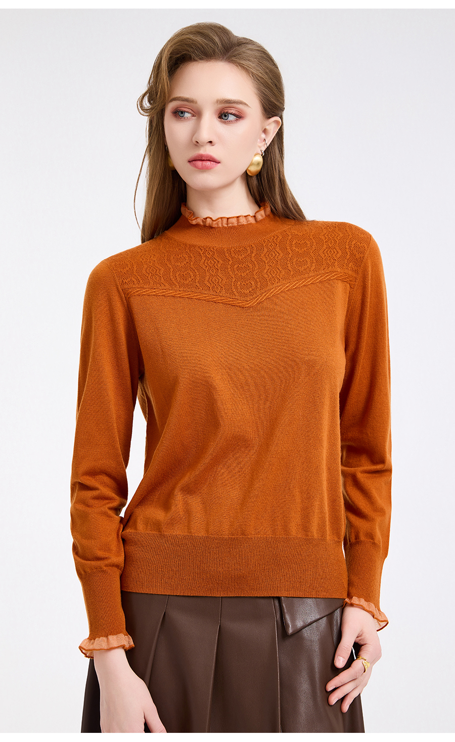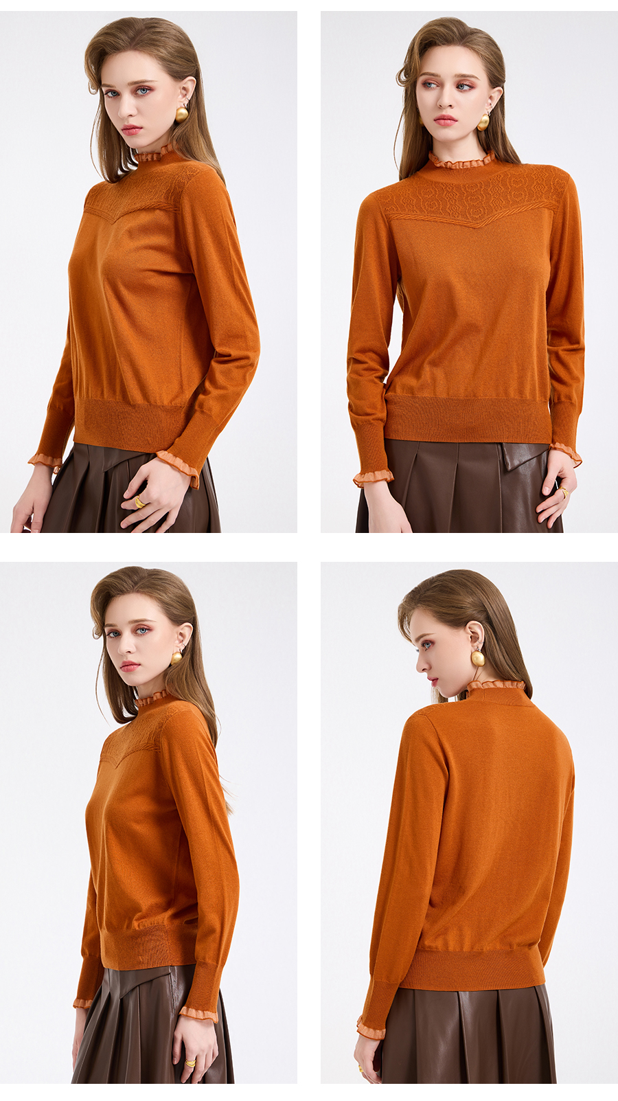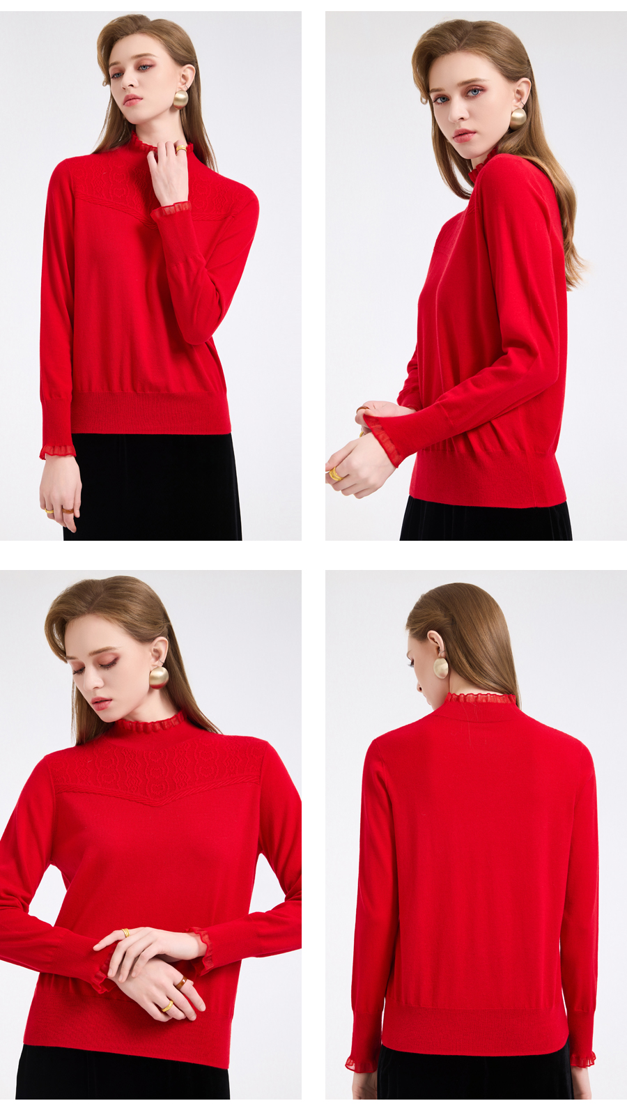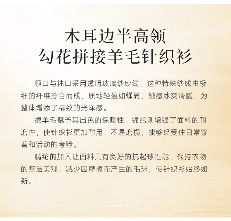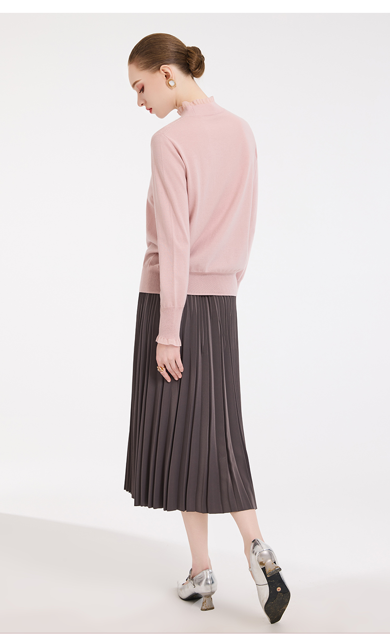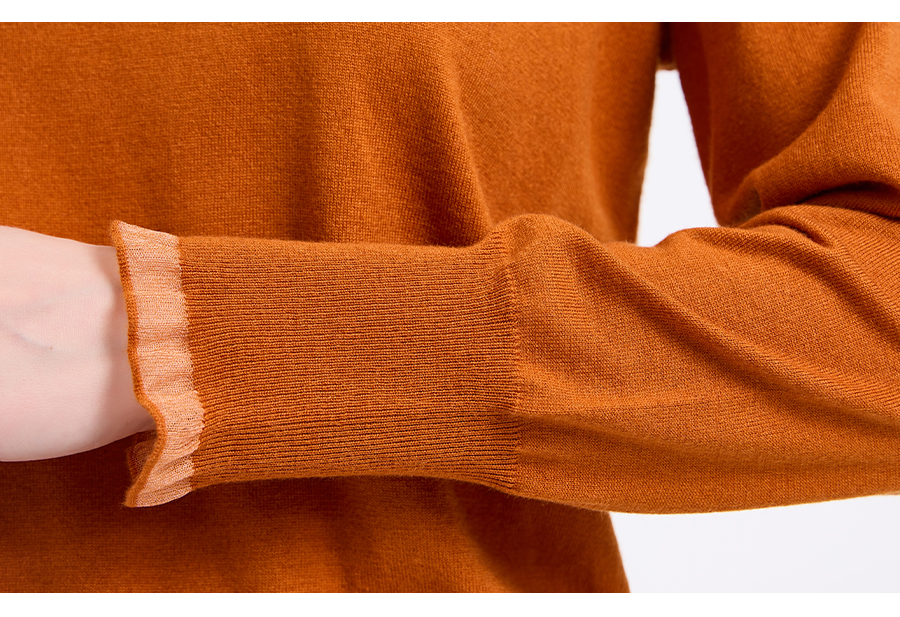 【5色可选】乔万尼木耳边勾花拼接半高领羊毛保暖打底衫毛衫ED4M827