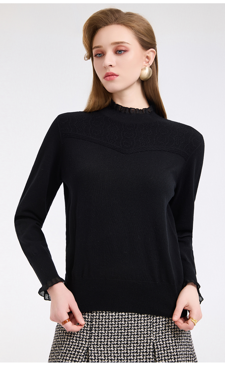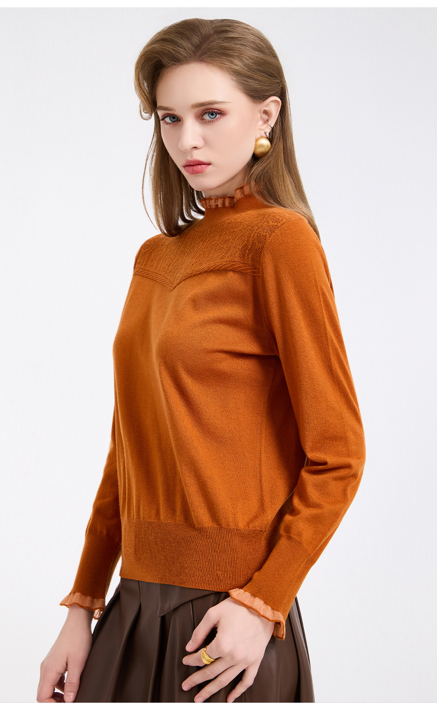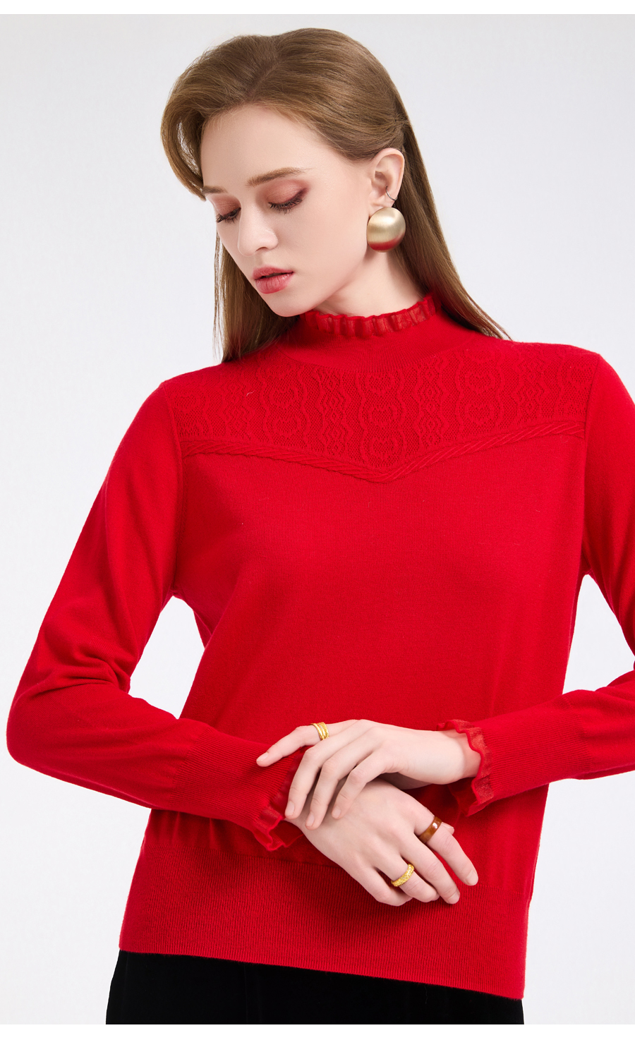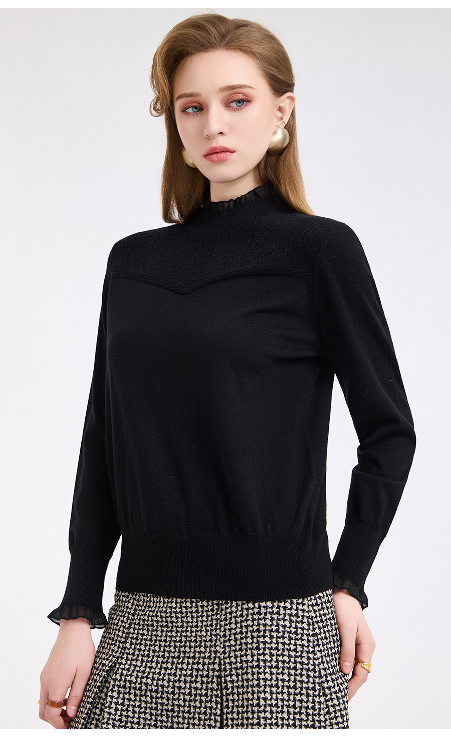 【5色可选】乔万尼木耳边勾花拼接半高领羊毛保暖打底衫毛衫ED4M827