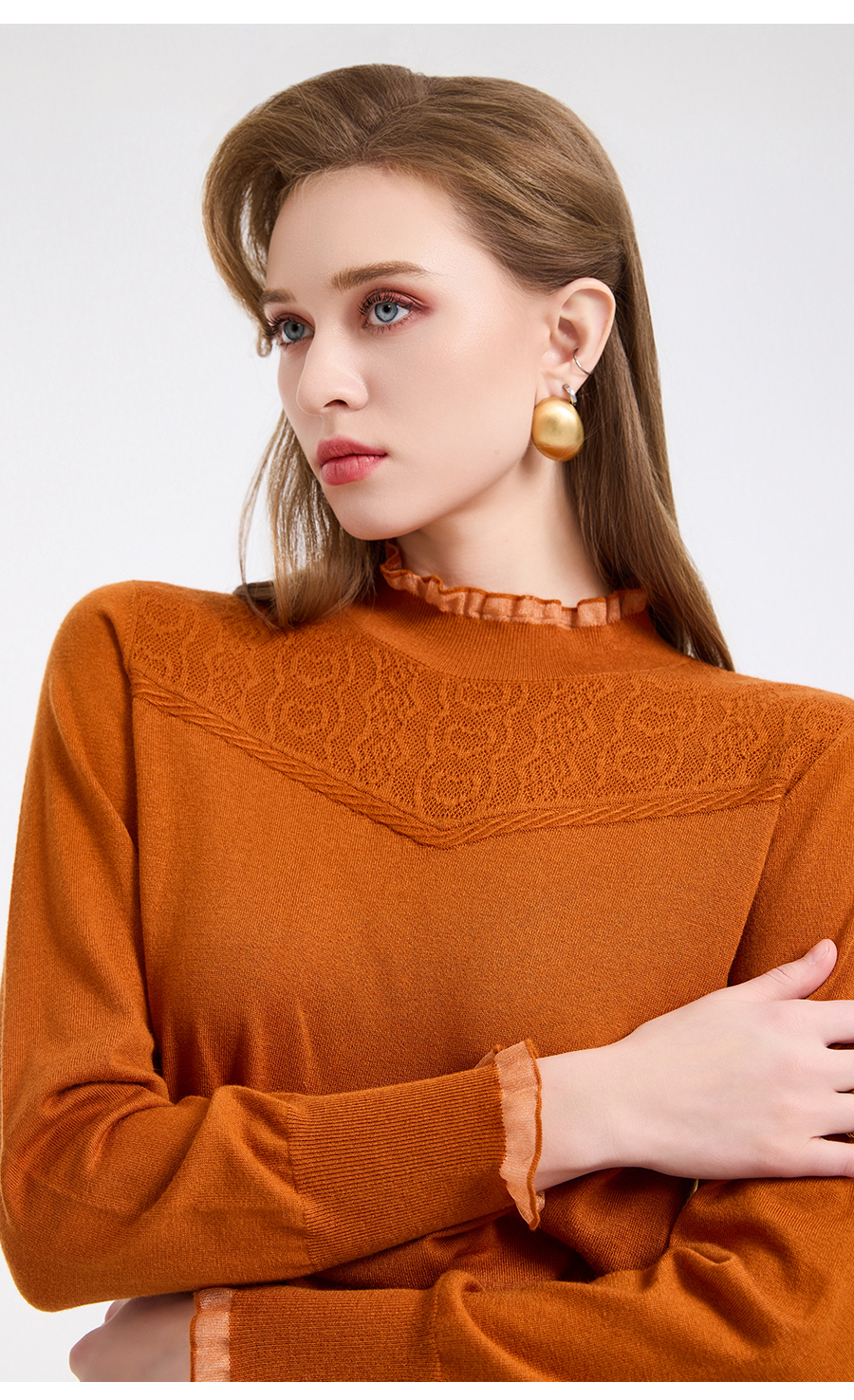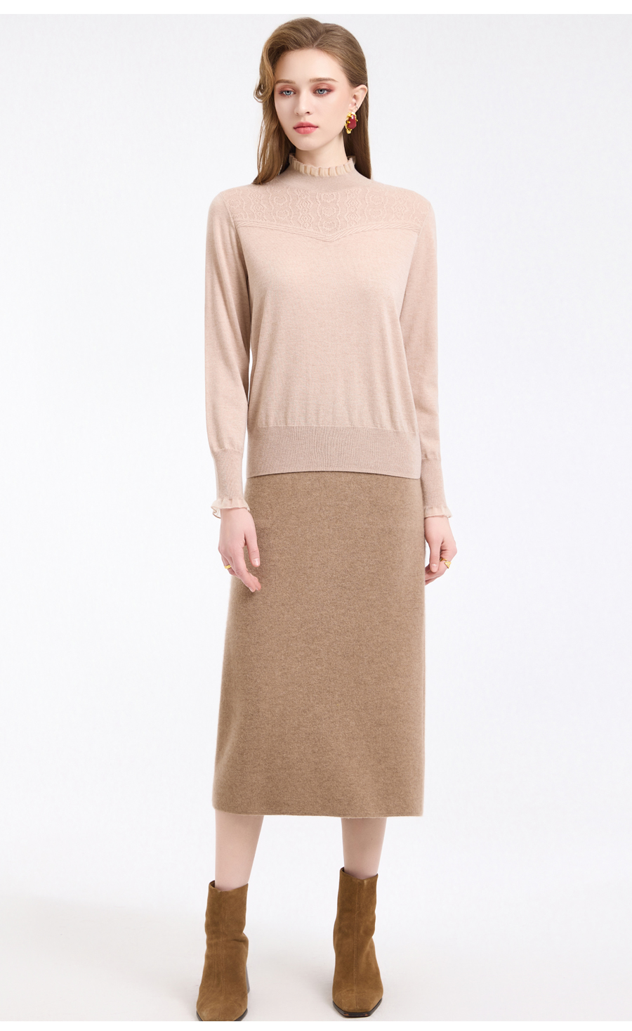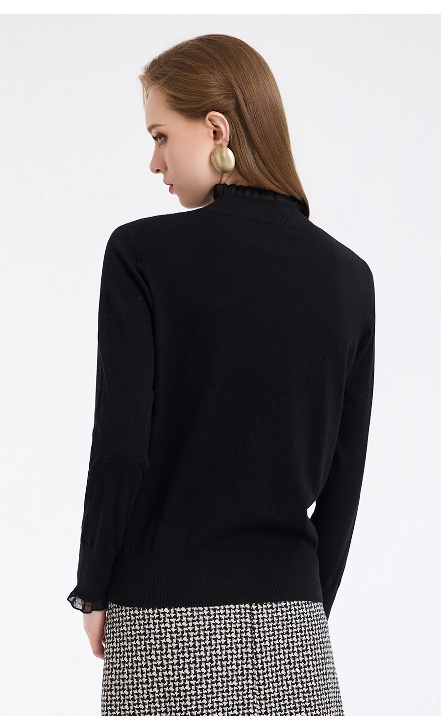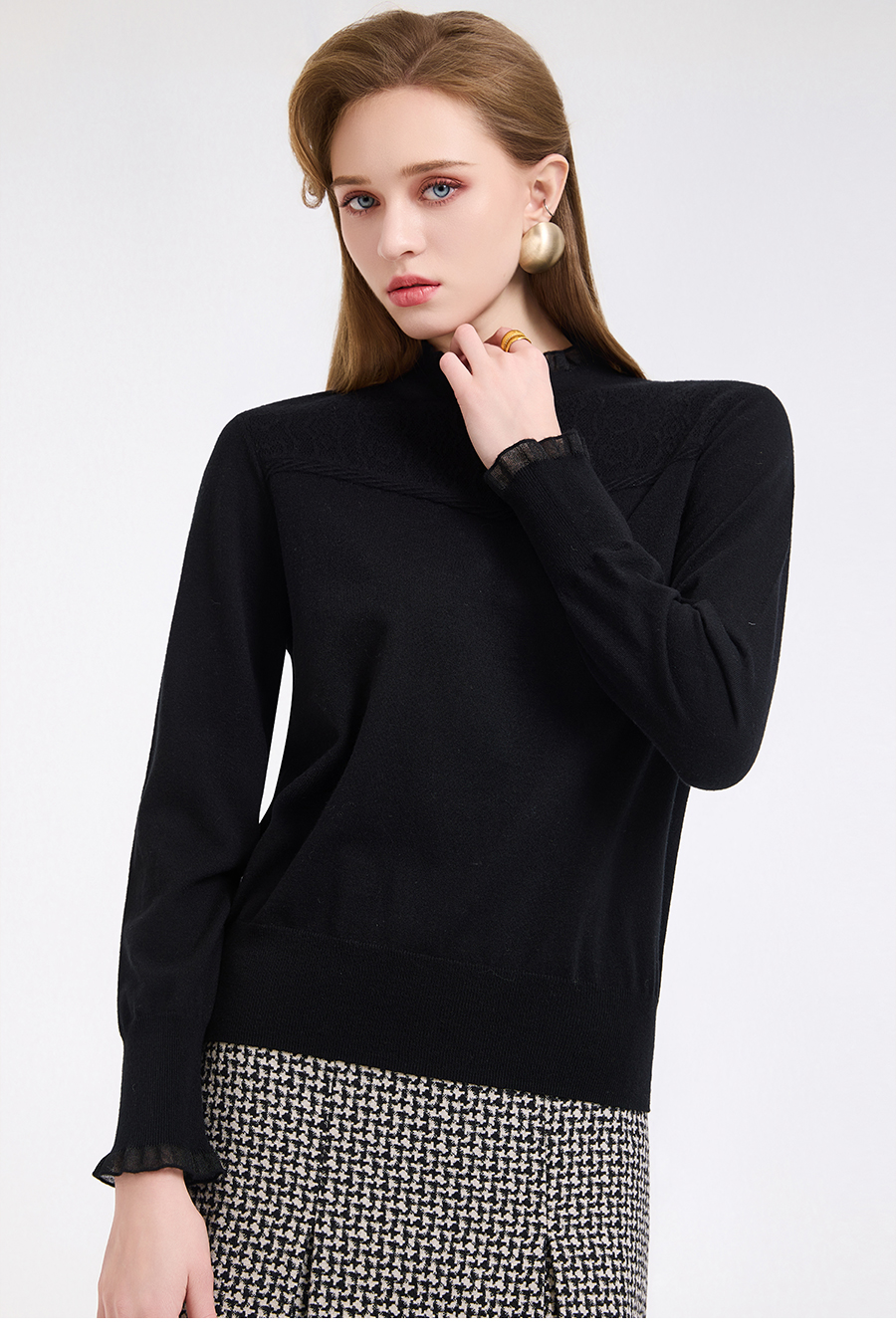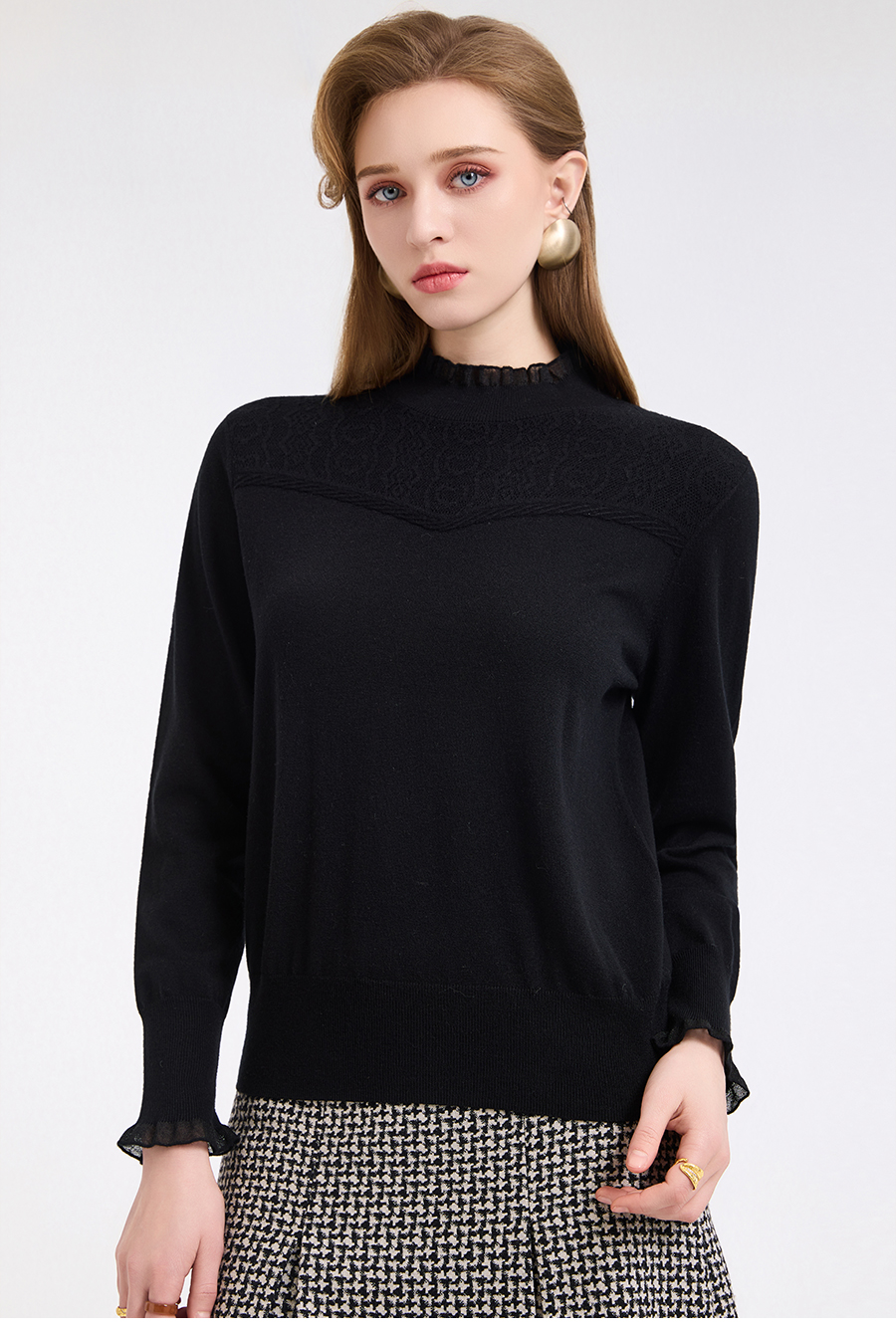 【5色可选】乔万尼木耳边勾花拼接半高领羊毛保暖打底衫毛衫ED4M827
