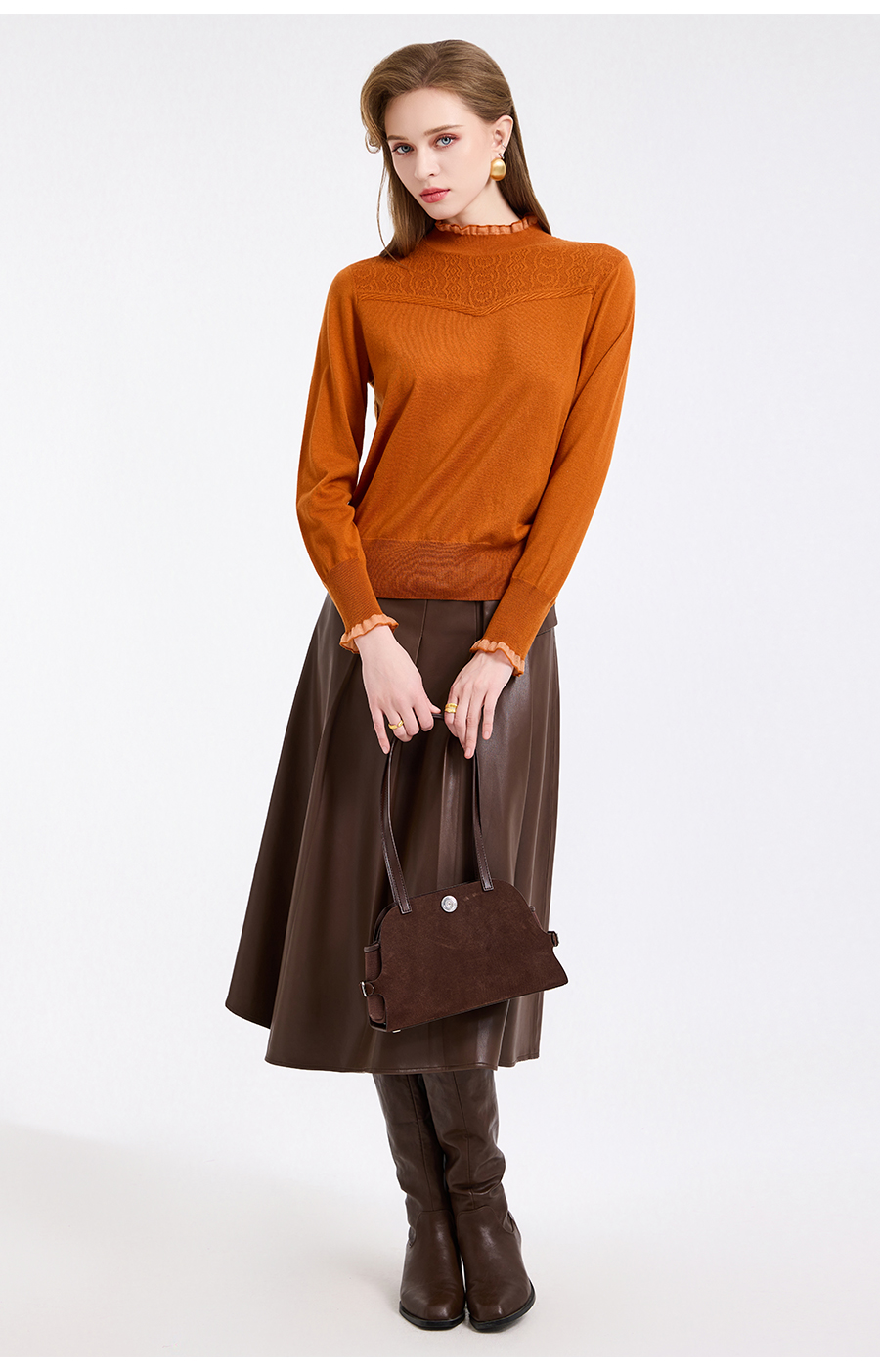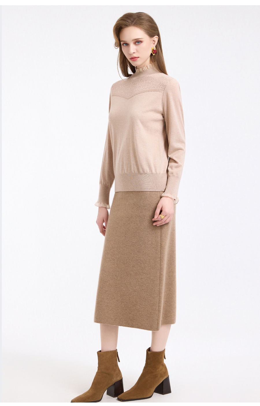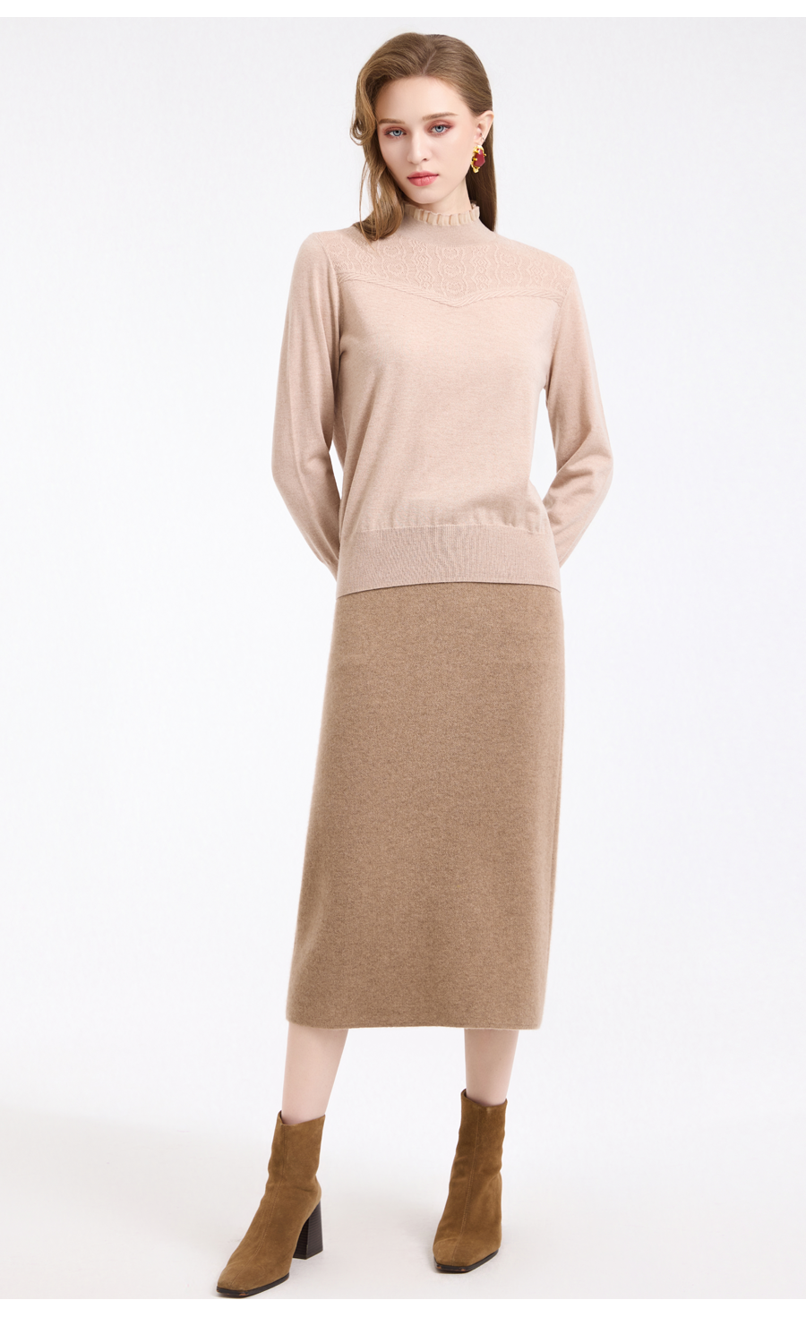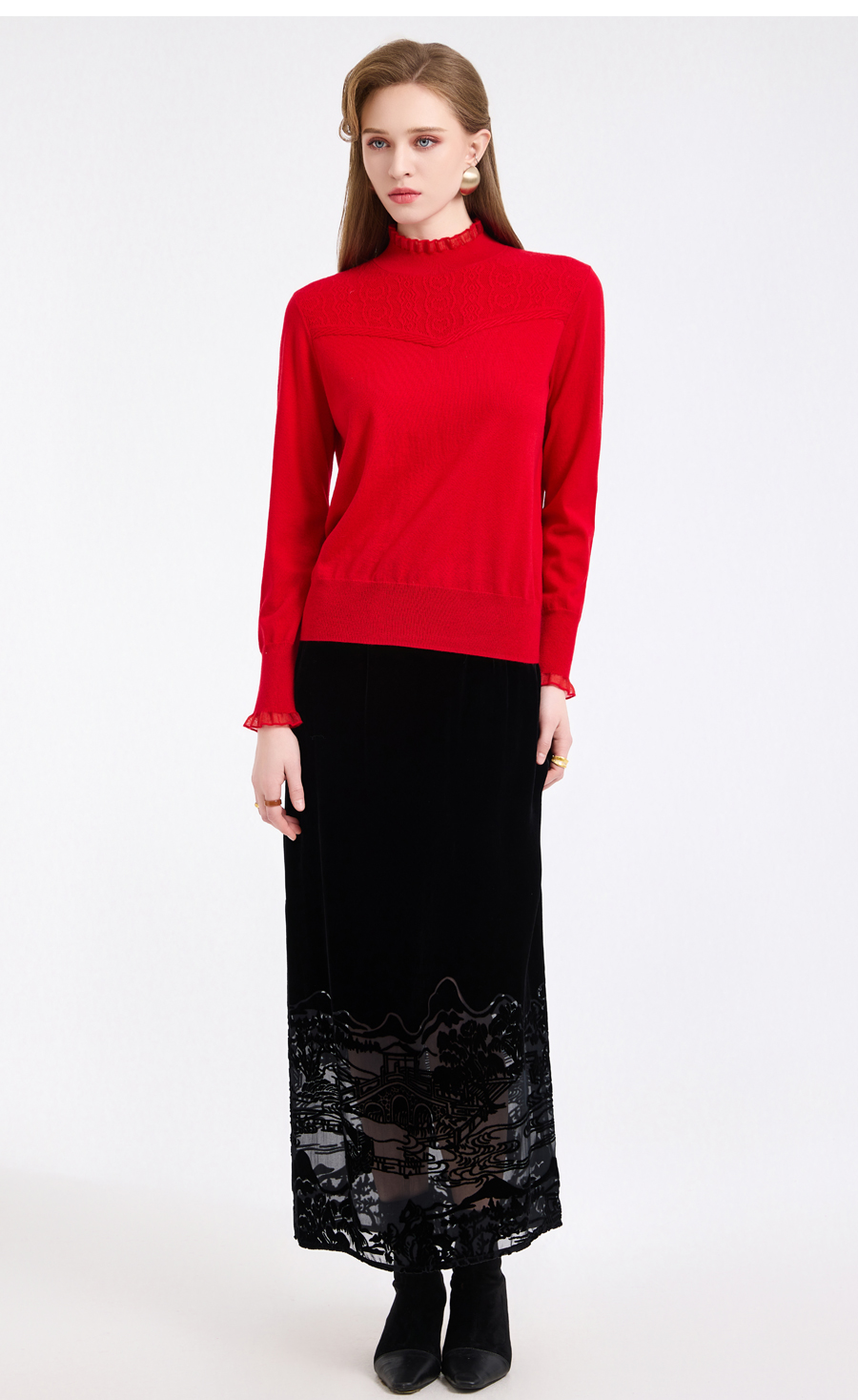 【5色可选】乔万尼木耳边勾花拼接半高领羊毛保暖打底衫毛衫ED4M827