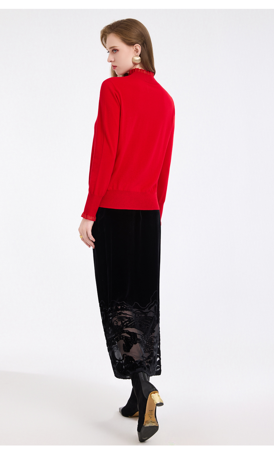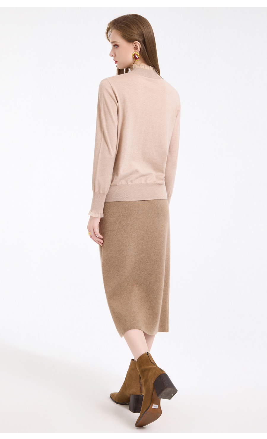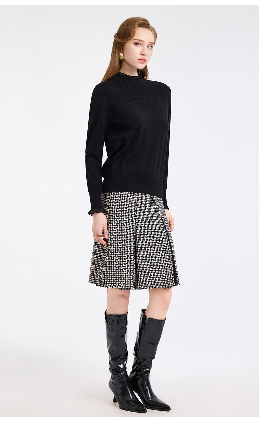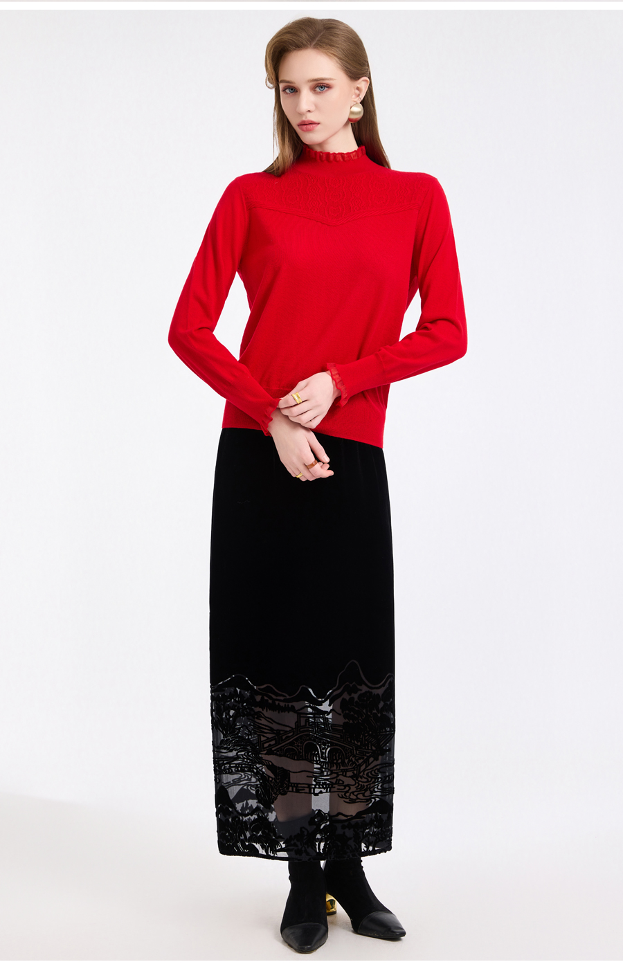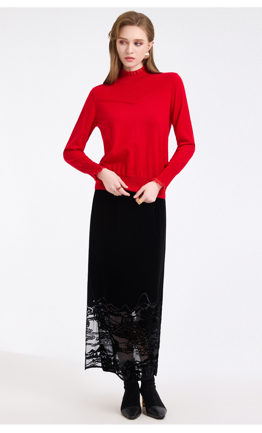 【5色可选】乔万尼木耳边勾花拼接半高领羊毛保暖打底衫毛衫ED4M827