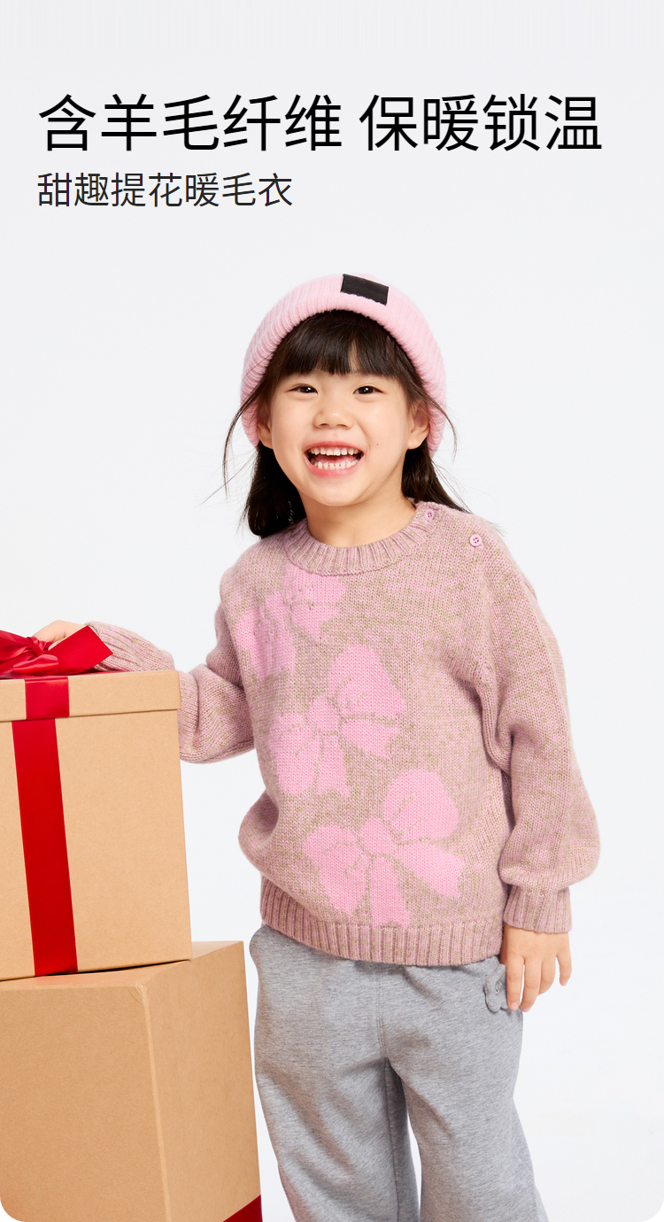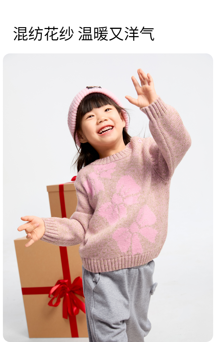 女童甜趣提花保暖毛衣冬季新款安奈儿童装实体店同款XG444598
