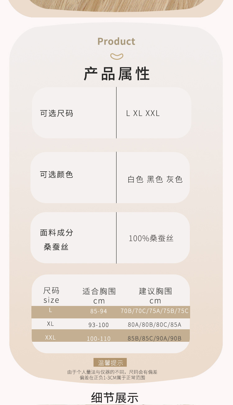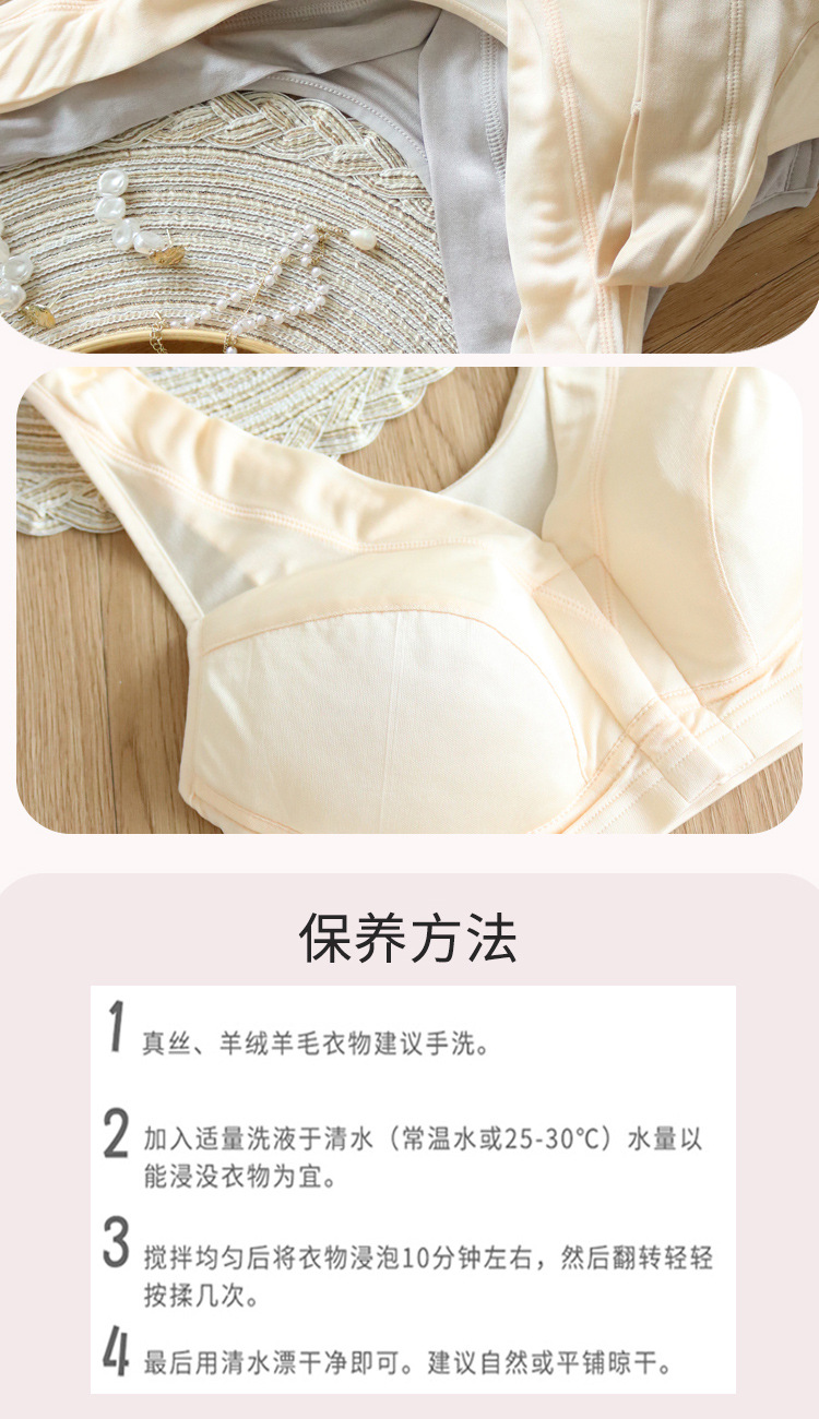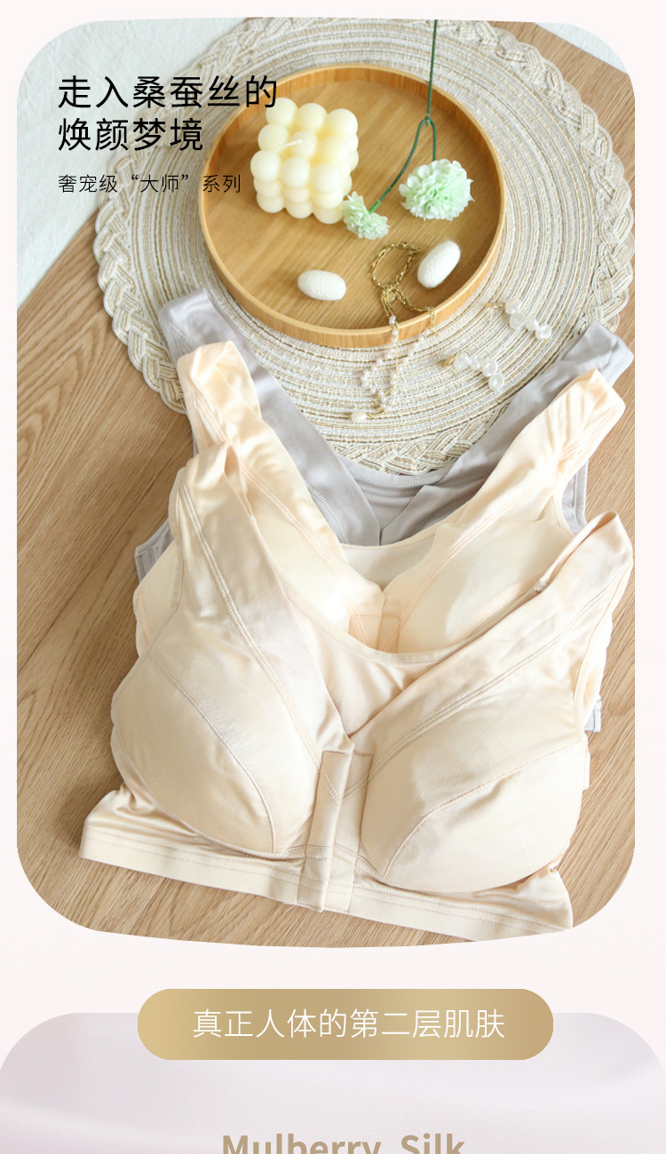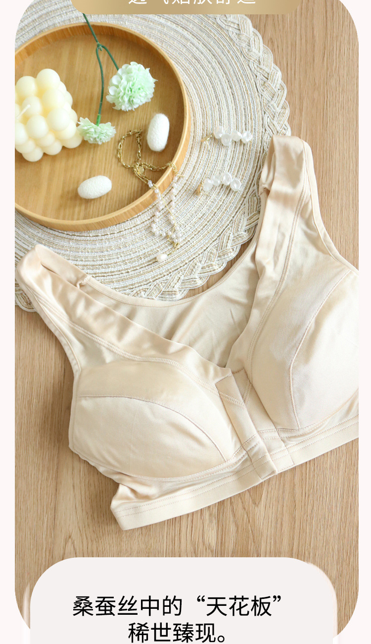 丁摩 高端品质桑蚕丝针织真丝文胸无刚托前扣文胸S020