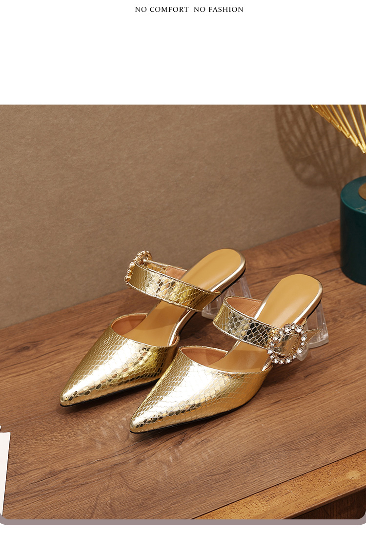 【预售5天】性感优雅,真皮粗跟包头半拖凉鞋PLGZ&B1950