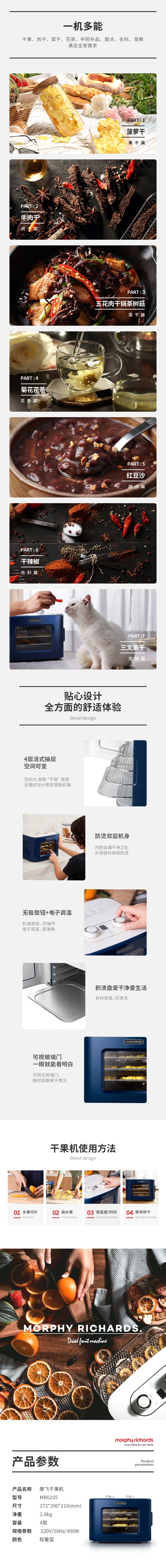 杞冠臻选 | 摩飞 干果机 4层烘干机 肉干果干零食自制 迷你电烤箱 轻奢蓝 morphy richards 英伦创意家电 MR6255