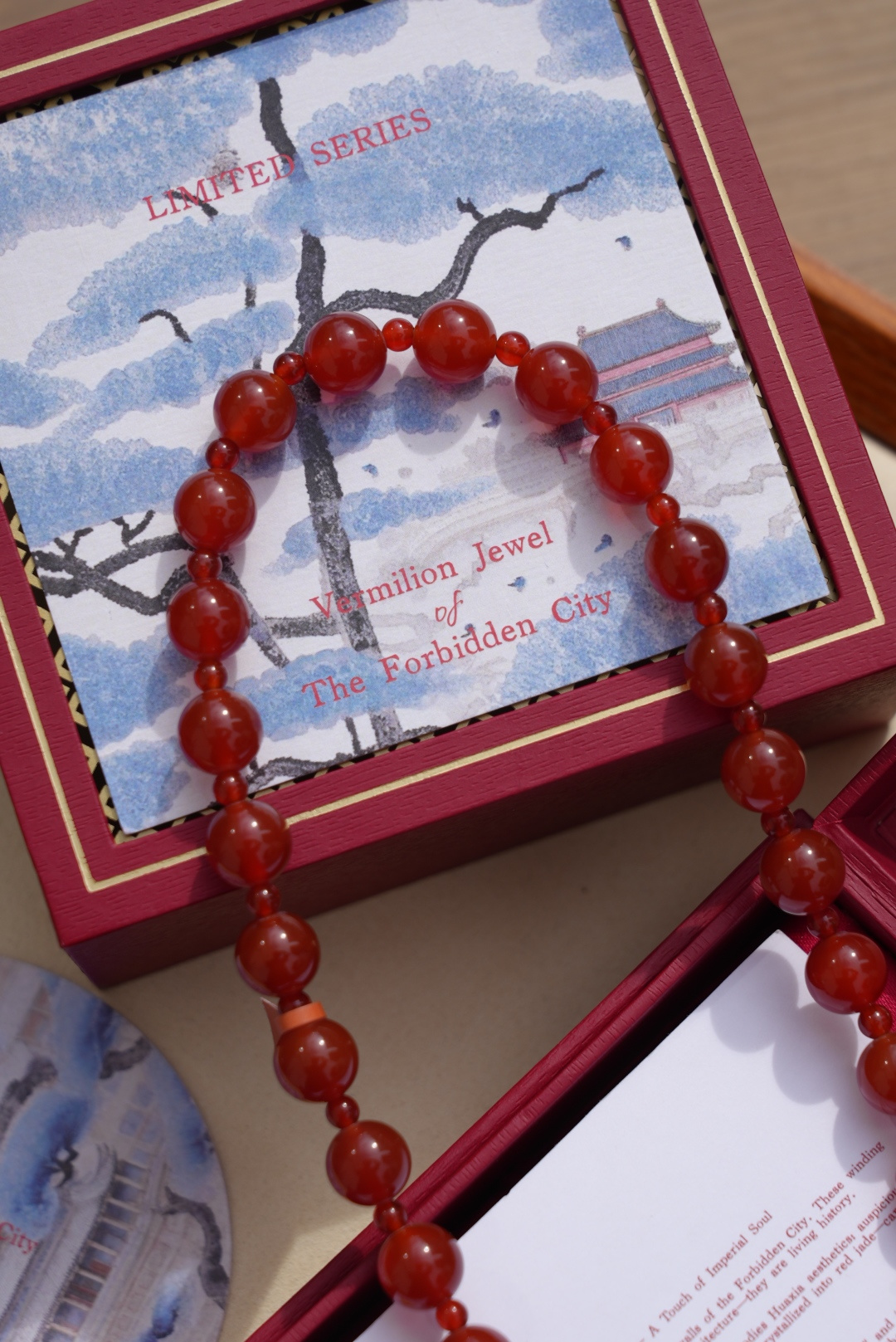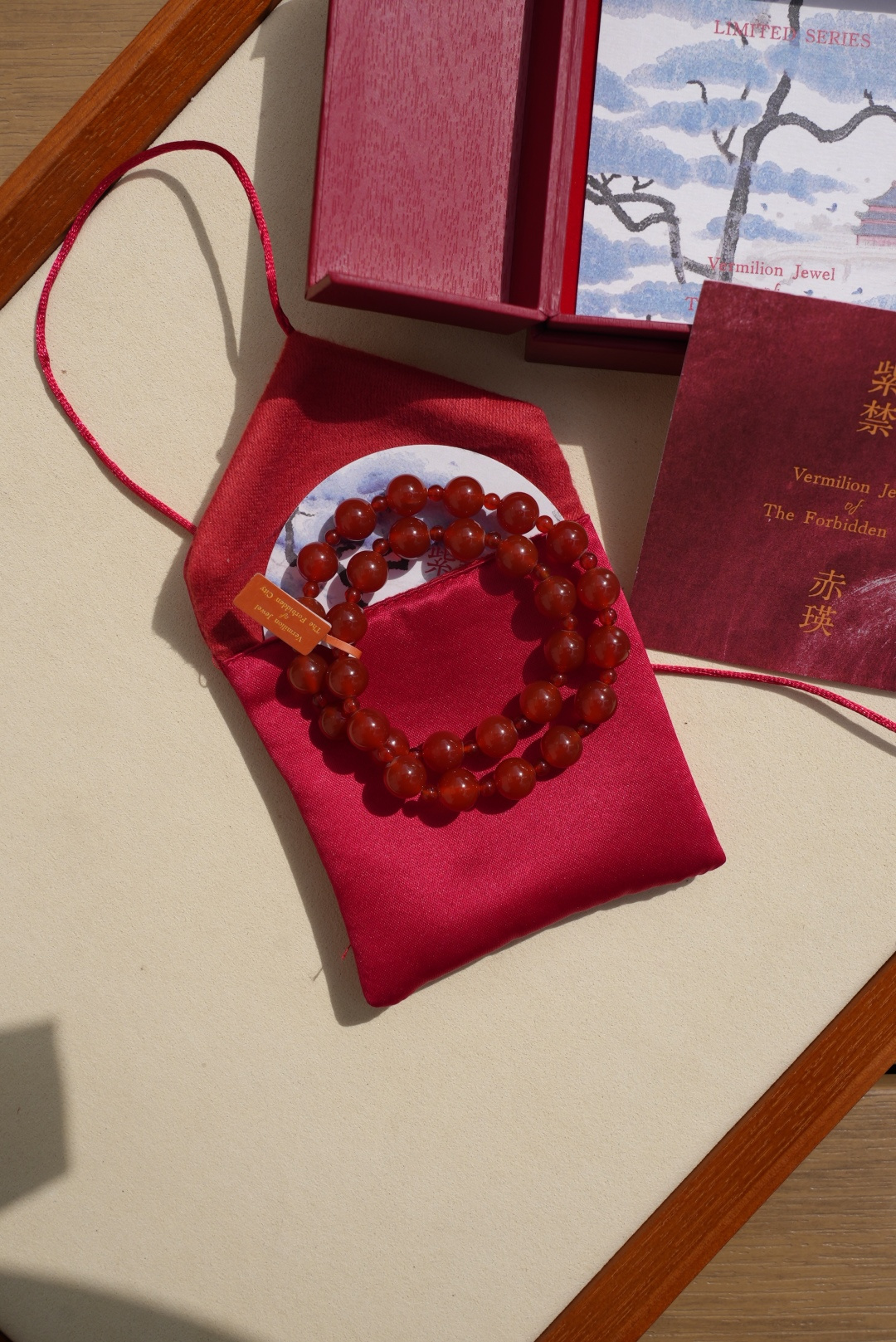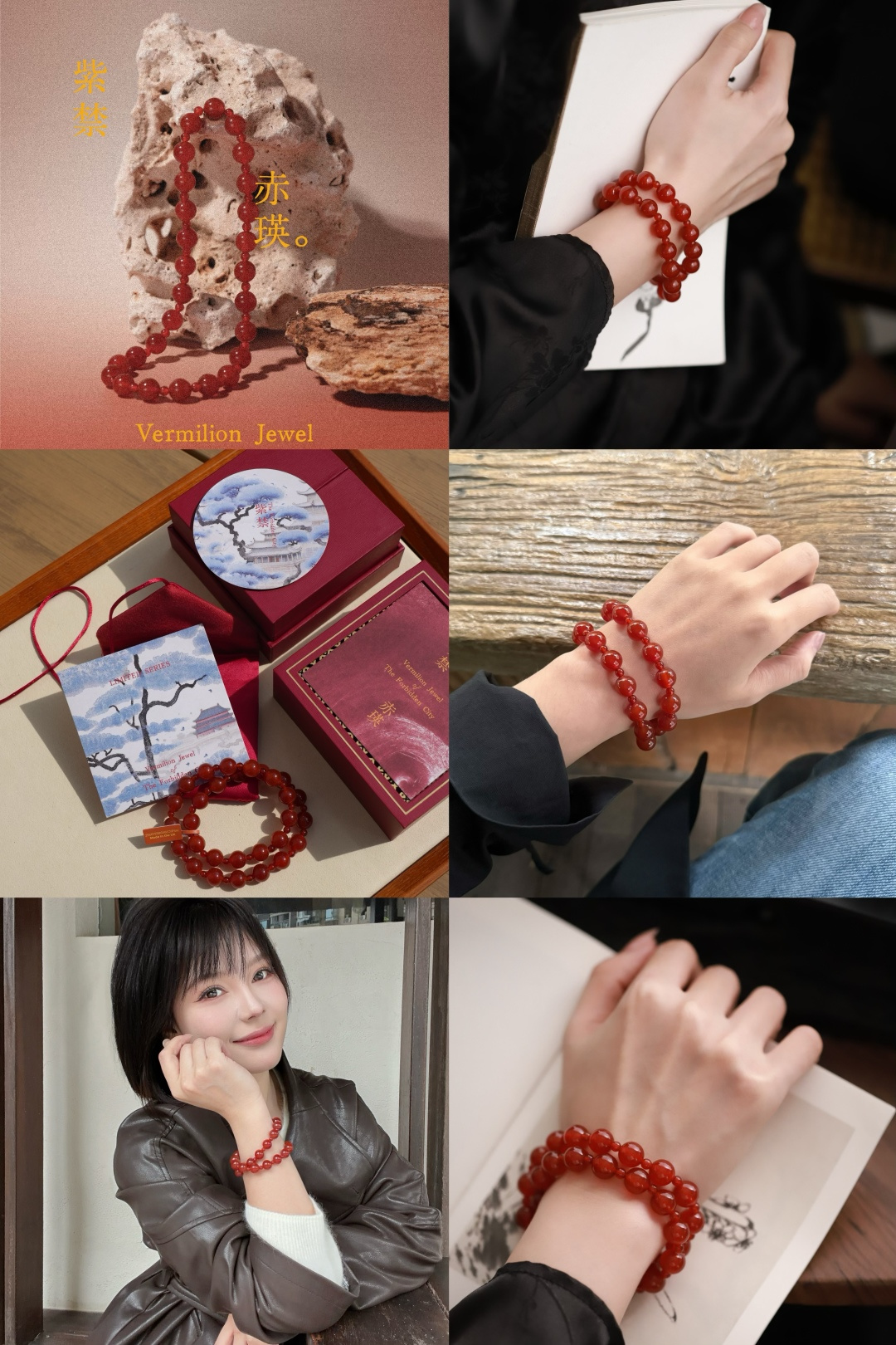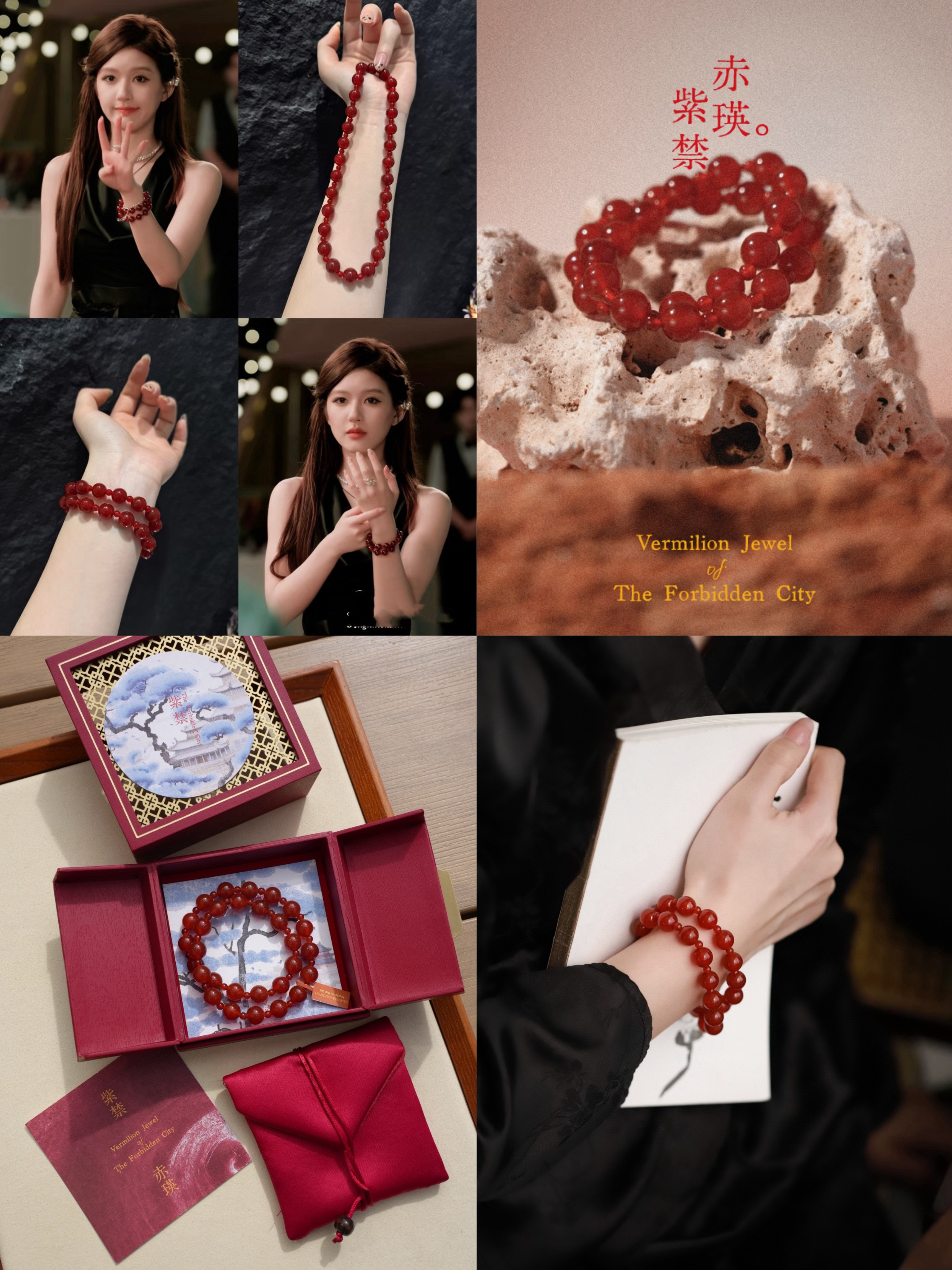 六百年的故宫美学,赵露思同款。品牌zheng品‼️ 🧧故宫朱红调,不仅是显白利器,更是气场的延伸原封包装,内置限定贺卡!每个都带信息标签,吊牌2999港币🛒!红玛瑙本身就是女性之石,☀️✨ 叠戴设计 一百六七以下体重均可佩戴,带弹性