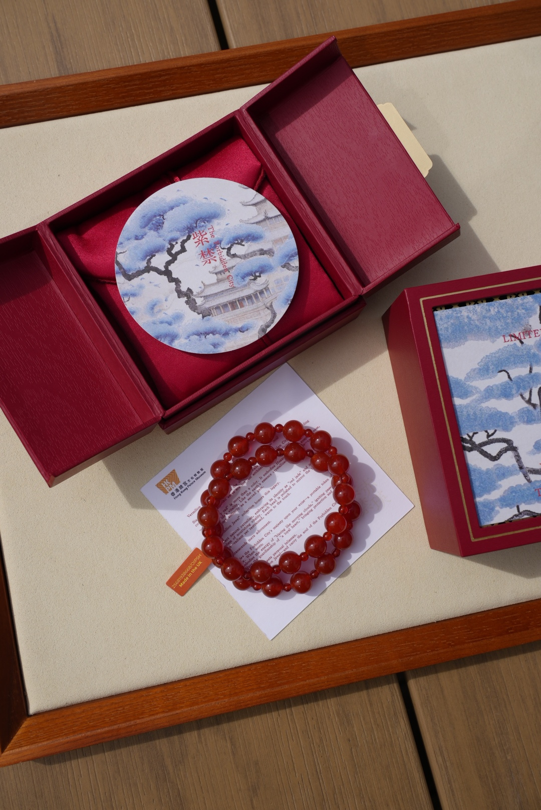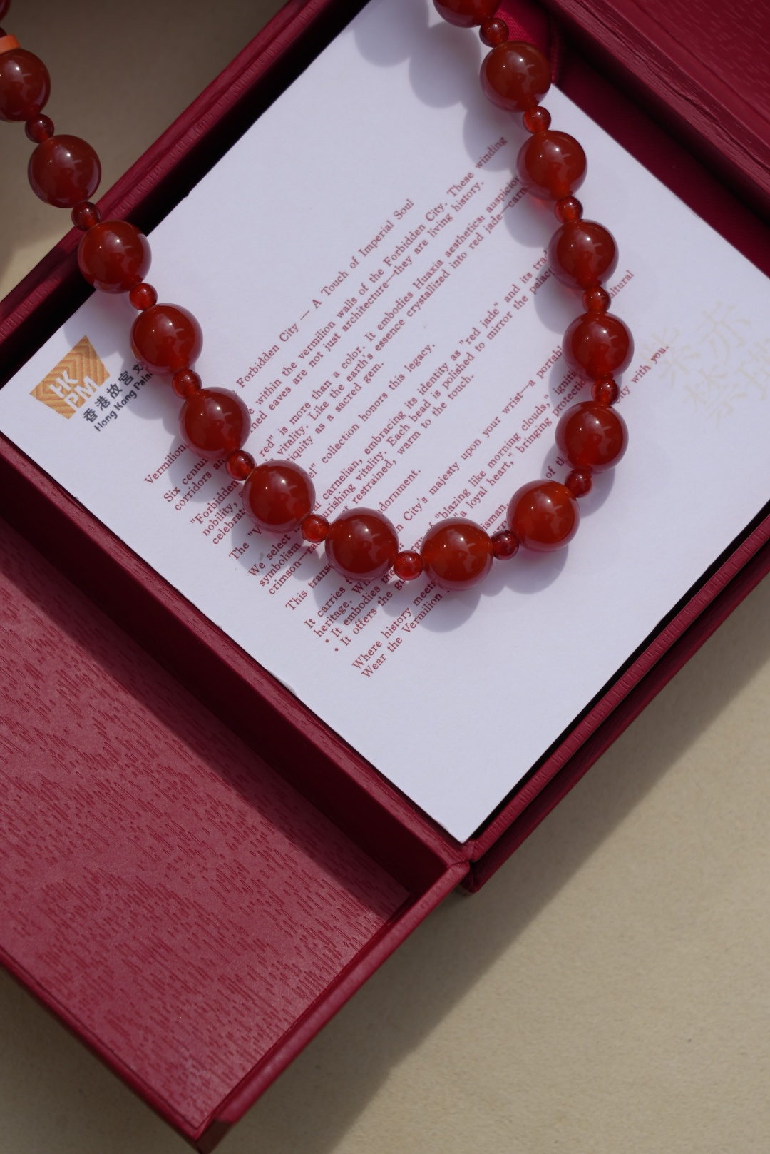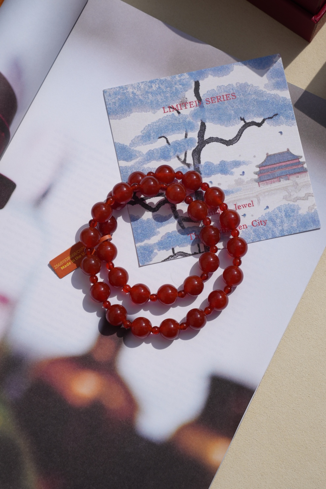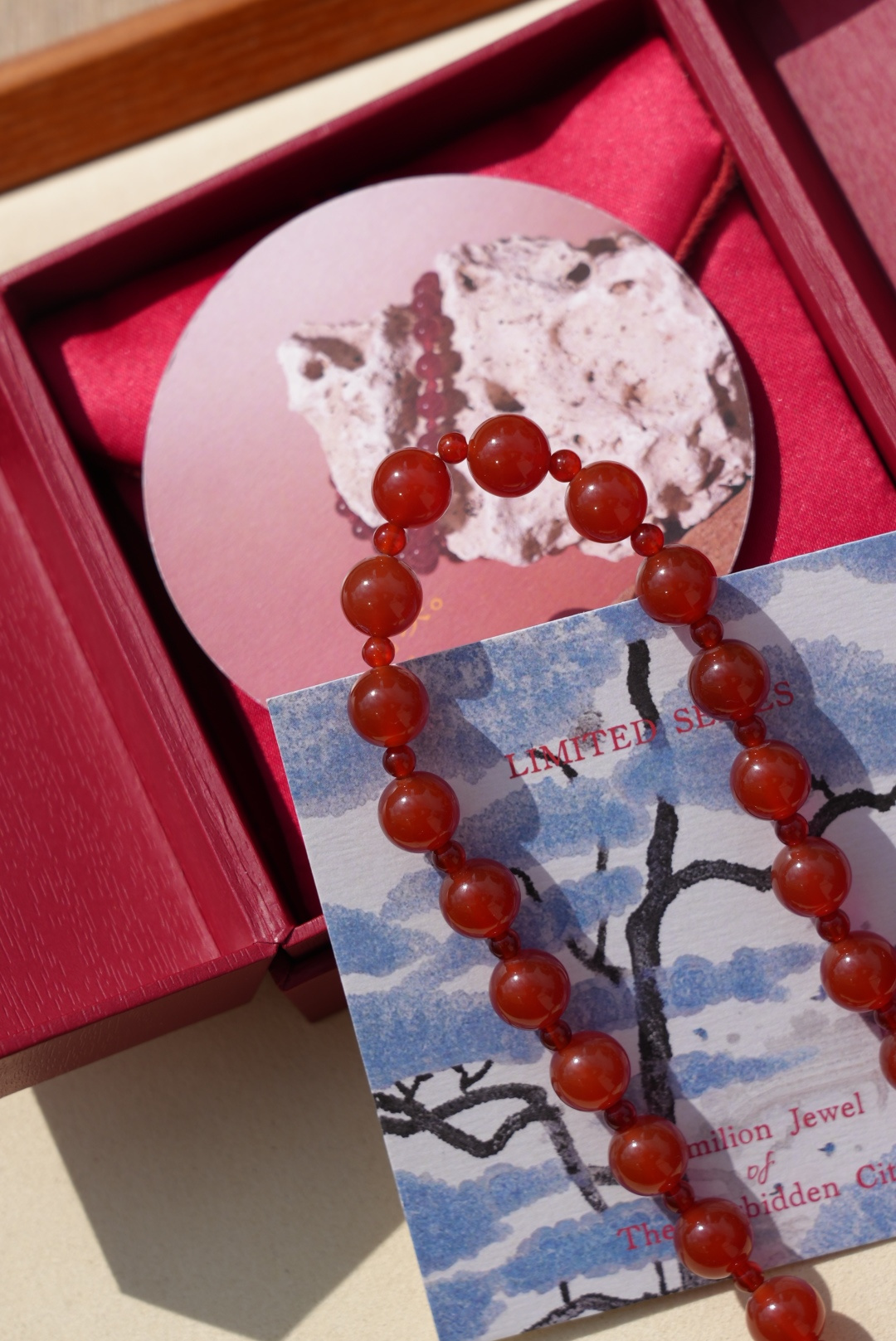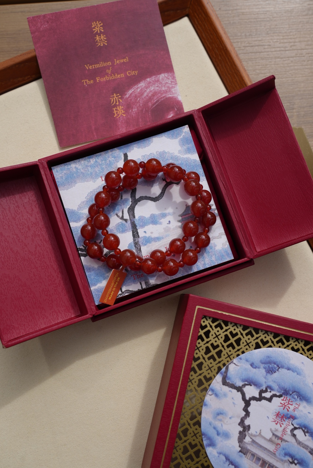 六百年的故宫美学,赵露思同款。品牌zheng品‼️ 🧧故宫朱红调,不仅是显白利器,更是气场的延伸原封包装,内置限定贺卡!每个都带信息标签,吊牌2999港币🛒!红玛瑙本身就是女性之石,☀️✨ 叠戴设计 一百六七以下体重均可佩戴,带弹性