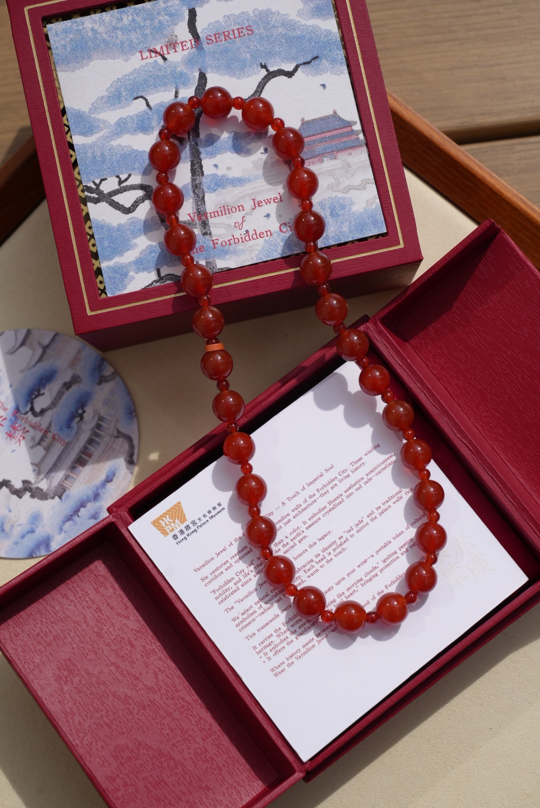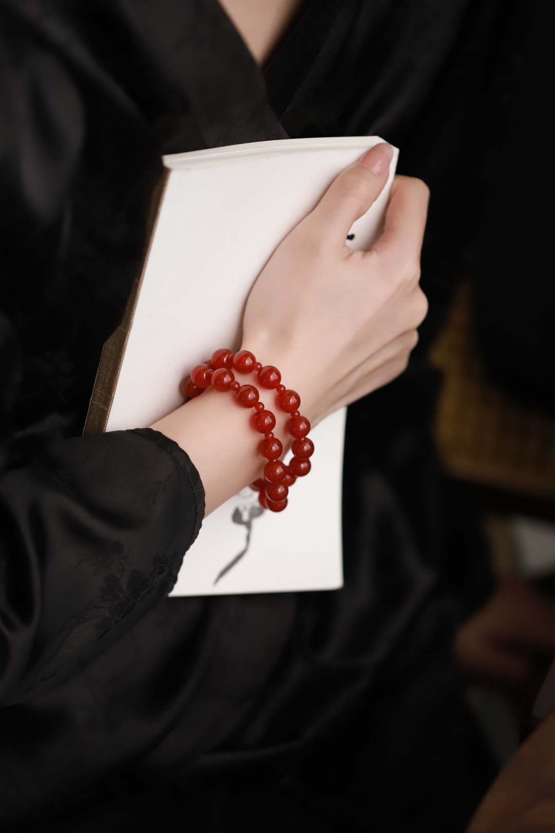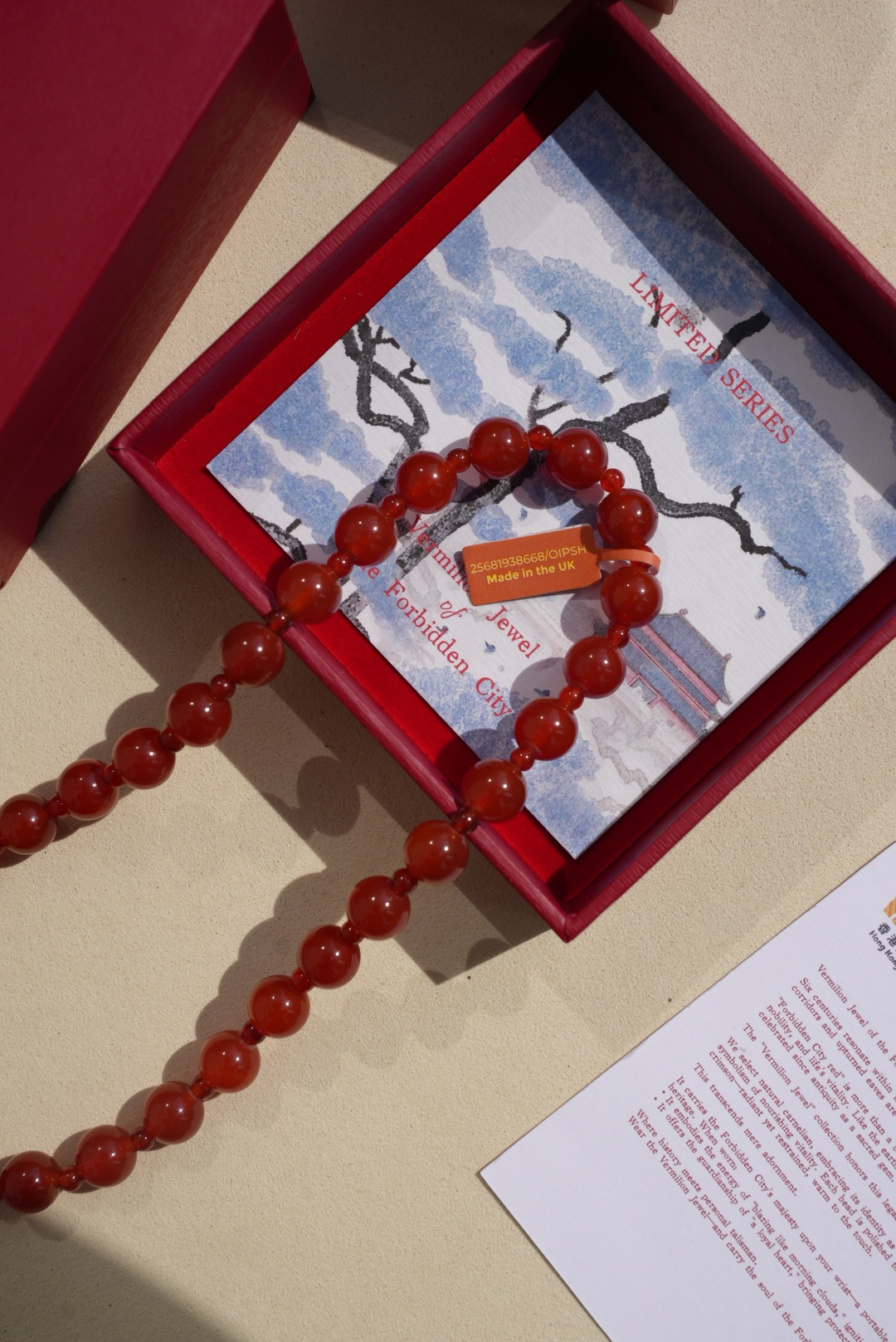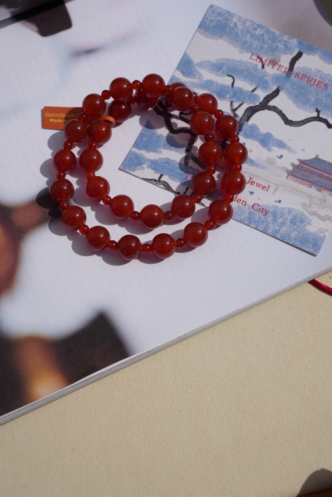 六百年的故宫美学,赵露思同款。品牌zheng品‼️ 🧧故宫朱红调,不仅是显白利器,更是气场的延伸原封包装,内置限定贺卡!每个都带信息标签,吊牌2999港币🛒!红玛瑙本身就是女性之石,☀️✨ 叠戴设计 一百六七以下体重均可佩戴,带弹性