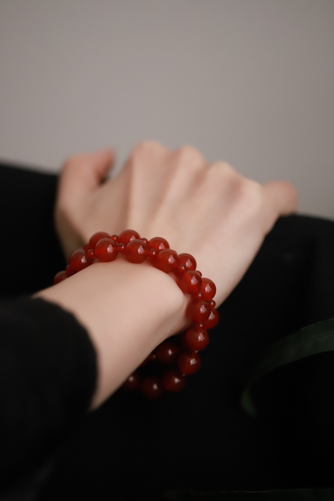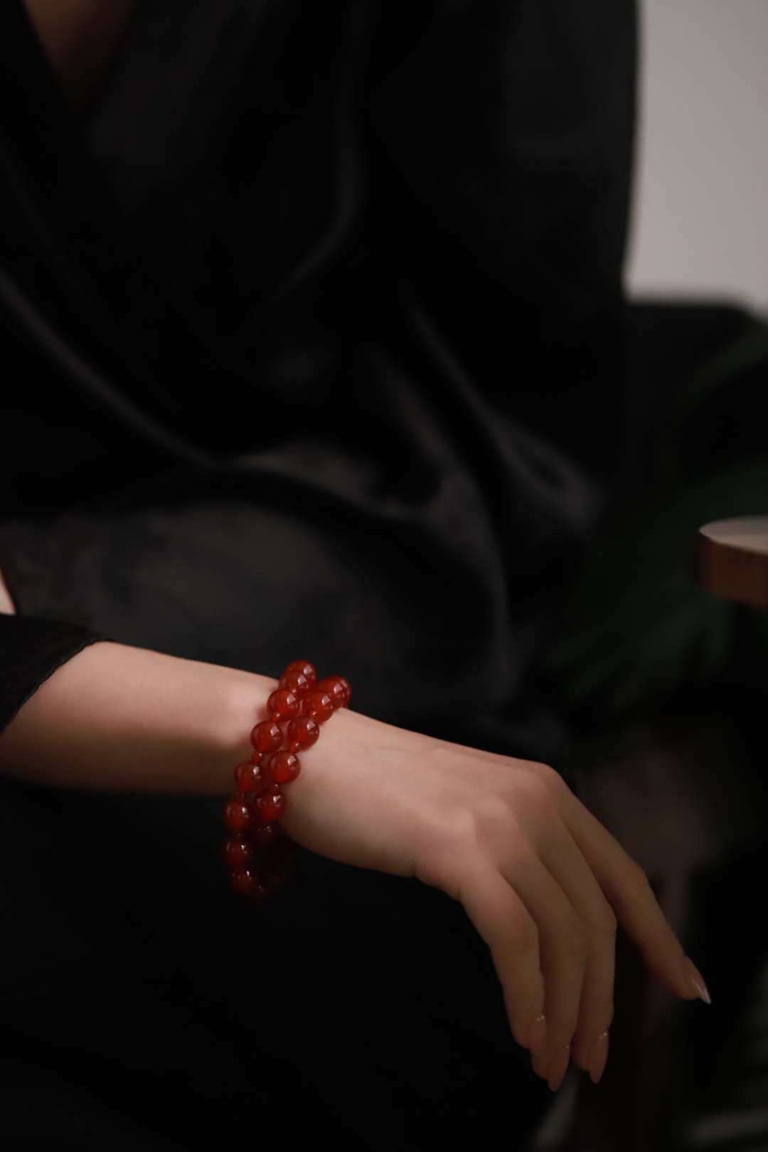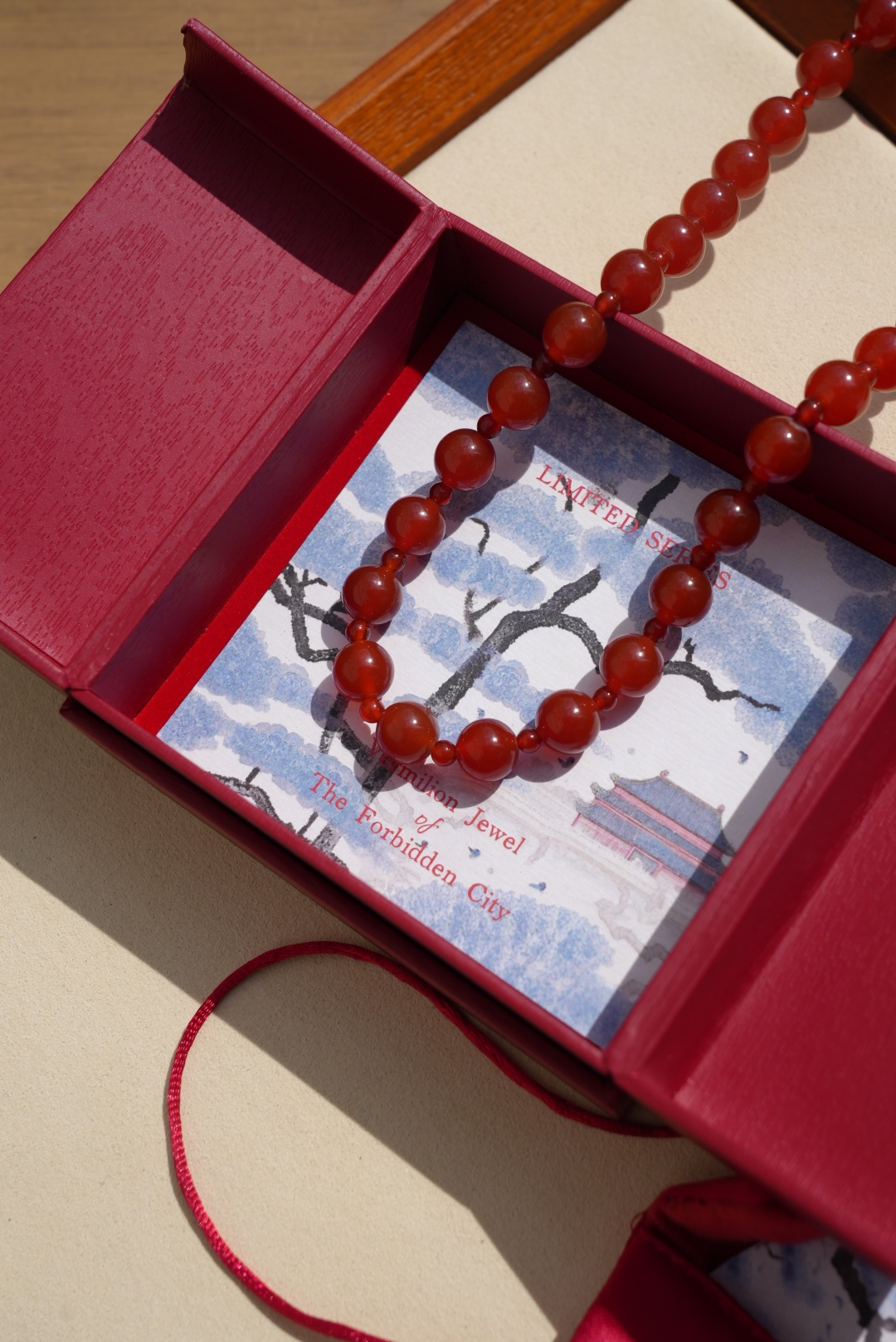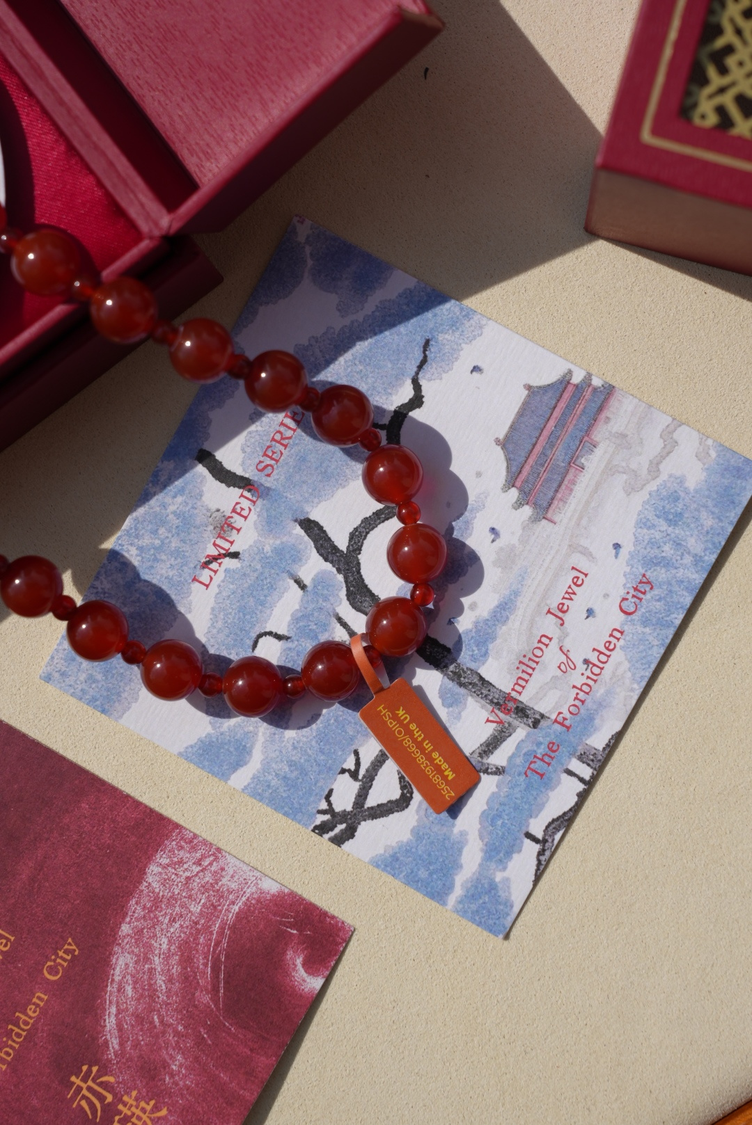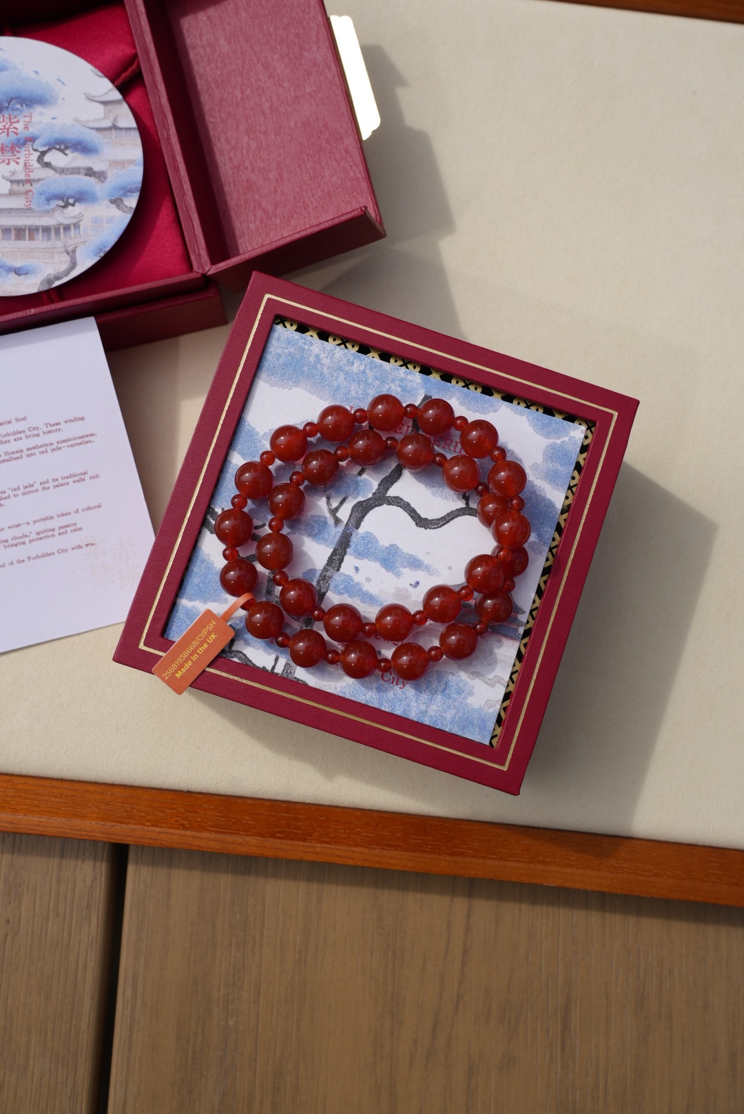 六百年的故宫美学,赵露思同款。品牌zheng品‼️ 🧧故宫朱红调,不仅是显白利器,更是气场的延伸原封包装,内置限定贺卡!每个都带信息标签,吊牌2999港币🛒!红玛瑙本身就是女性之石,☀️✨ 叠戴设计 一百六七以下体重均可佩戴,带弹性