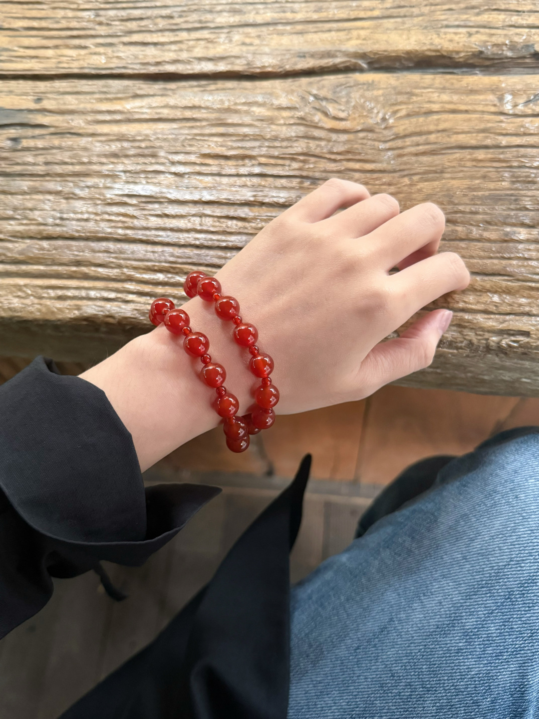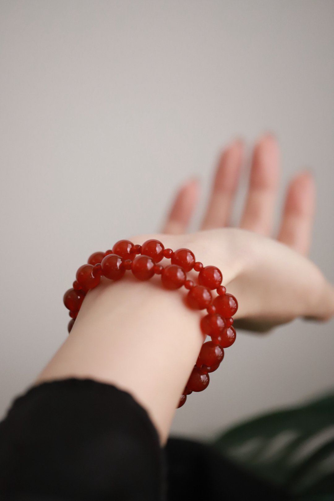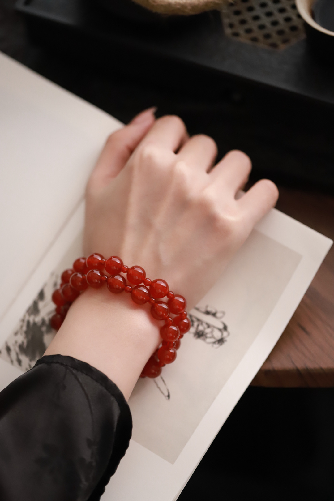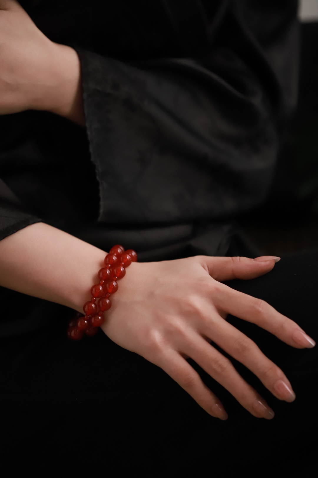 六百年的故宫美学,赵露思同款。品牌zheng品‼️ 🧧故宫朱红调,不仅是显白利器,更是气场的延伸原封包装,内置限定贺卡!每个都带信息标签,吊牌2999港币🛒!红玛瑙本身就是女性之石,☀️✨ 叠戴设计 一百六七以下体重均可佩戴,带弹性