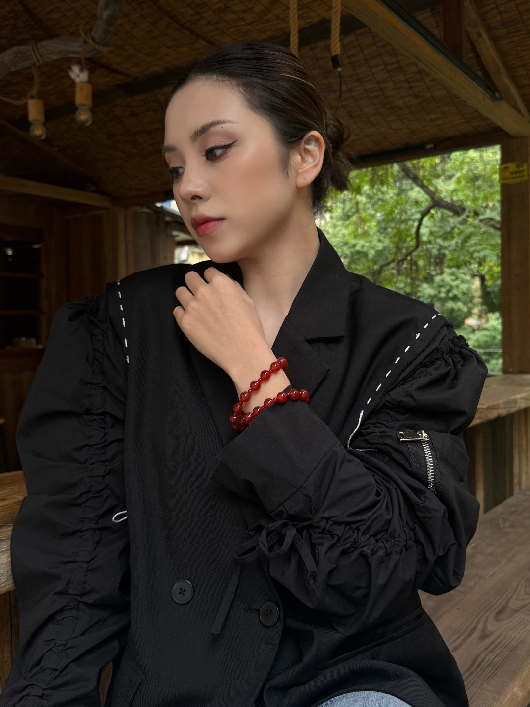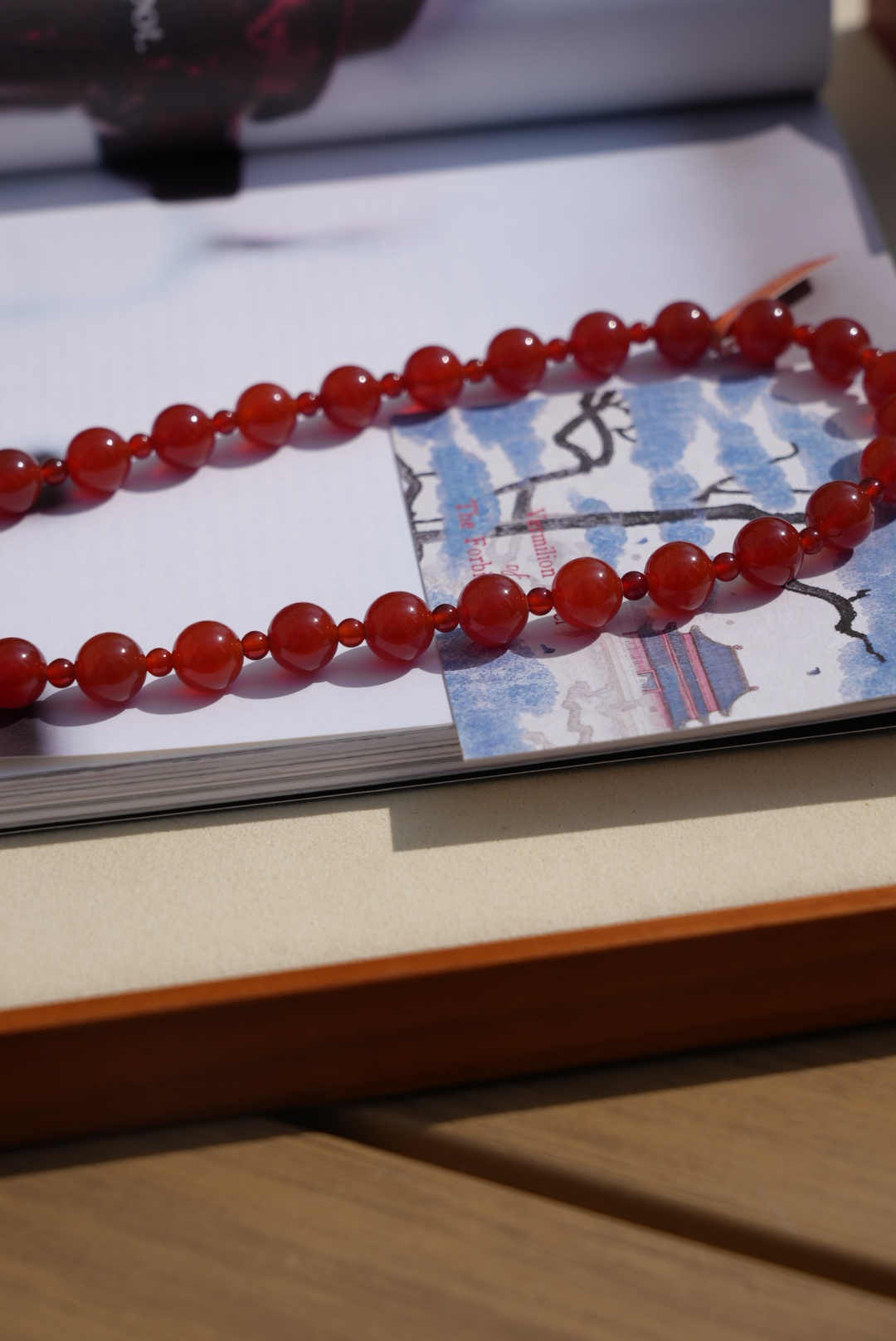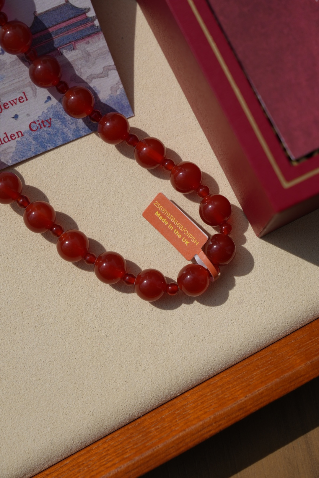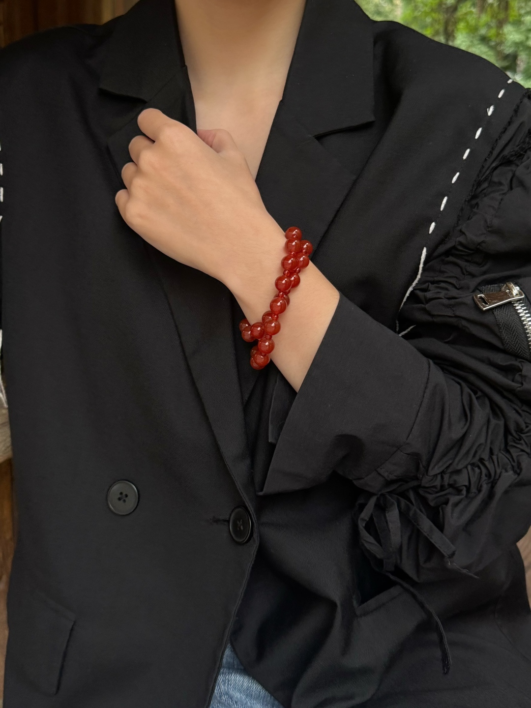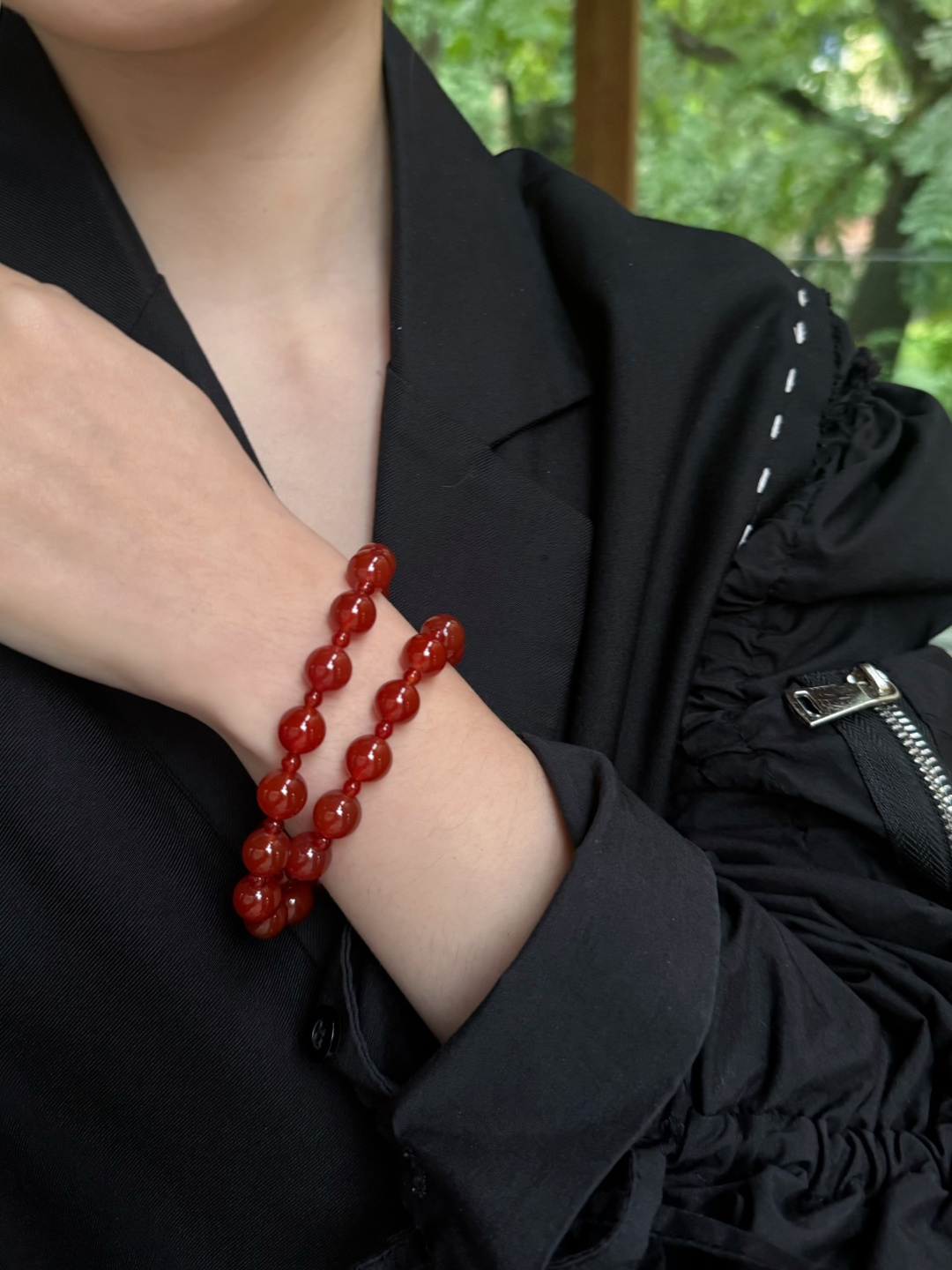 六百年的故宫美学,赵露思同款。品牌zheng品‼️ 🧧故宫朱红调,不仅是显白利器,更是气场的延伸原封包装,内置限定贺卡!每个都带信息标签,吊牌2999港币🛒!红玛瑙本身就是女性之石,☀️✨ 叠戴设计 一百六七以下体重均可佩戴,带弹性