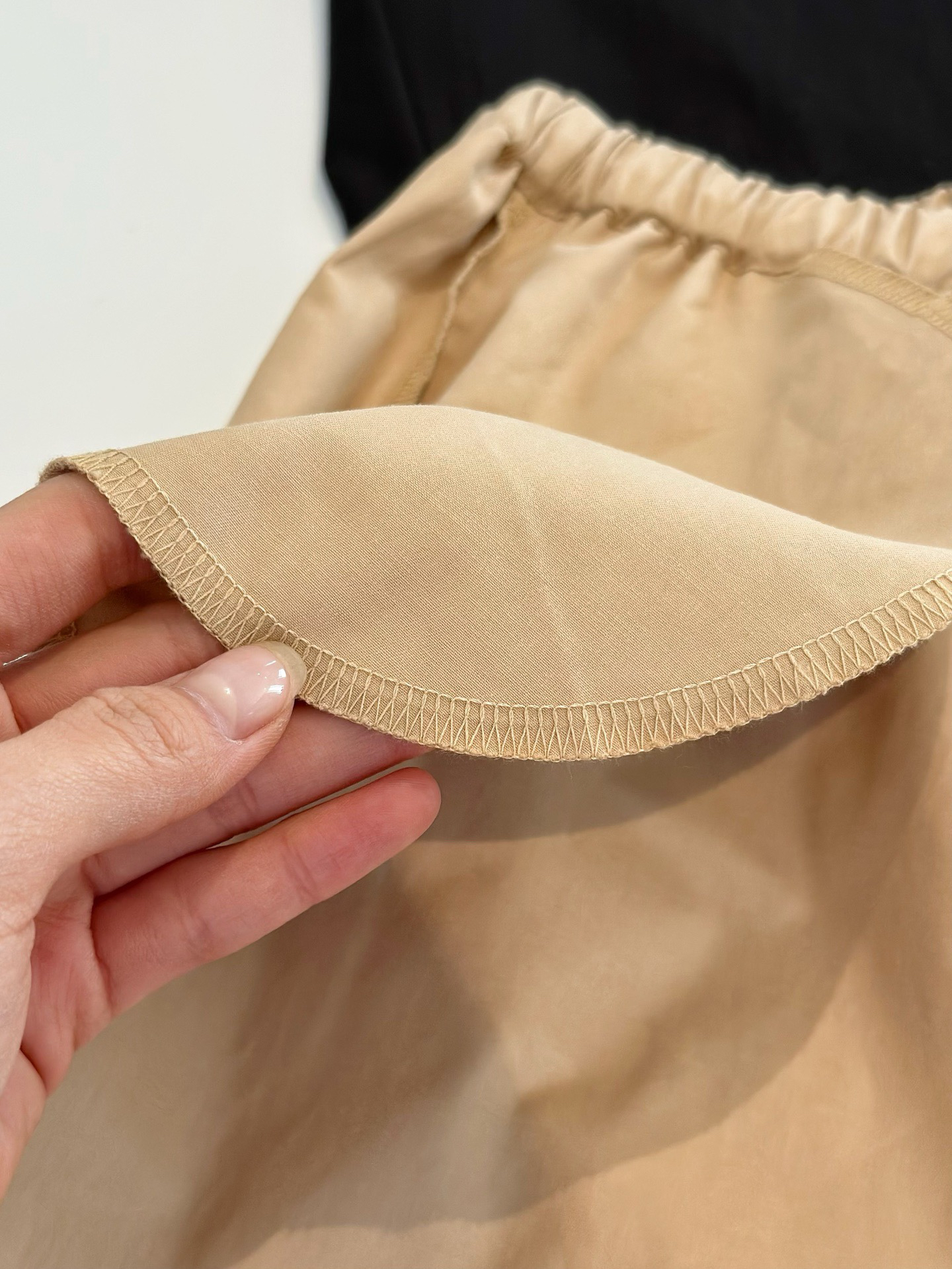 高密度织造 加上定制定染!色牢度在4以上 国际要求固色标准,棉府绸密度高,使得整体裤型更加挺阔垂顺,不像普通的棉软踏踏,挺括布料使得版型更加有型,更好的遮挡腿部肉肉!