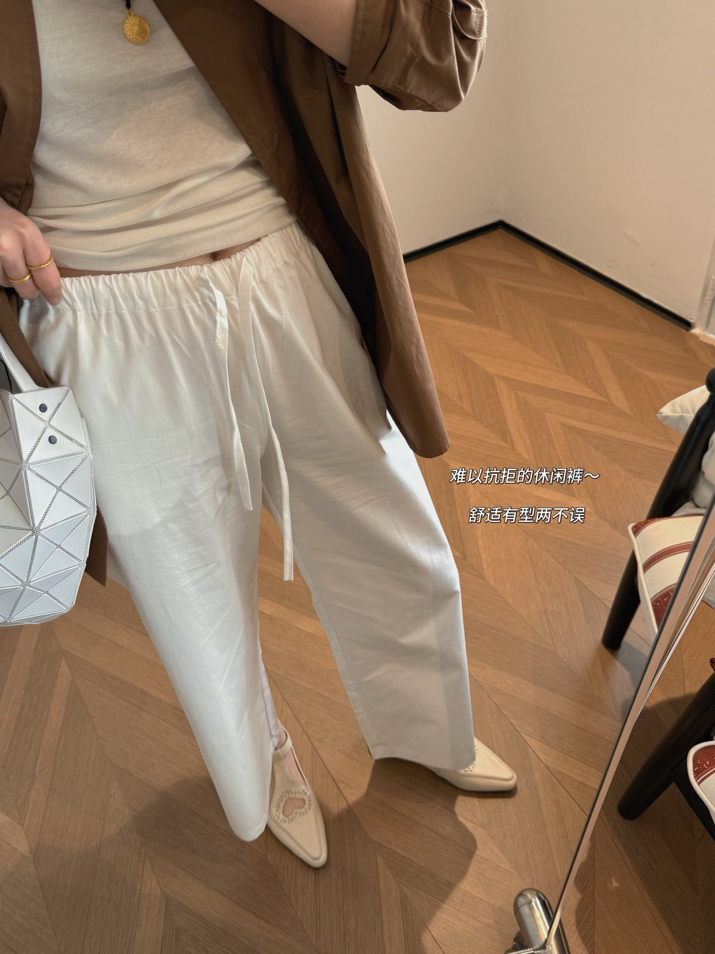 弹力松紧腰头+外置抽绳可调节哈 对身材包容性很好 舒适贴合 有肚子的姐妹也放心穿行了!