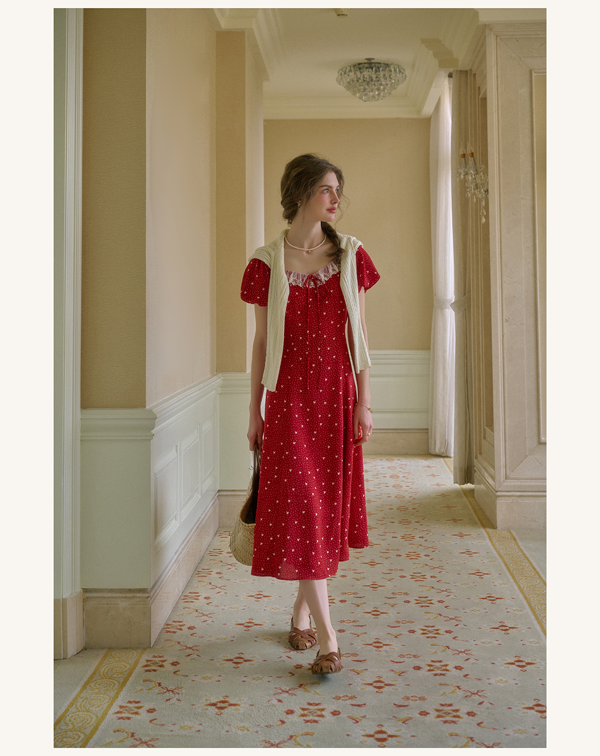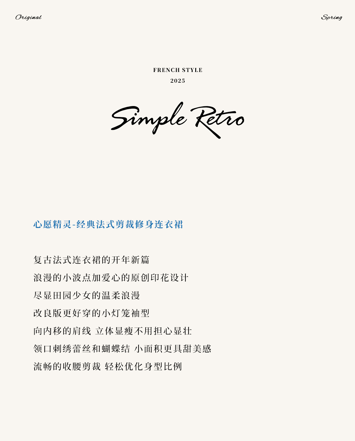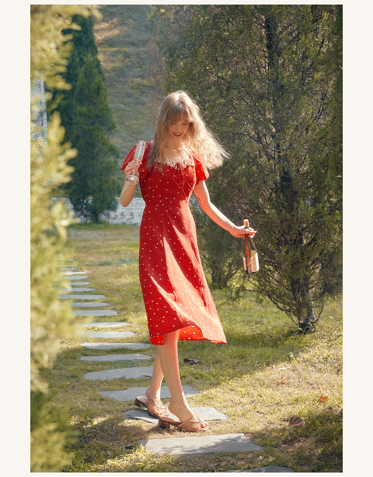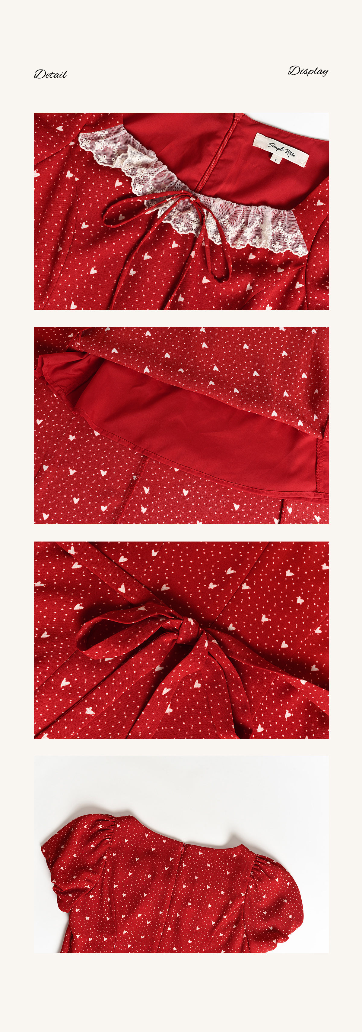(小眠专属)SimpleRetro心愿精灵 经典蕾丝法式方领连衣裙女复古泡泡袖波点裙
