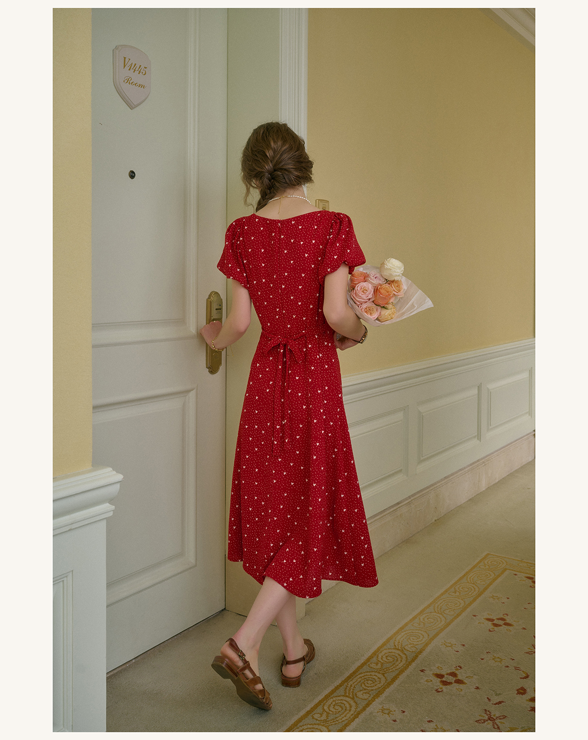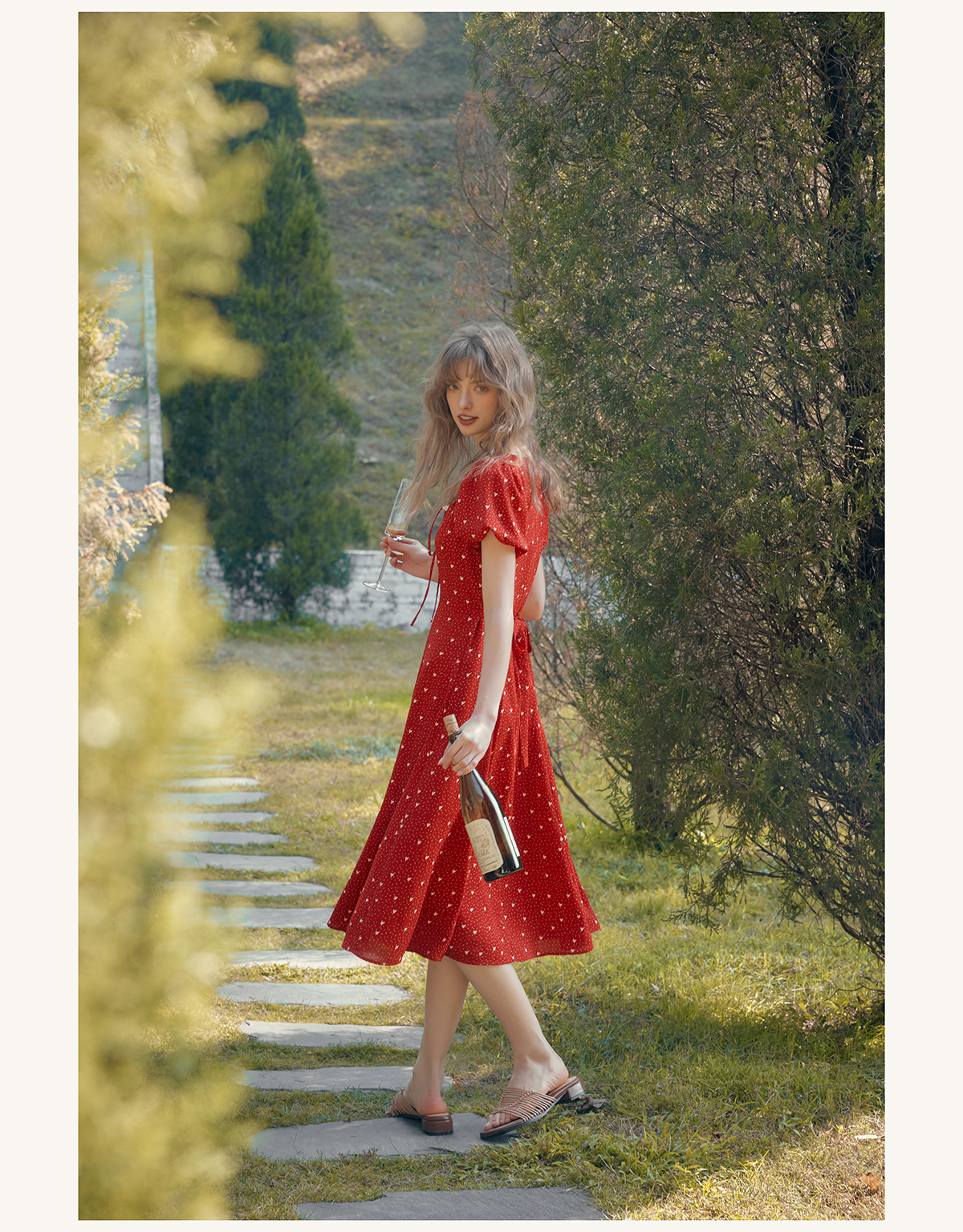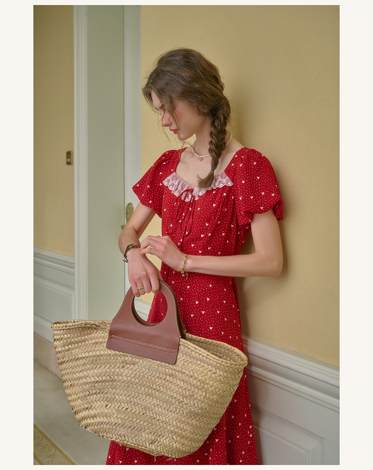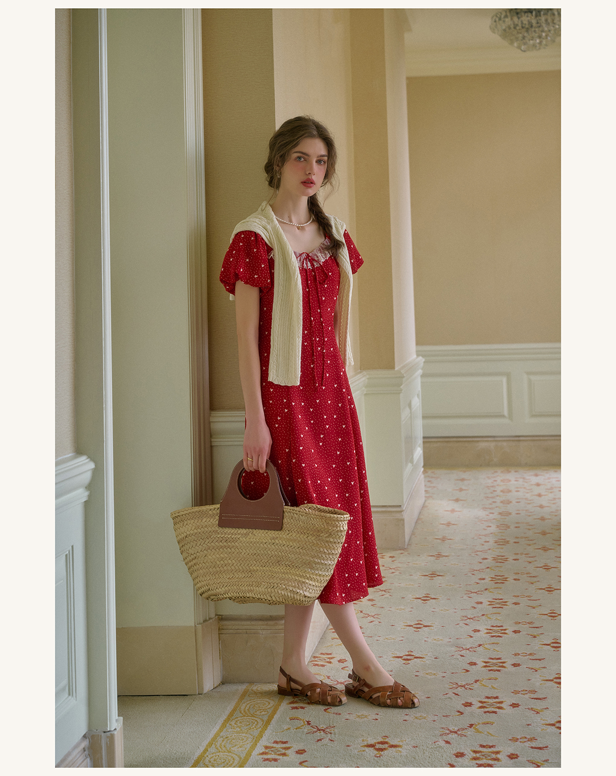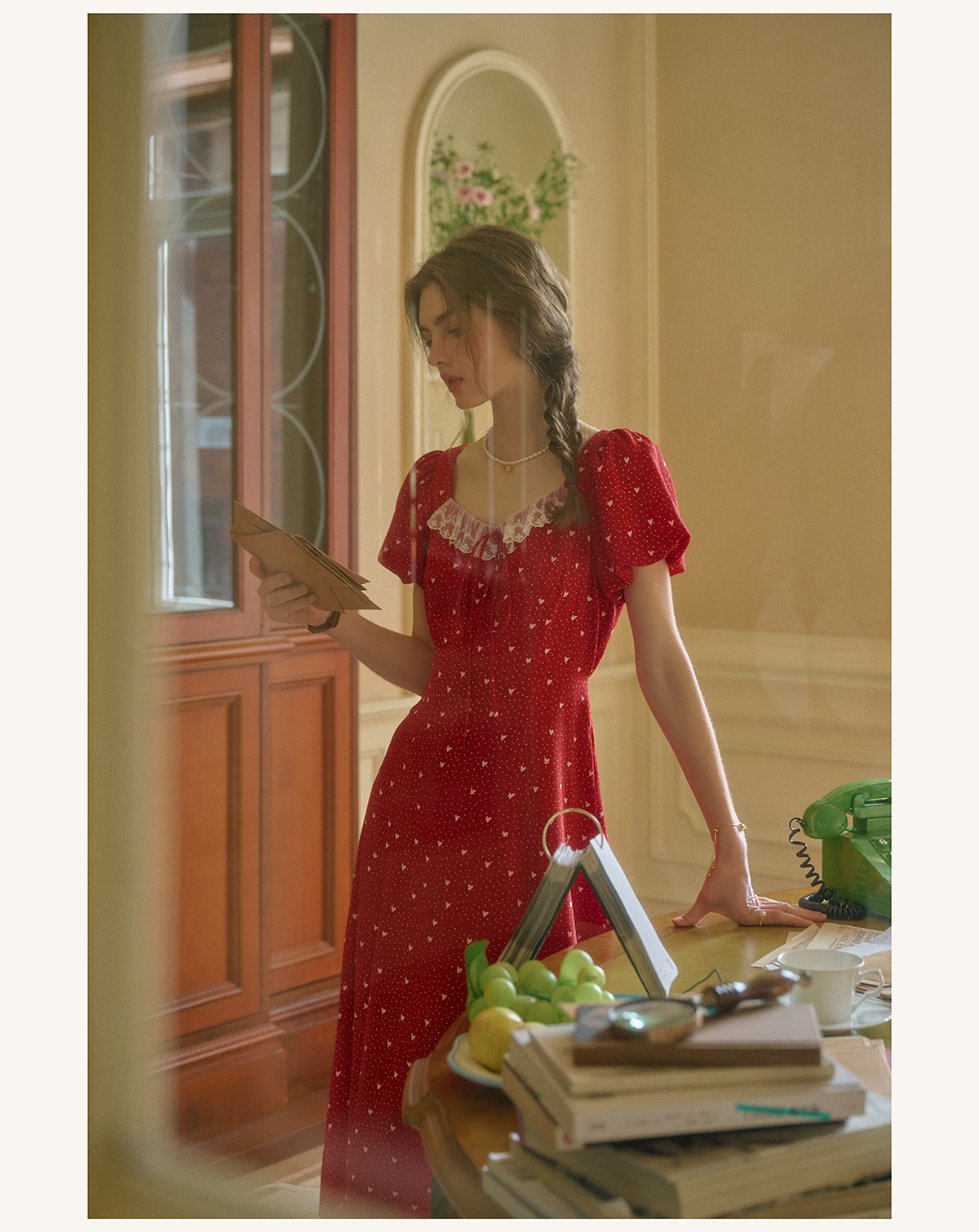 (小眠专属)SimpleRetro心愿精灵 经典蕾丝法式方领连衣裙女复古泡泡袖波点裙
