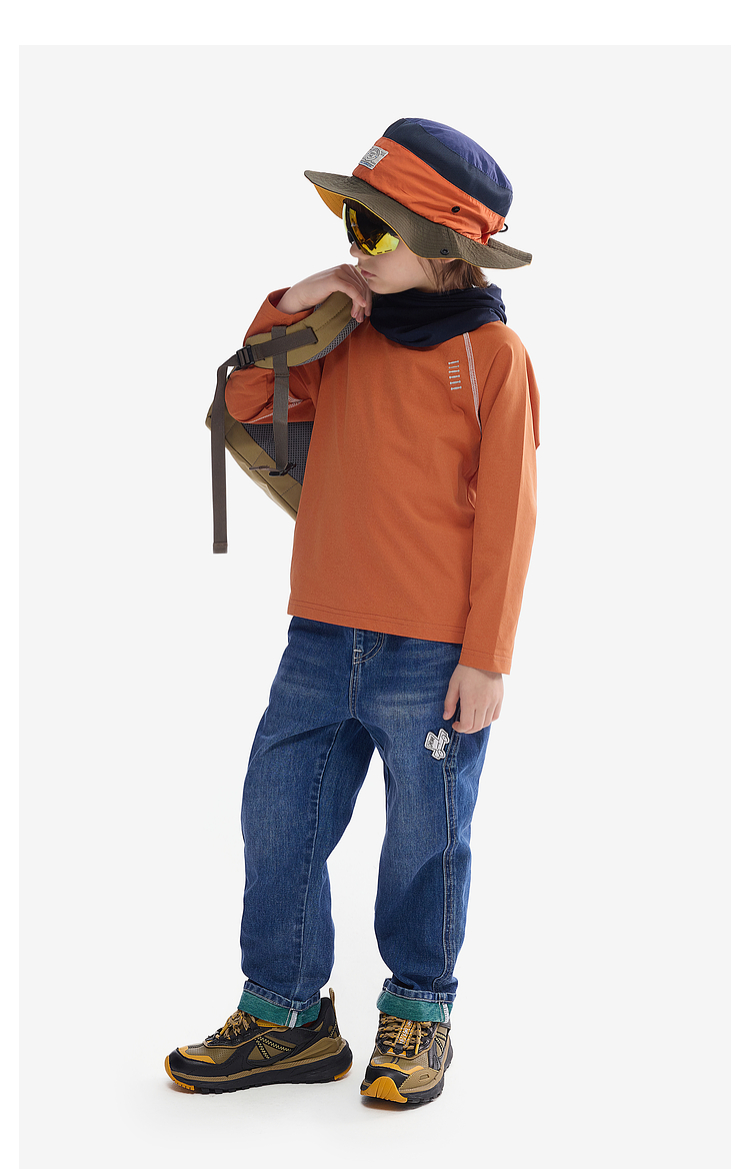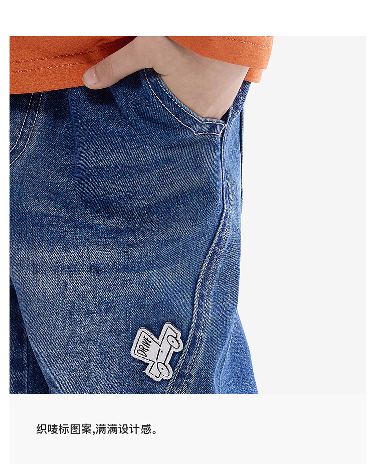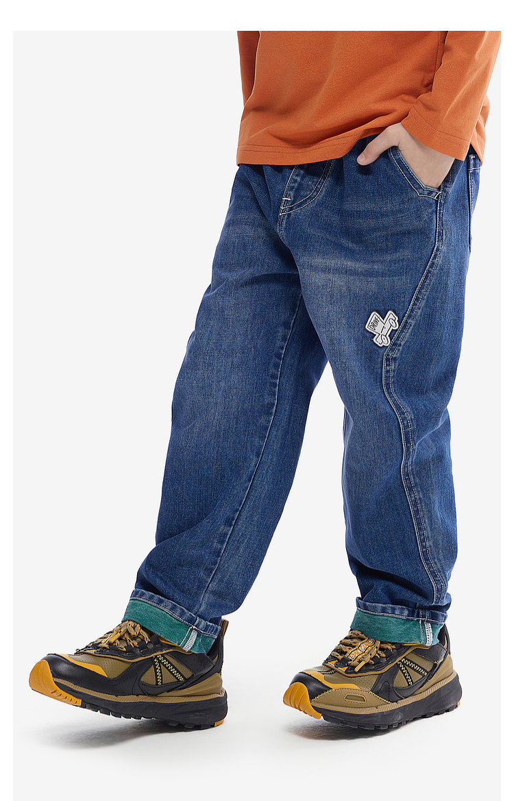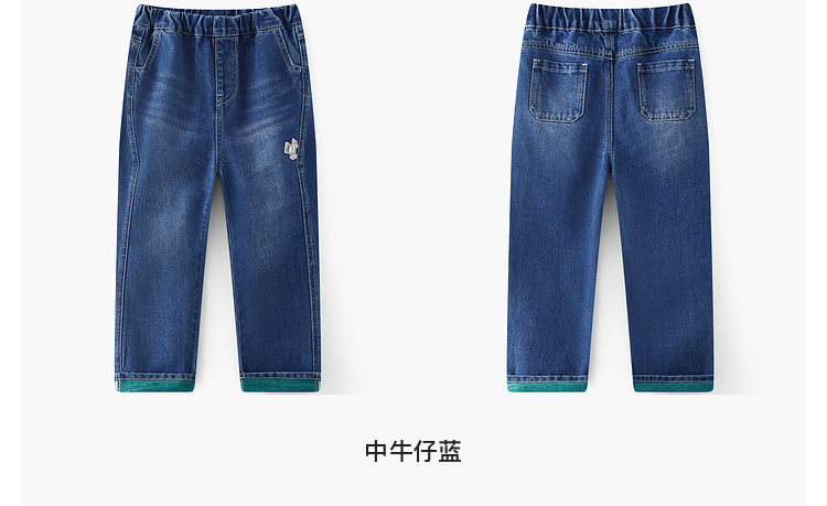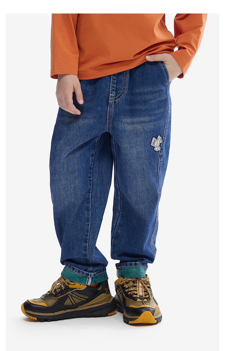【秒】【MQD】童装男童牛仔裤春秋装款水洗翻边宽松休闲儿童直筒长裤子