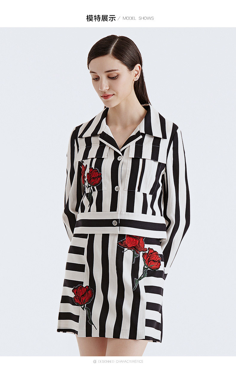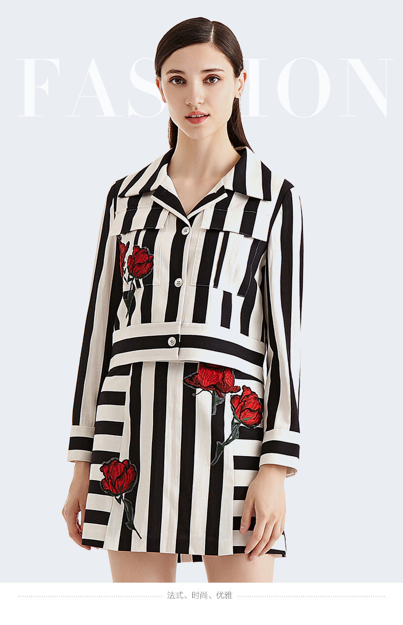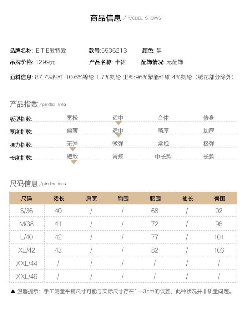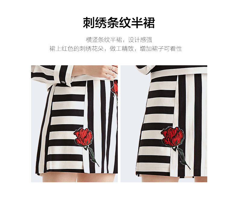 EITIE爱特爱女装夏季新款拼接撞色直筒绣花半身裙百搭小短裙5506213