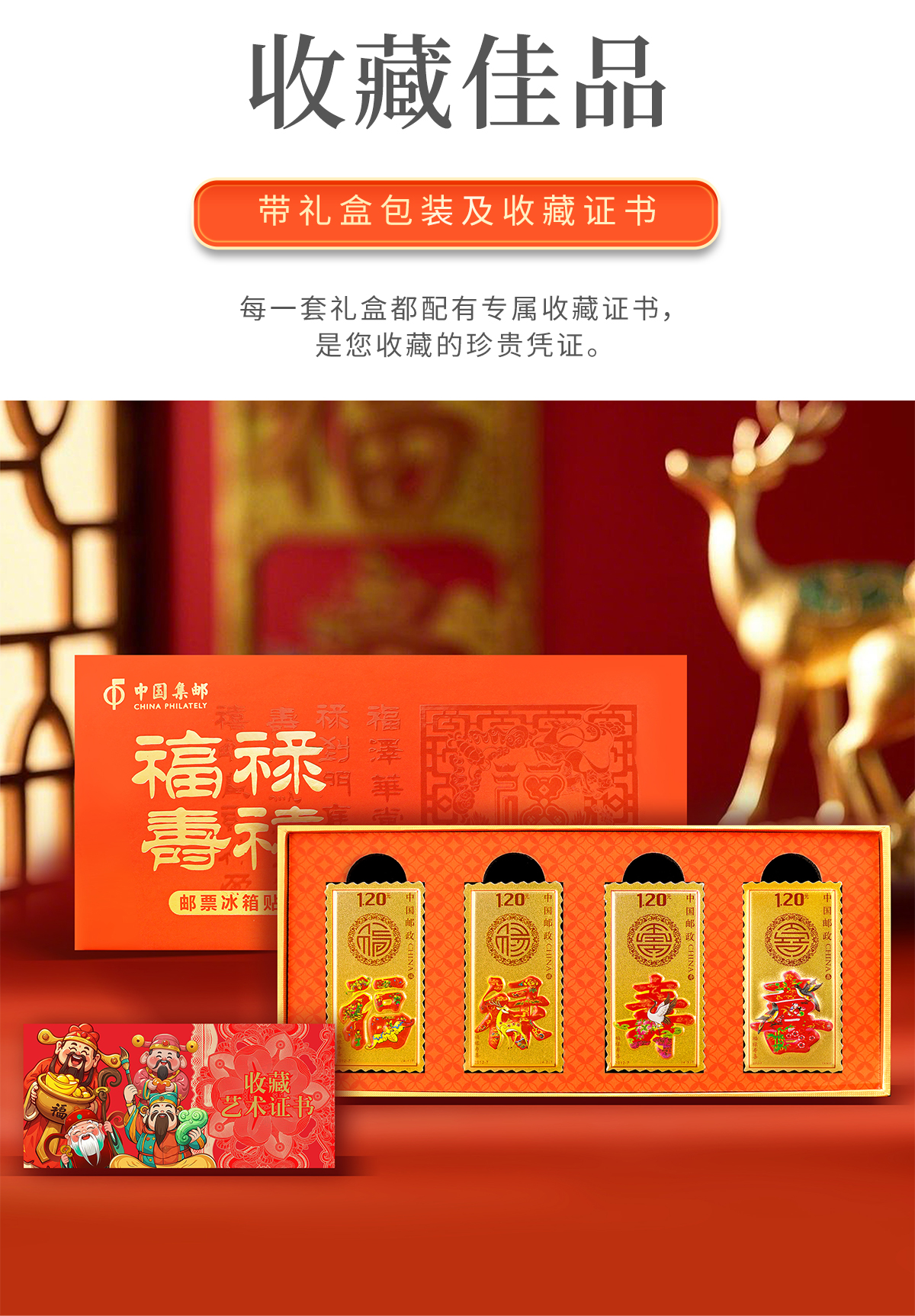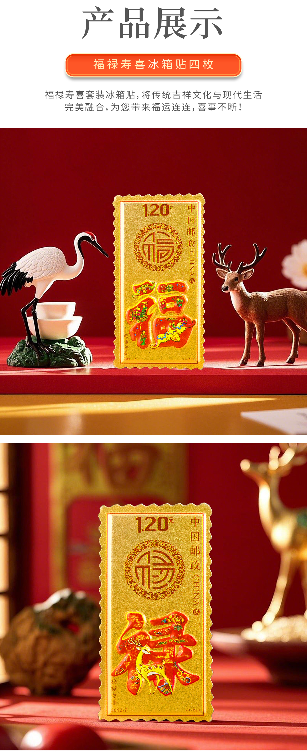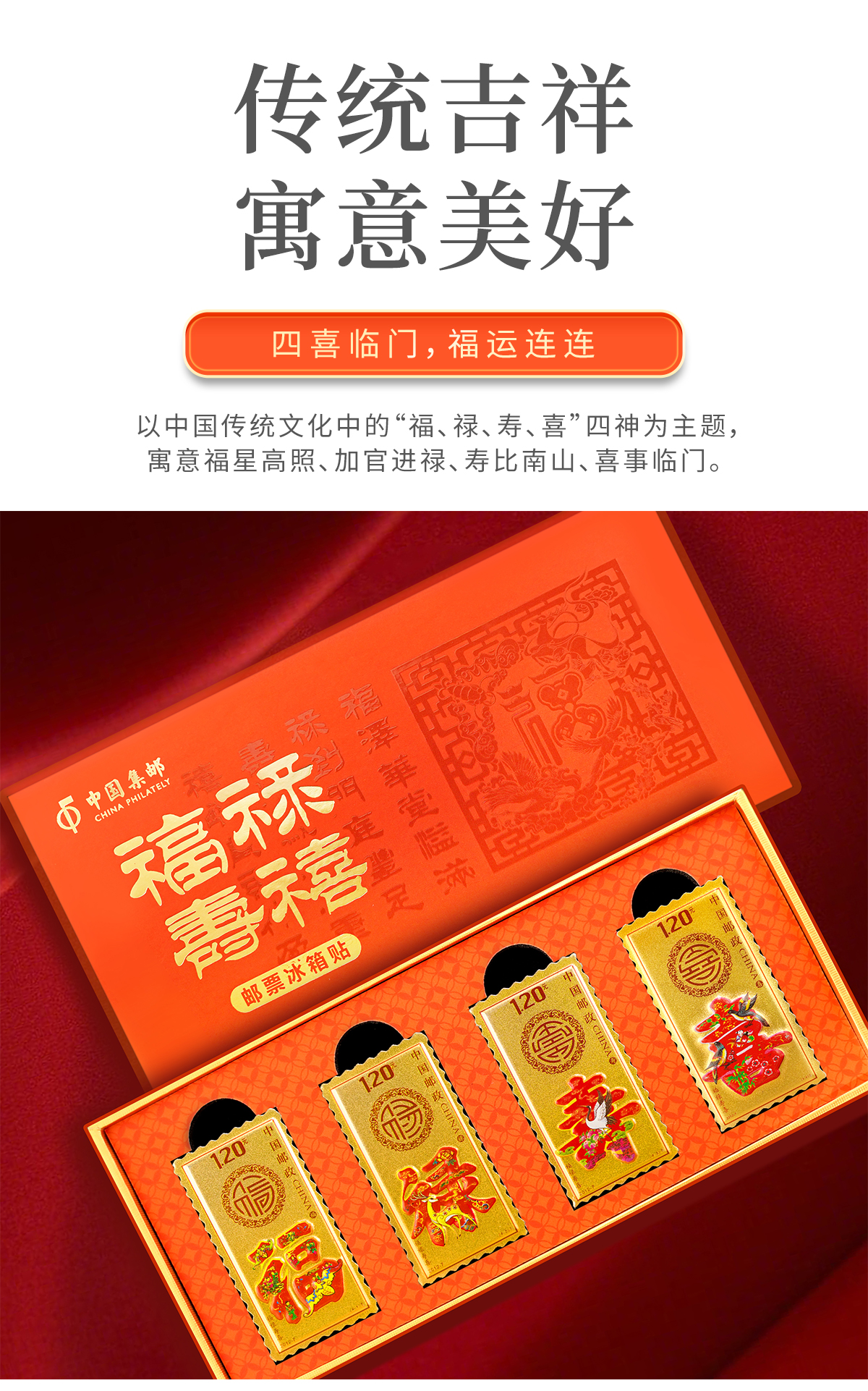 【中国集邮】福禄寿喜邮票冰箱贴