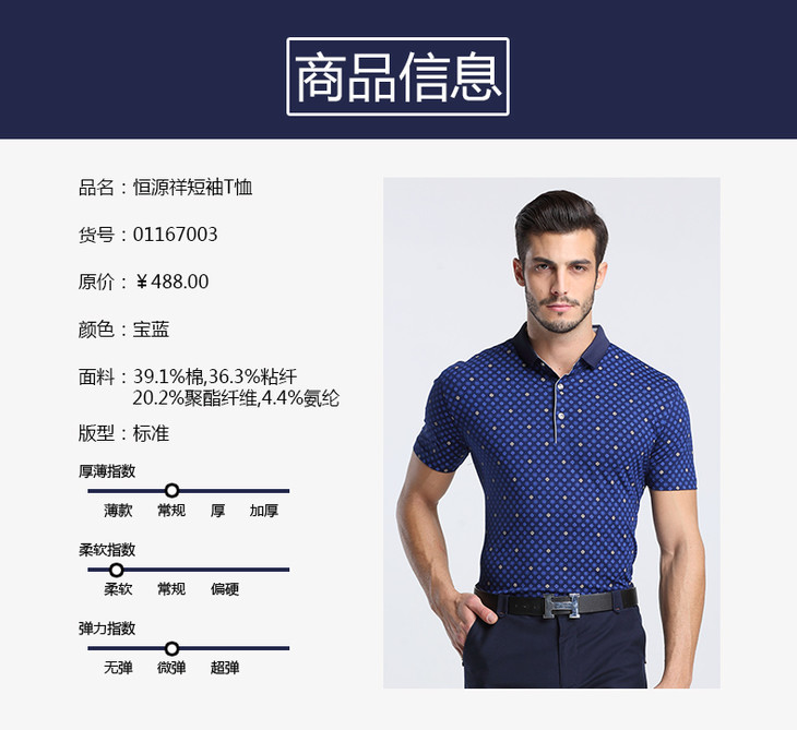恒源祥男士夏季新款翻领商务短袖T恤 01167003