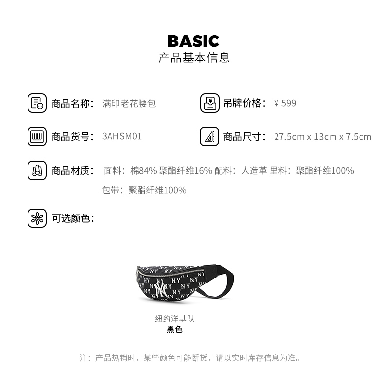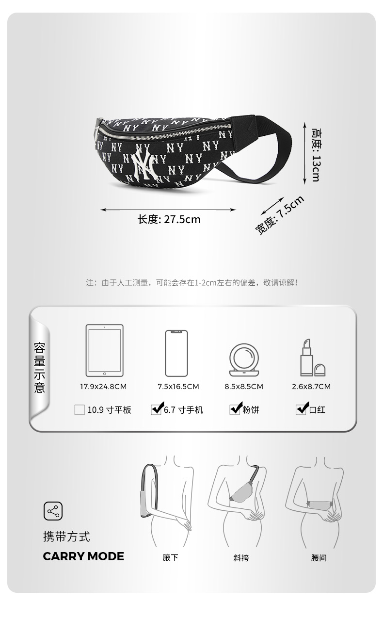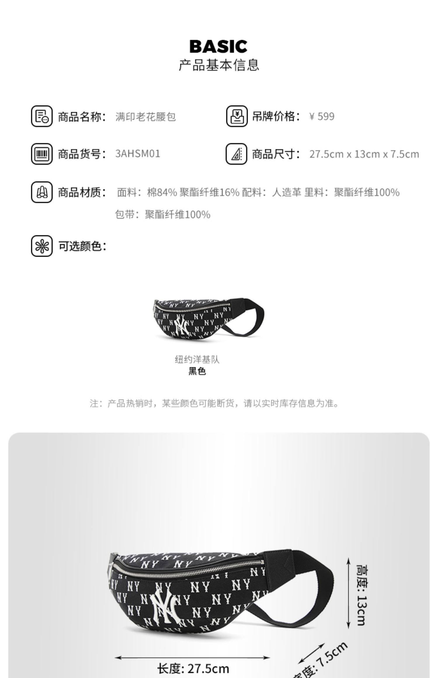 MLB男女同款满印老花刺绣大标腰包3AHSM014N
