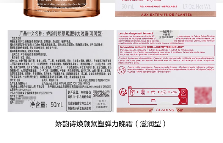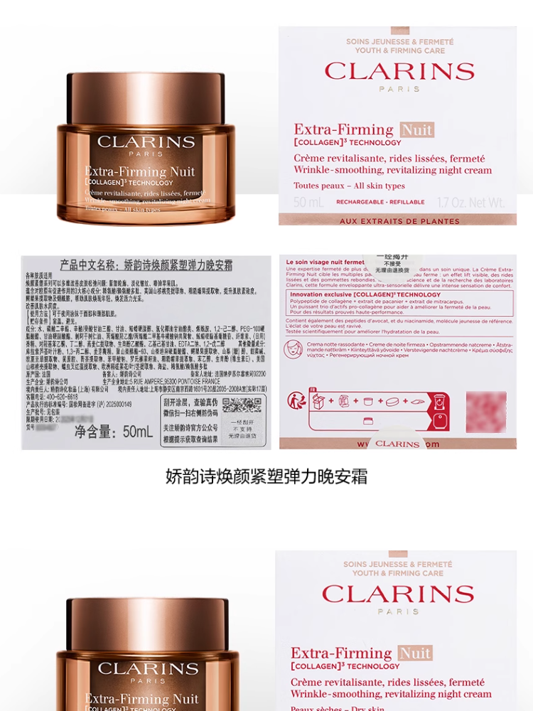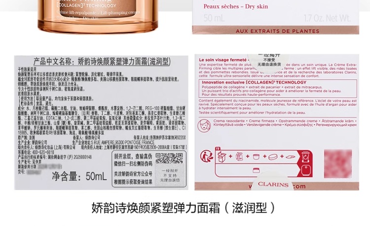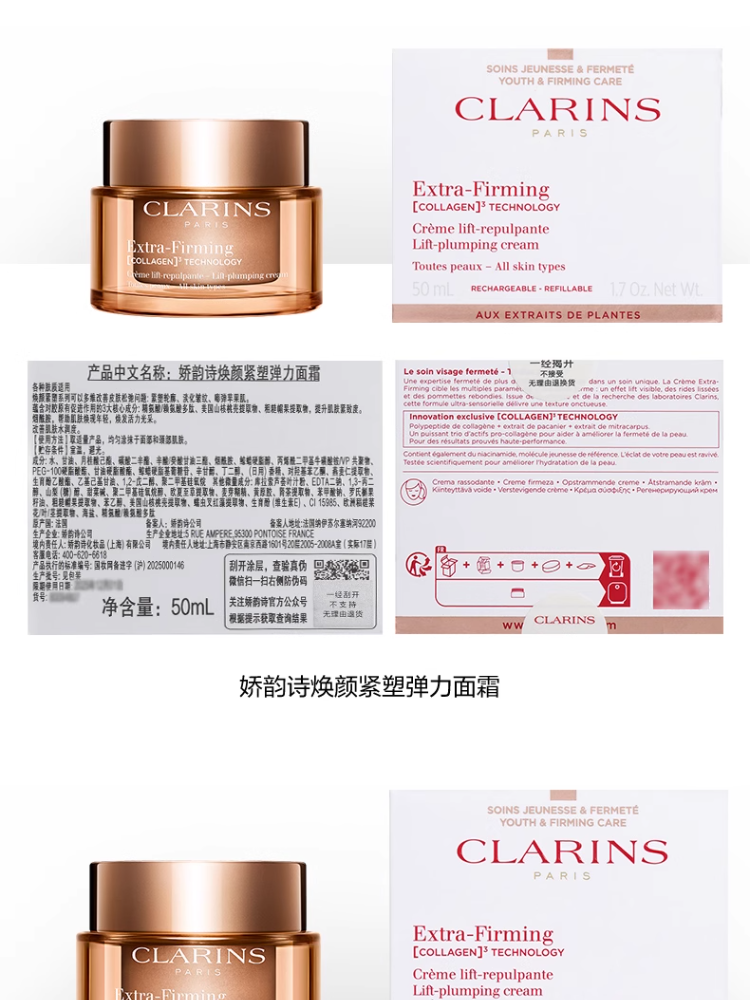 全新娇韵诗弹簧霜面霜紧致抗皱淡纹促活胶原蛋白50ml